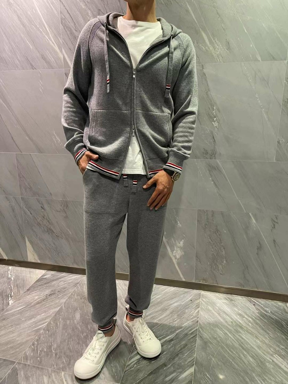톰브라운 캐시미어 니트 RWB 후드 집업