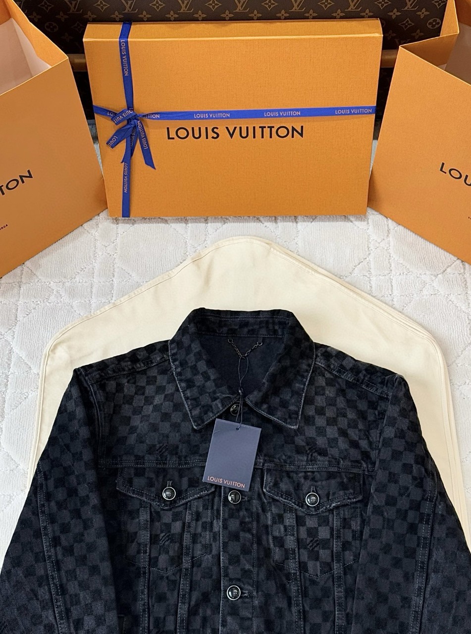 루이비통 플록드 다미에 데님 트러커 자켓