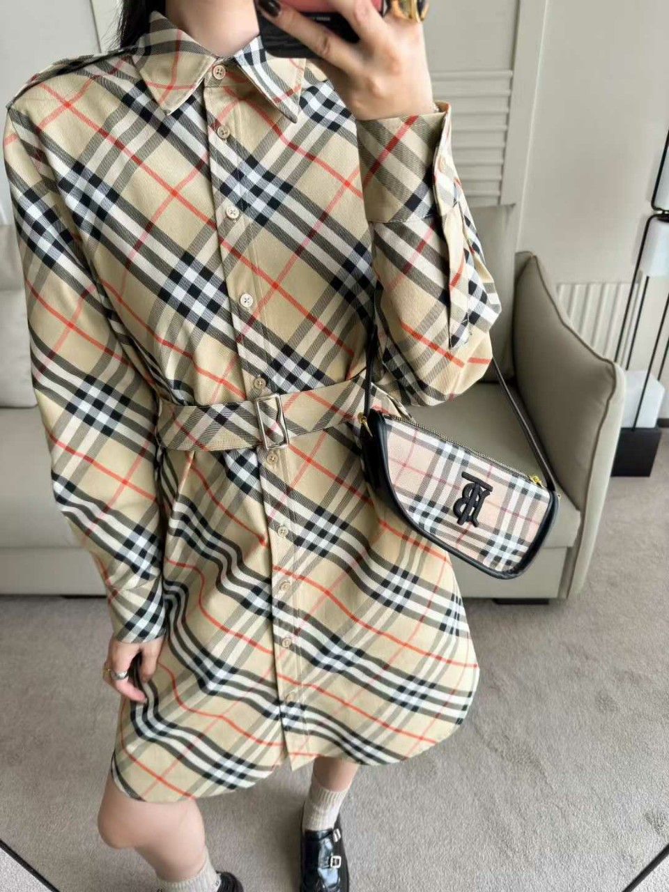 버버리 25ss 코튼 트윌 체크 셔츠 드레스