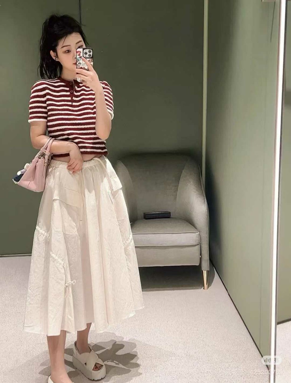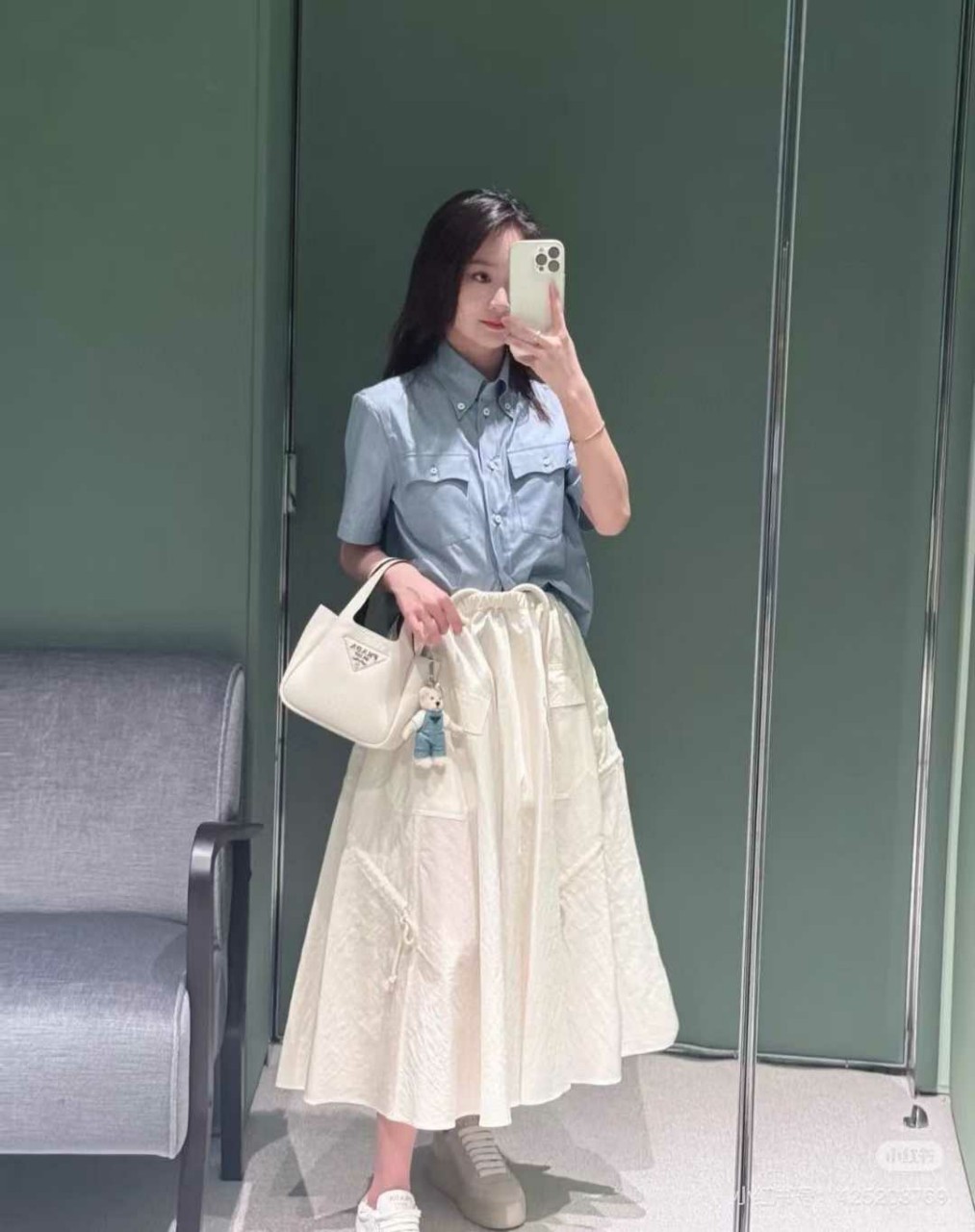 프라다 25ss 드로스트링 스커트