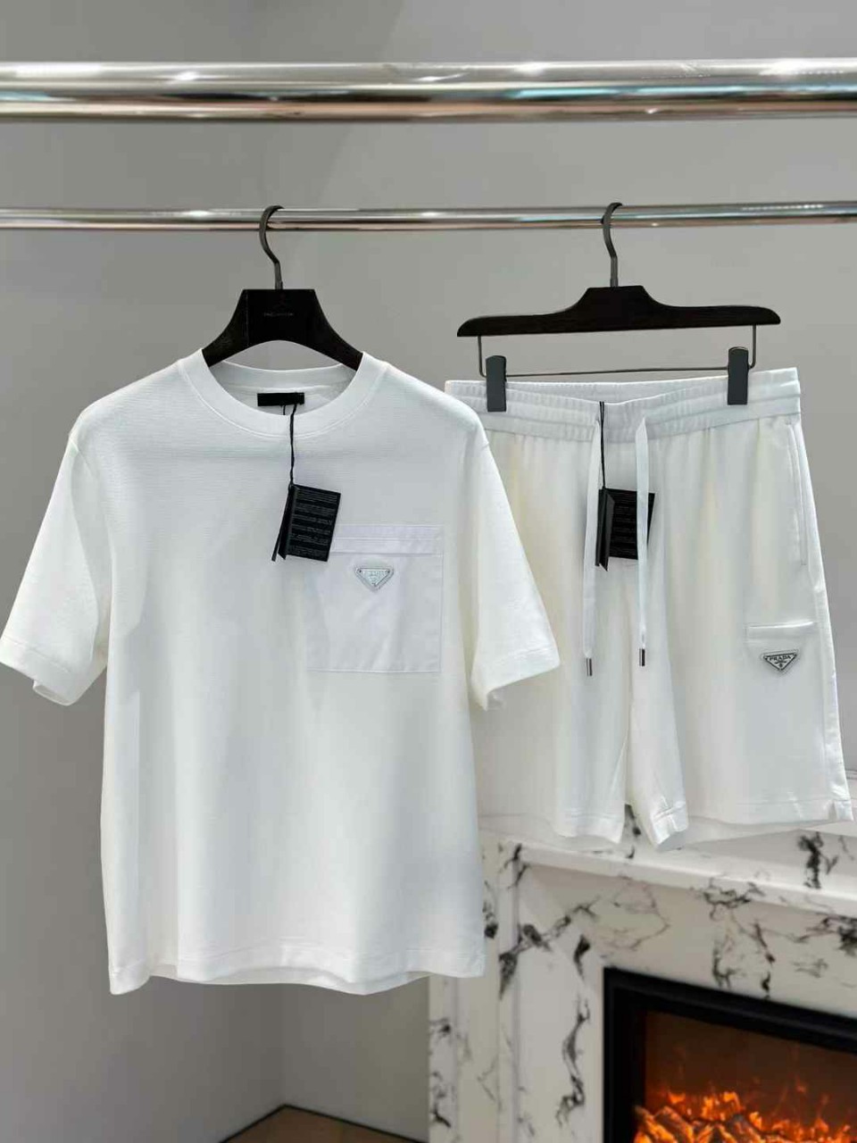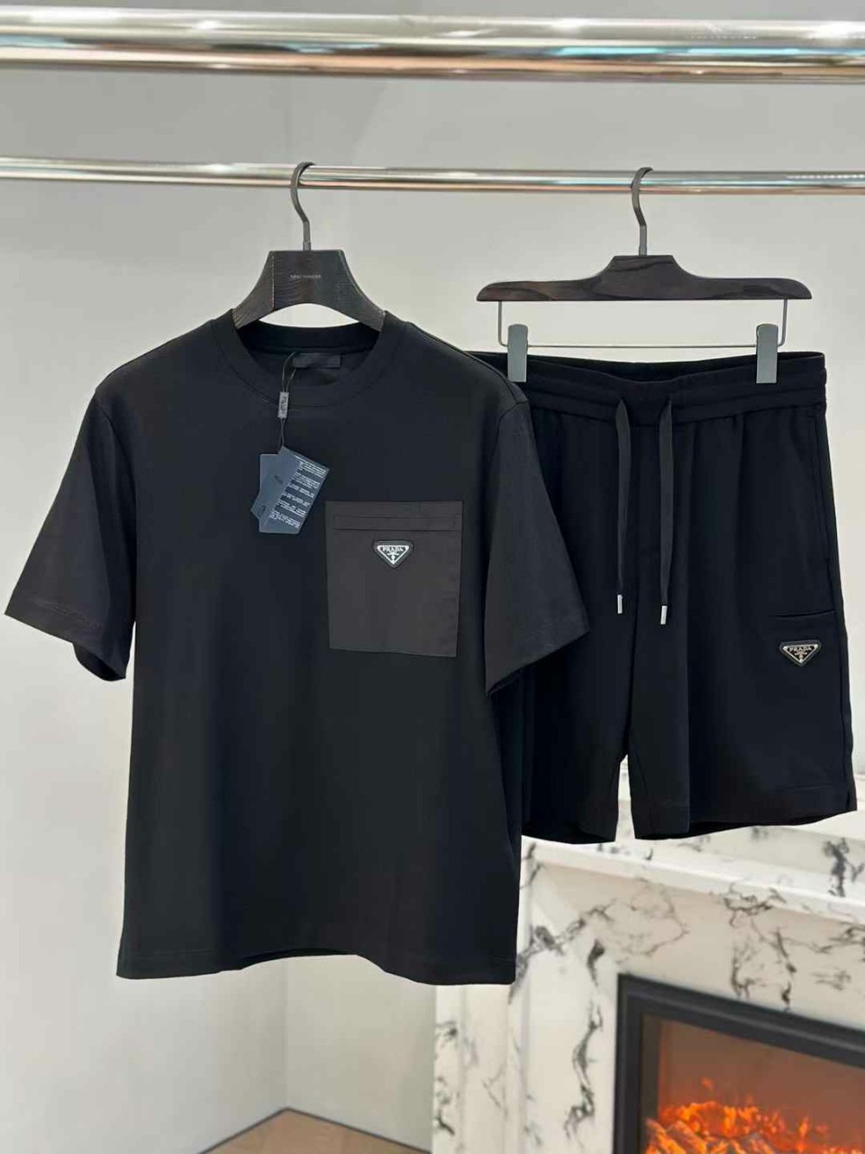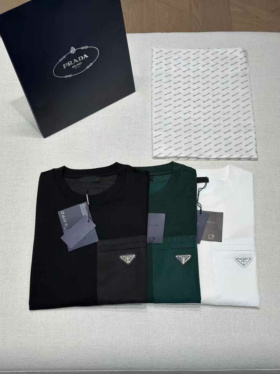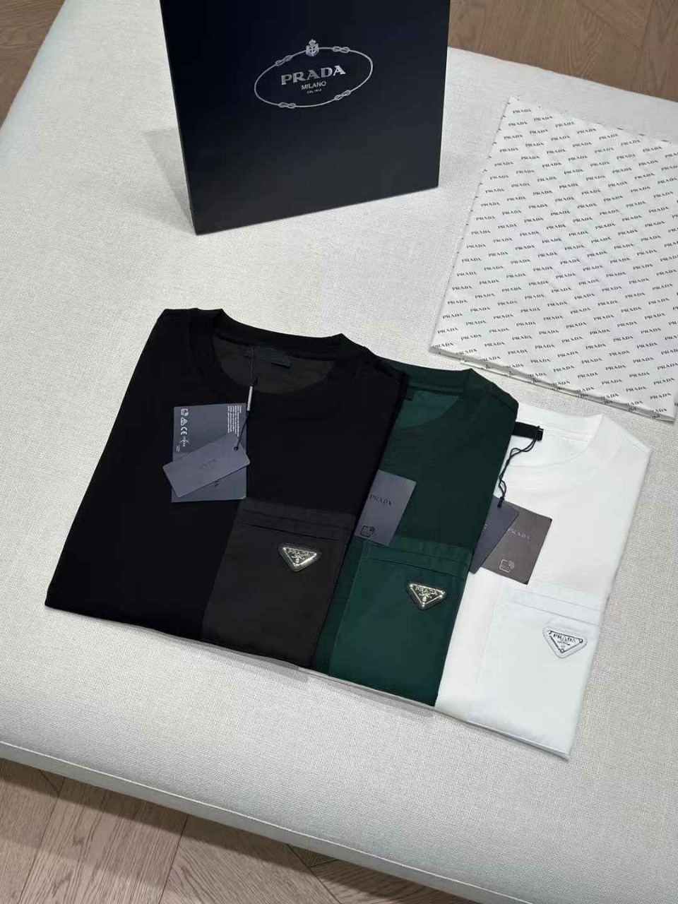 프라다 로고 나일론 포켓 티셔츠
