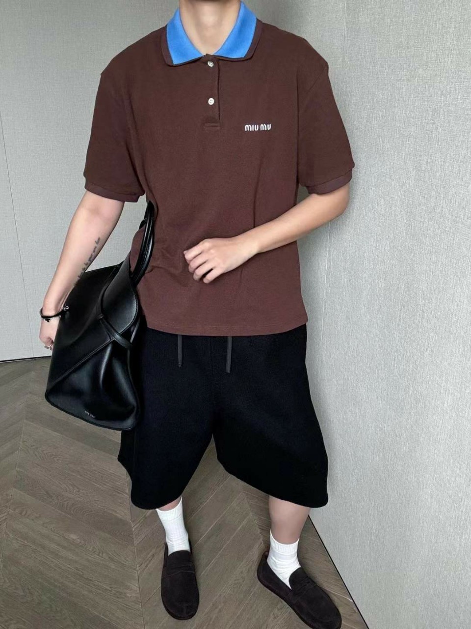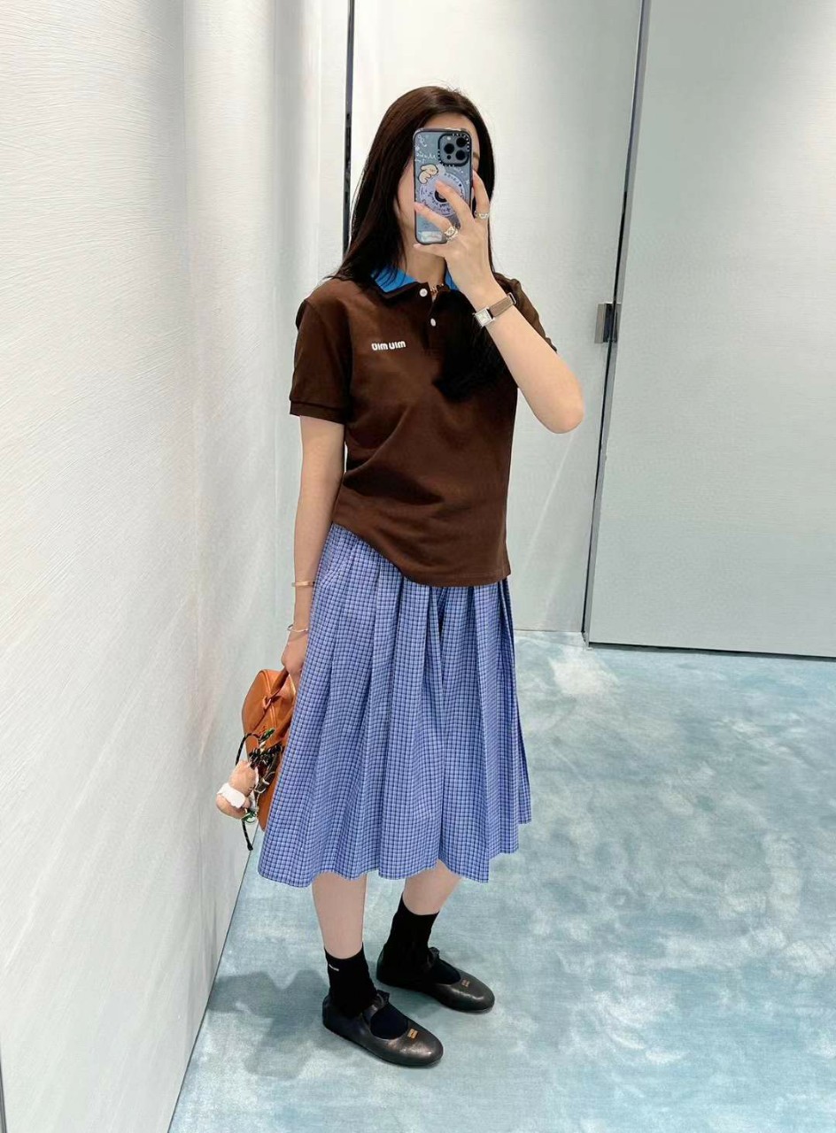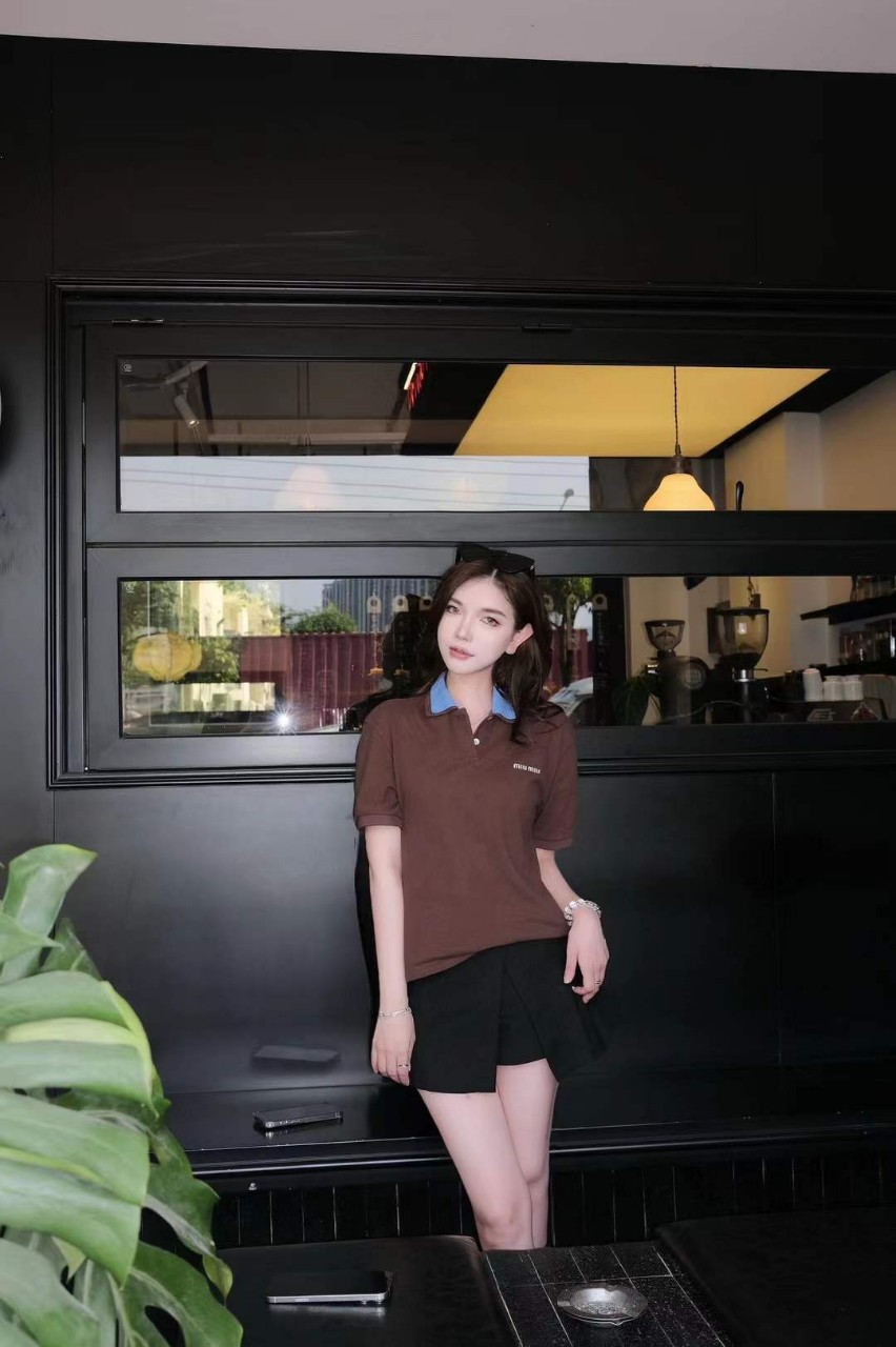 미우미우 로고 자수 폴로 셔츠