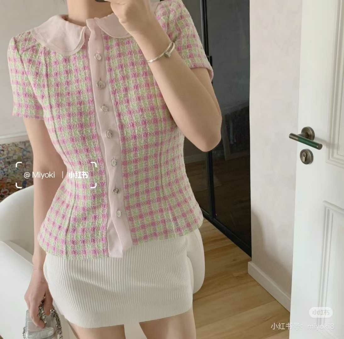 샤넬 25ss 트위드 반팔 탑