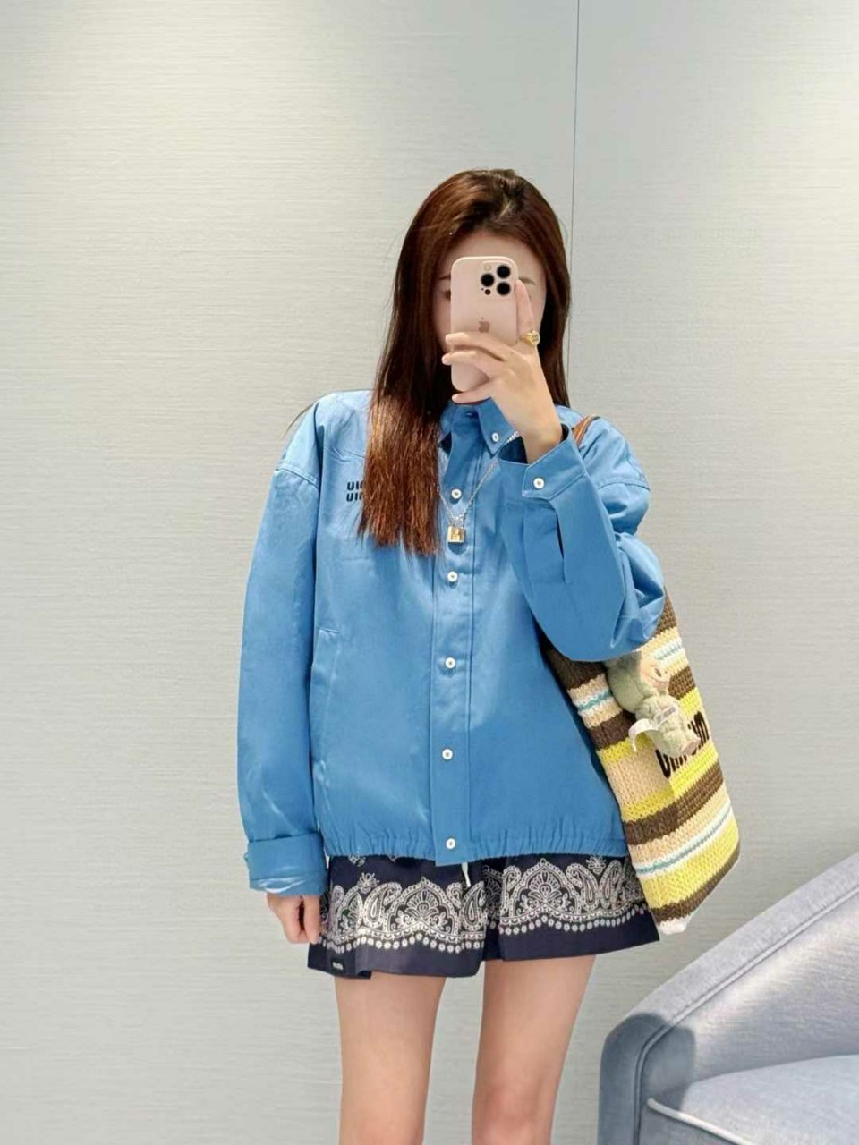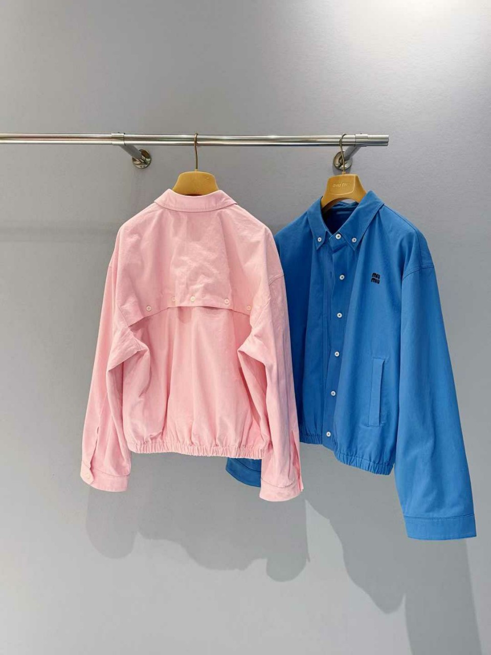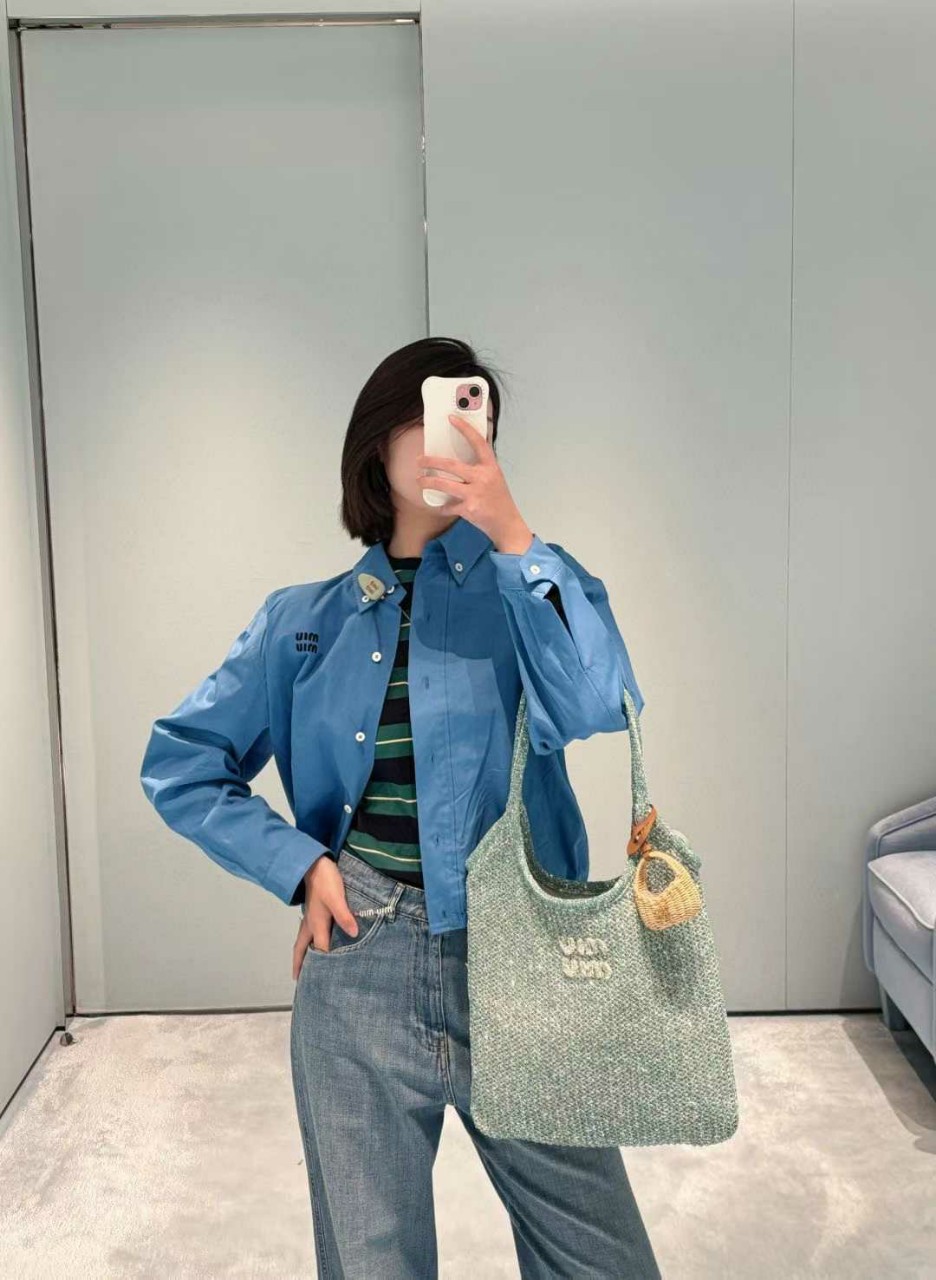 미우미우 25ss 포플린 블루종 자켓