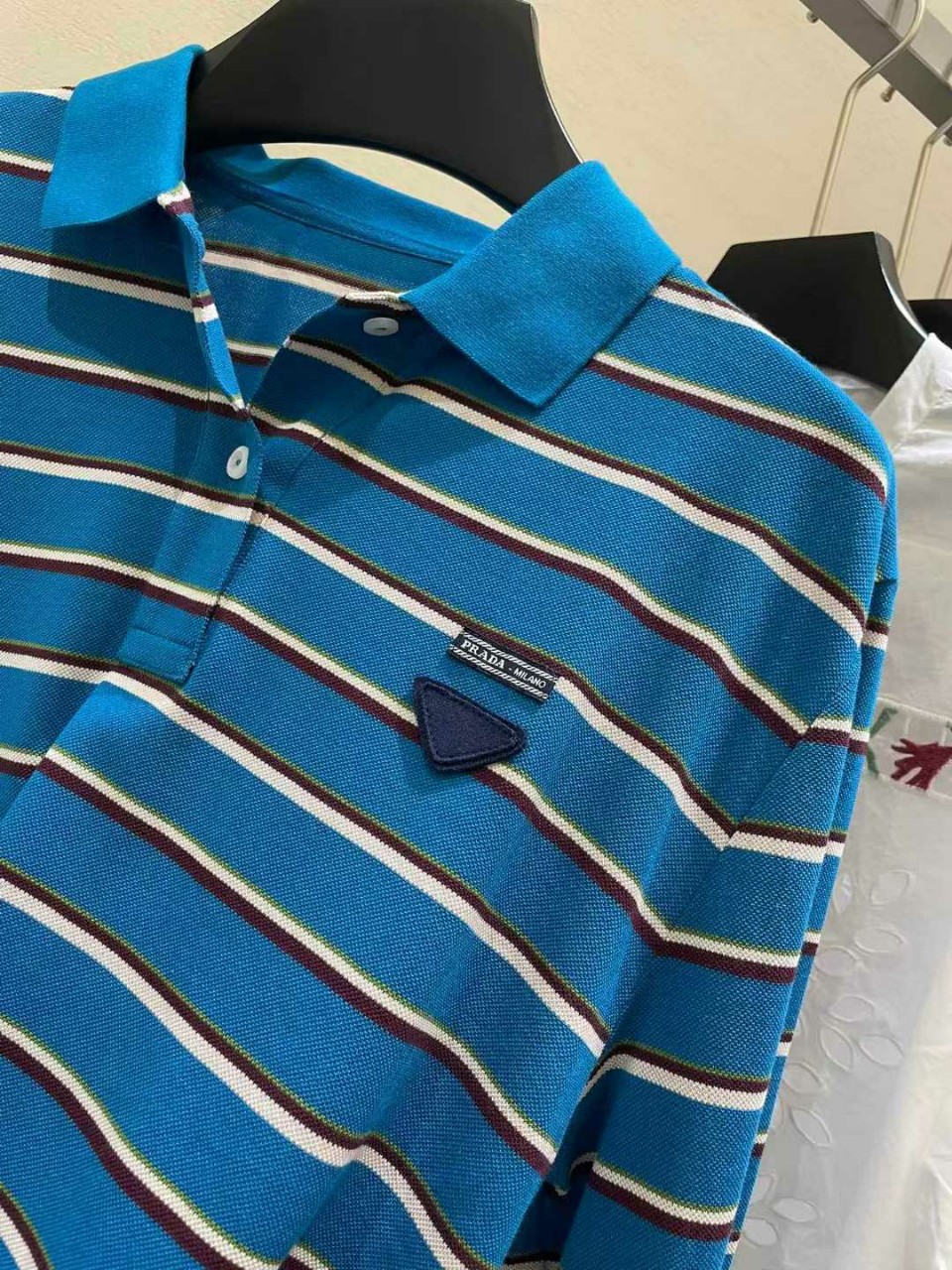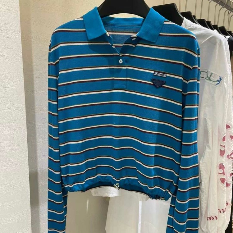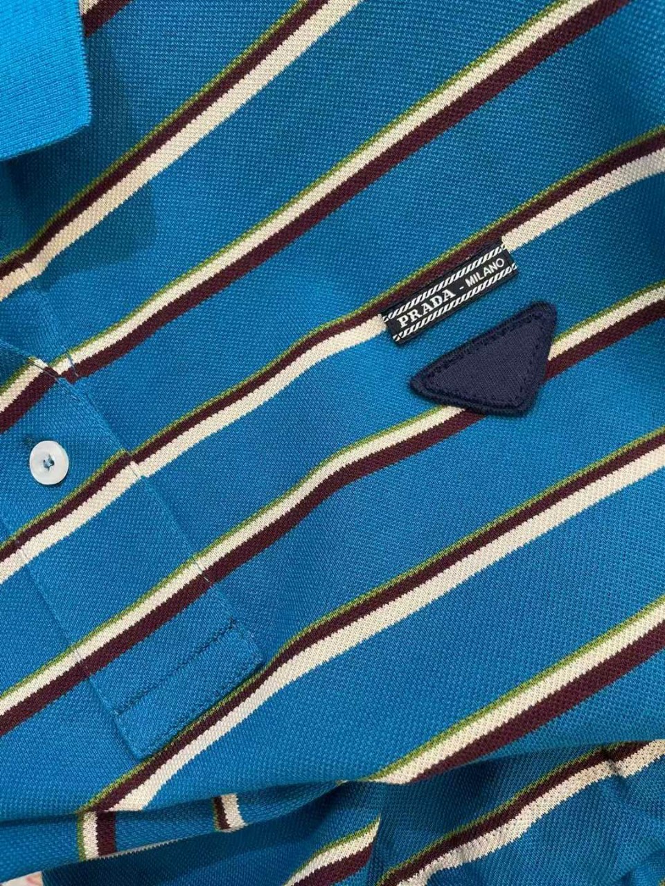 프라다 스트라이프 코튼 피케 폴로 셔츠