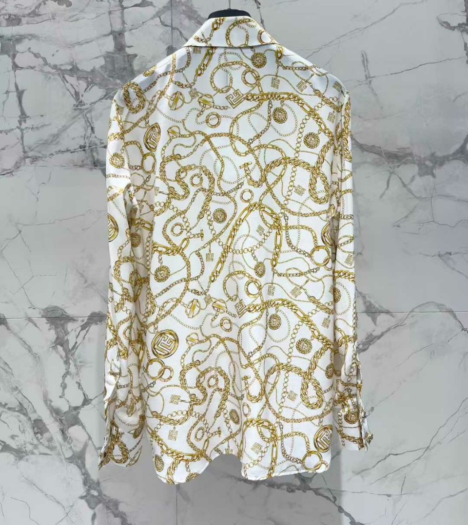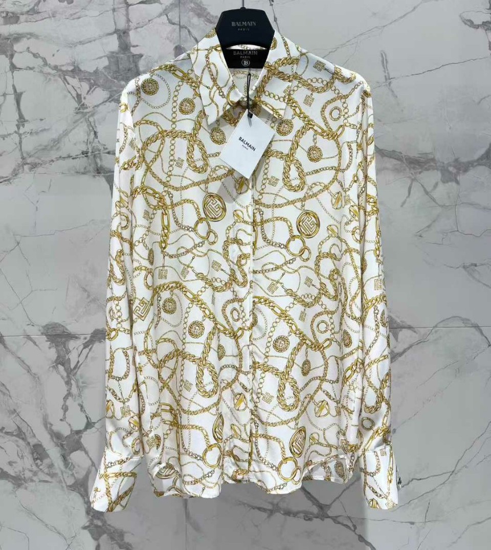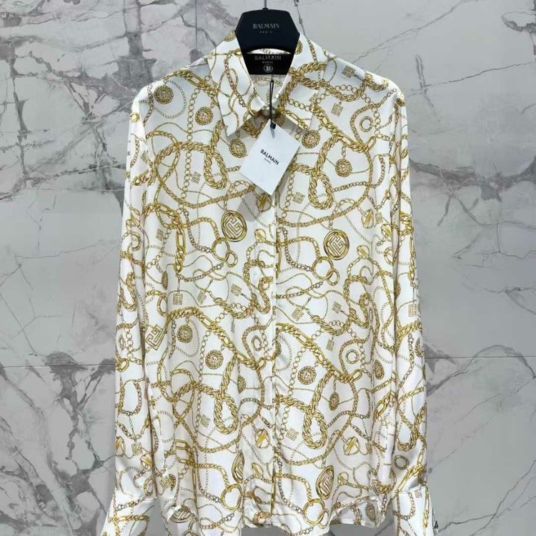발망 프린트 실크 블라우스