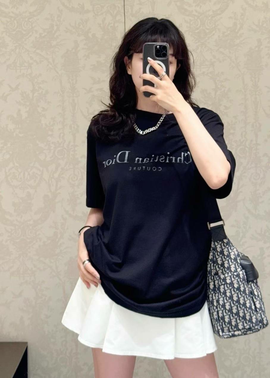 디올 Couture 이펙트 코튼 저지 캐주얼 핏 티셔츠