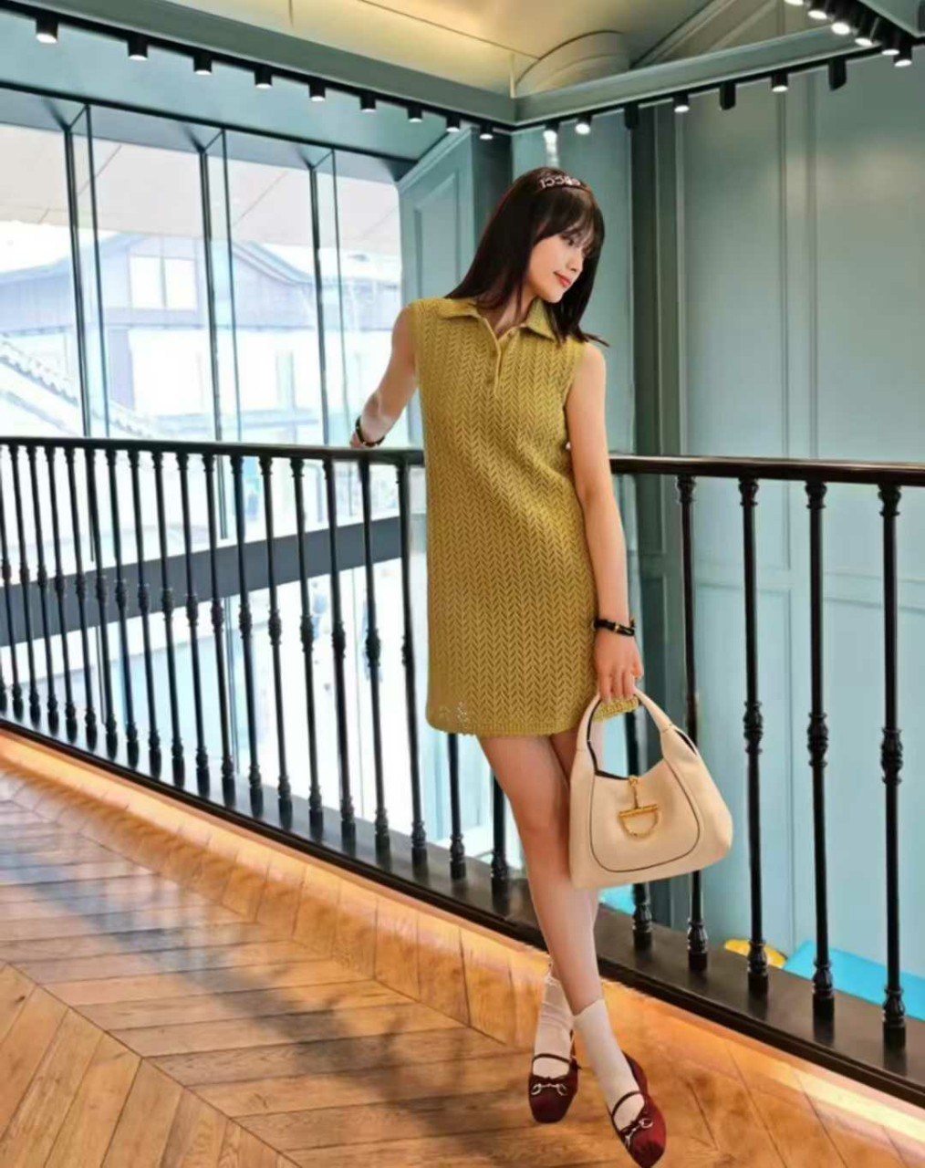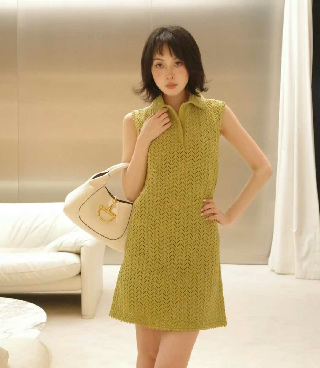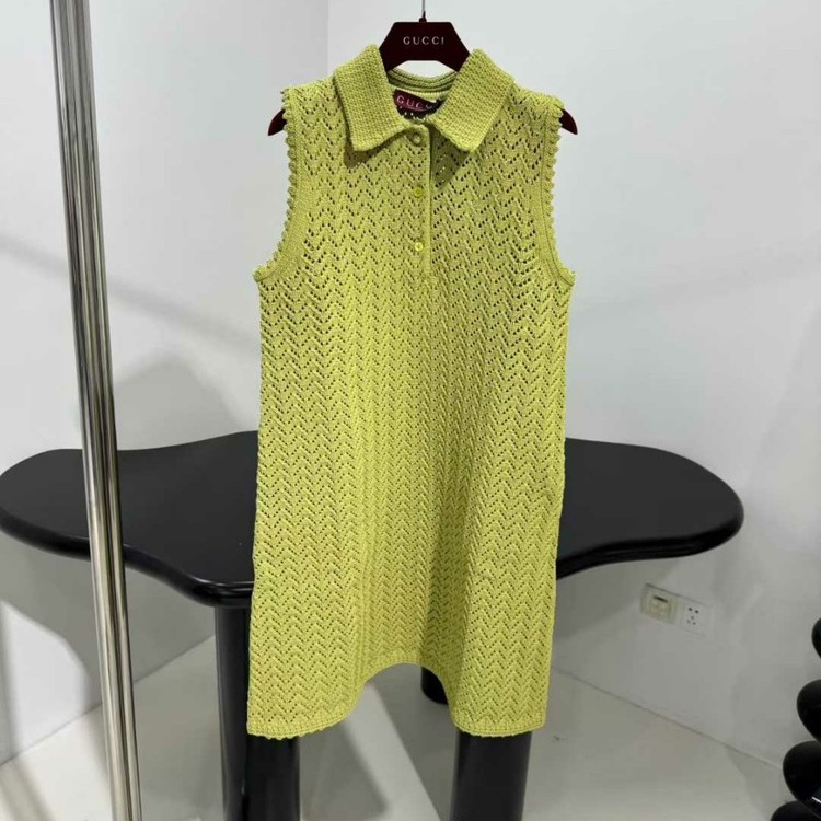 구찌 울 블렌드 폴로 셔츠 슬리브리스 원피스