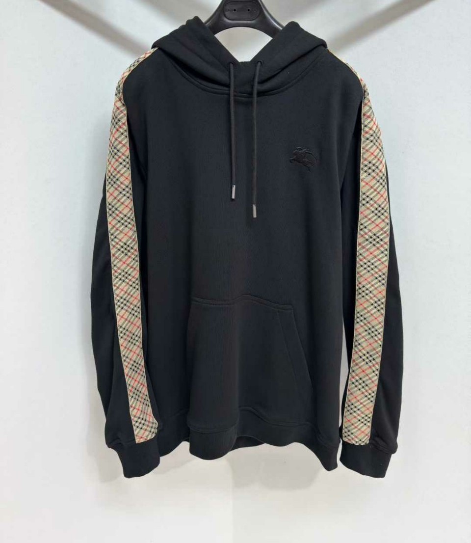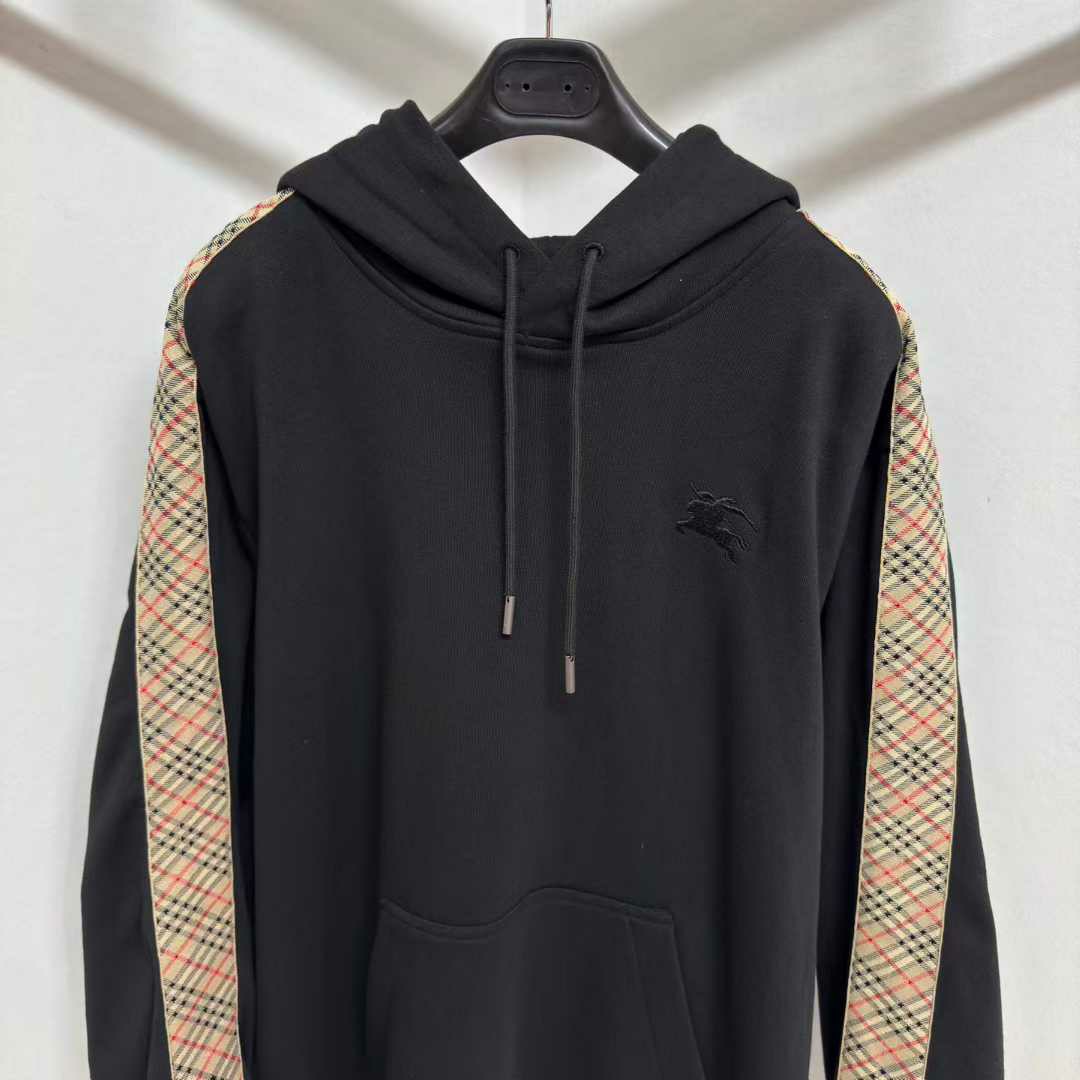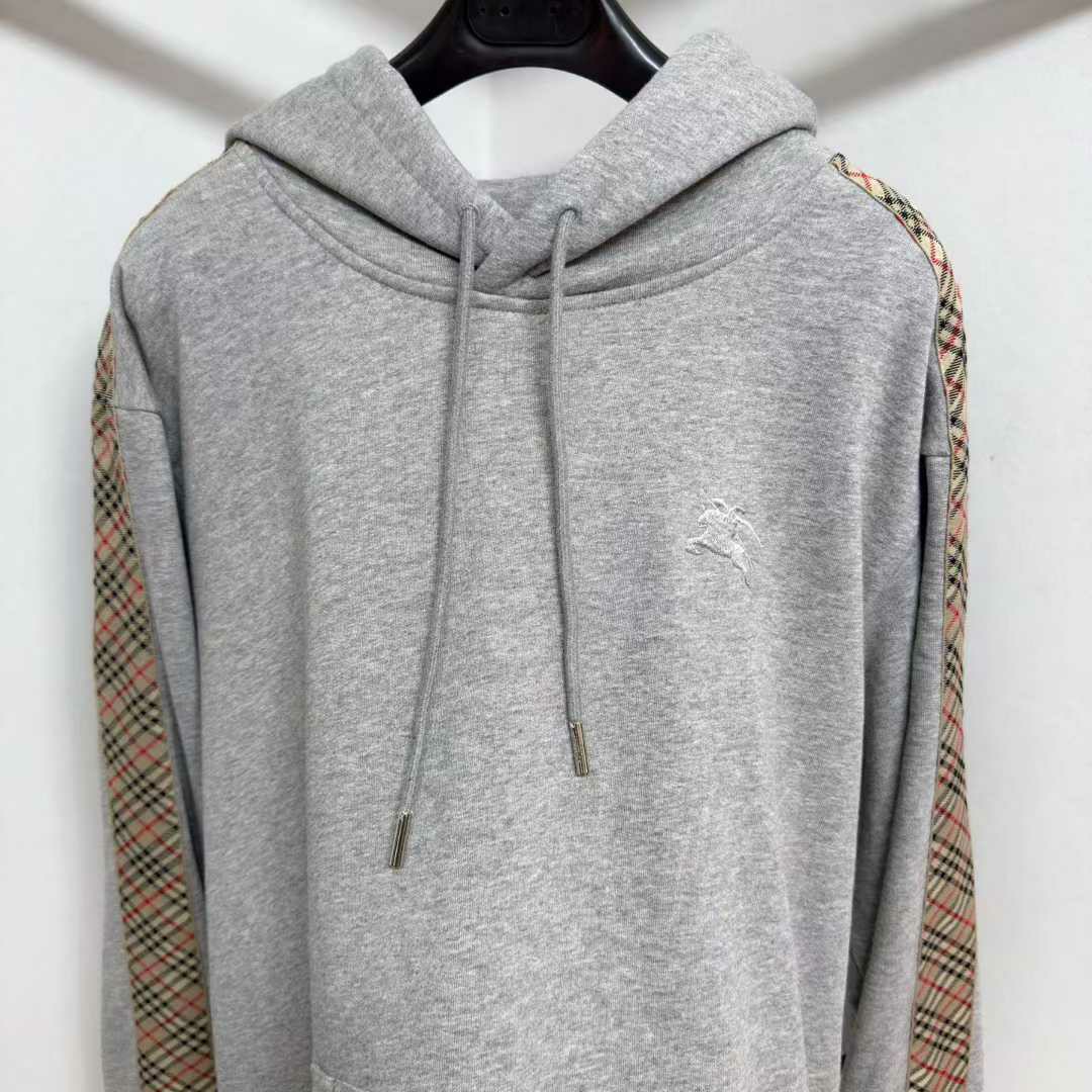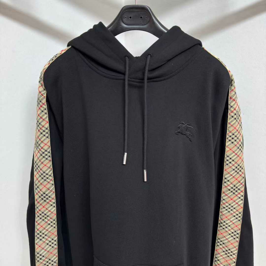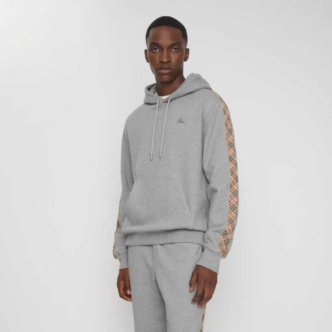 버버리 체크 트리밍 코튼 후드