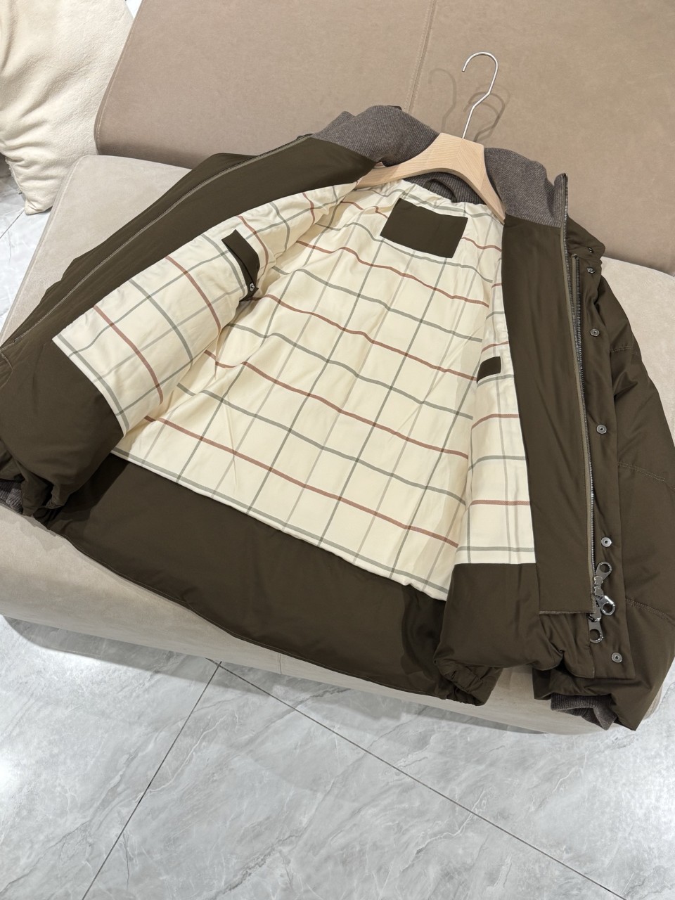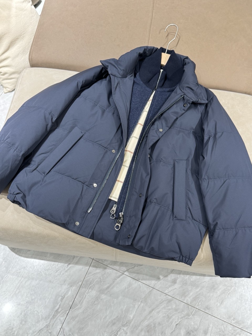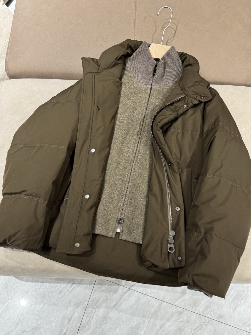 로로피아나 니트 트리밍 구스다운 자켓