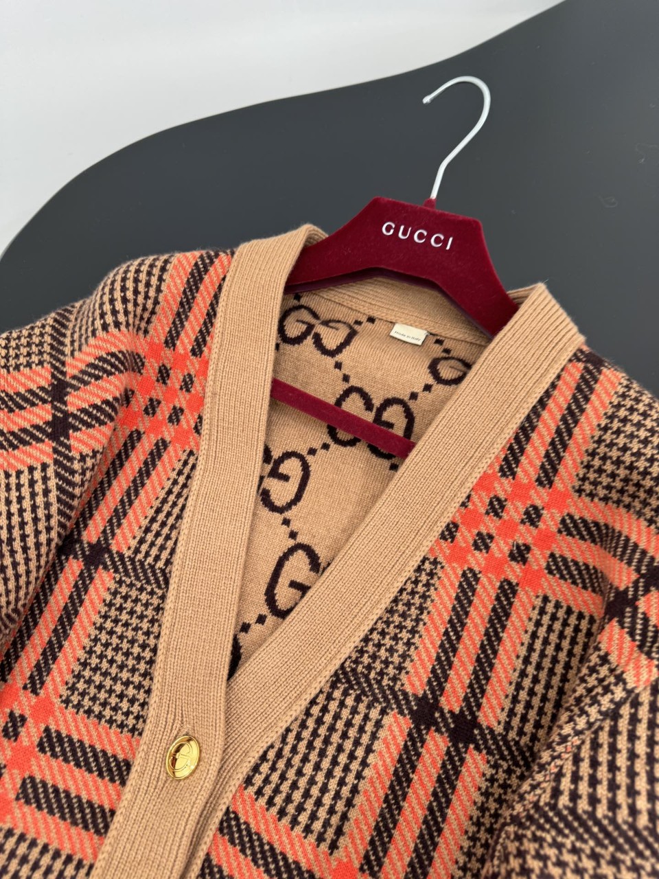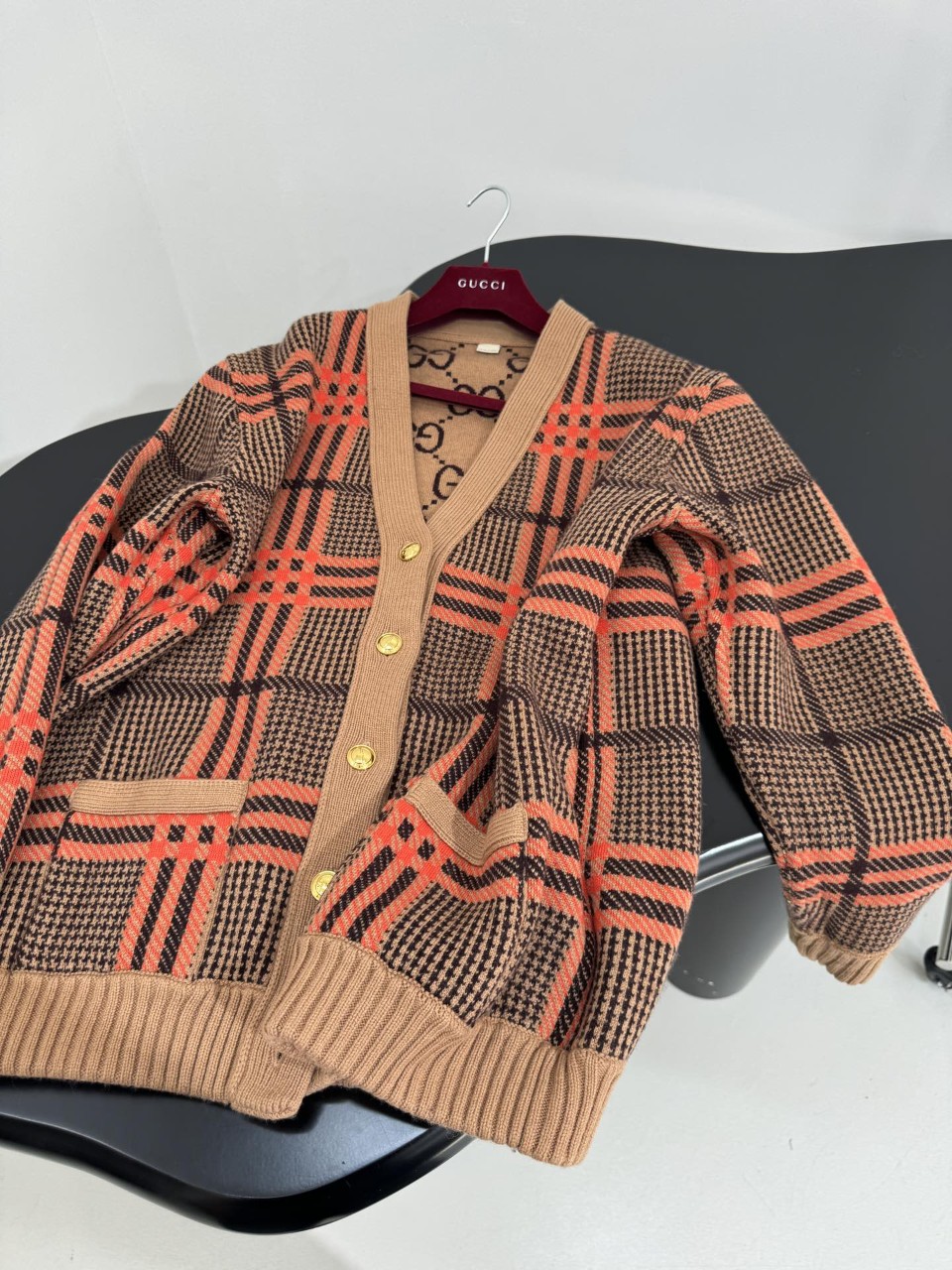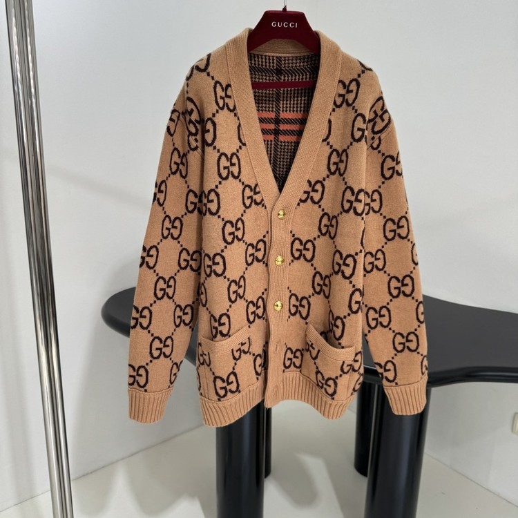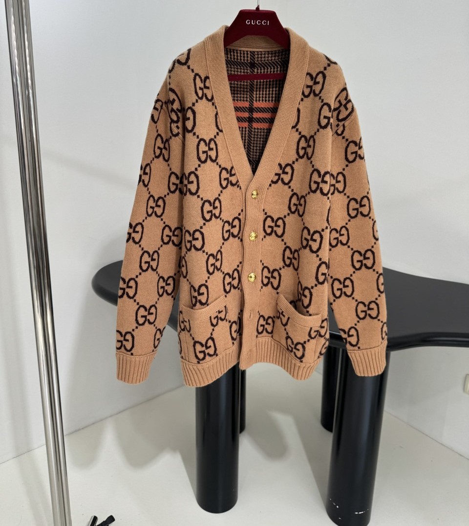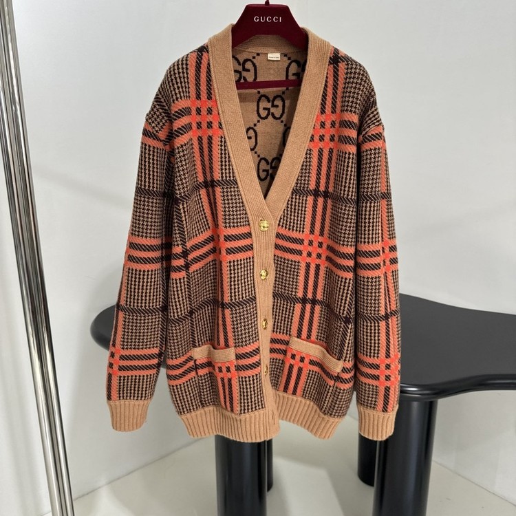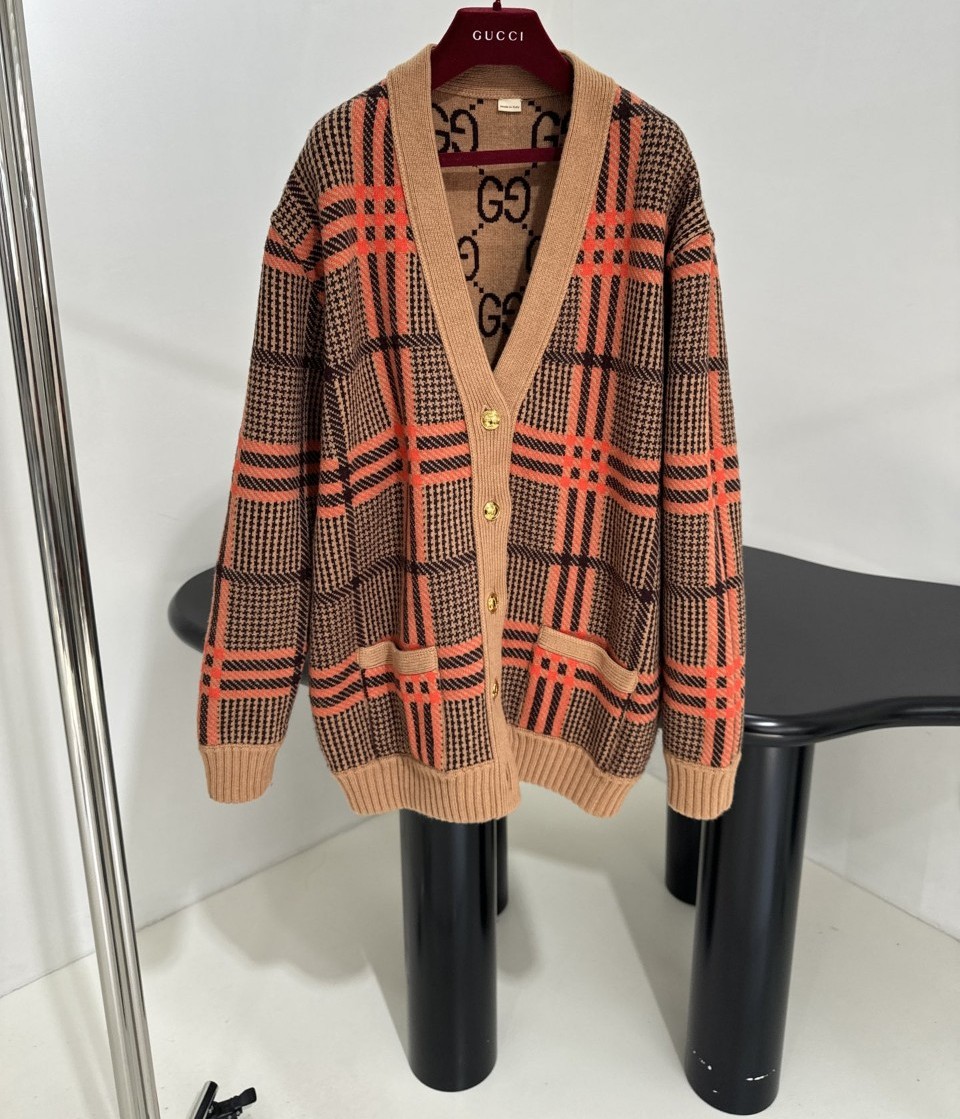 구찌 GG 리버서블 체크 울 가디건