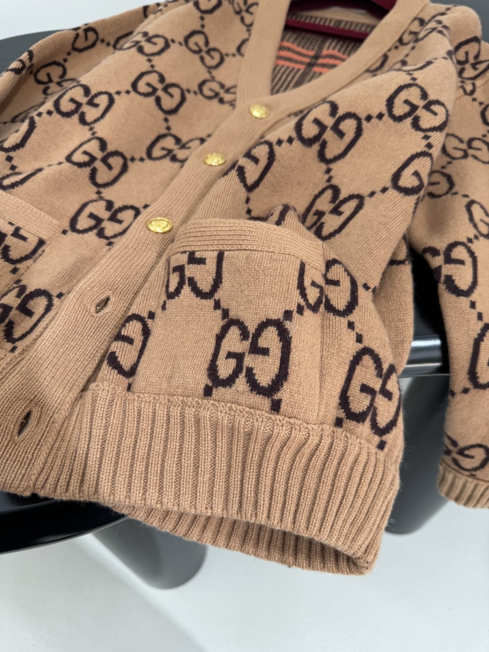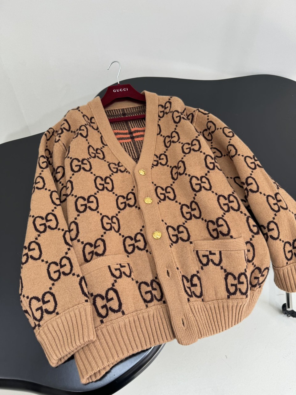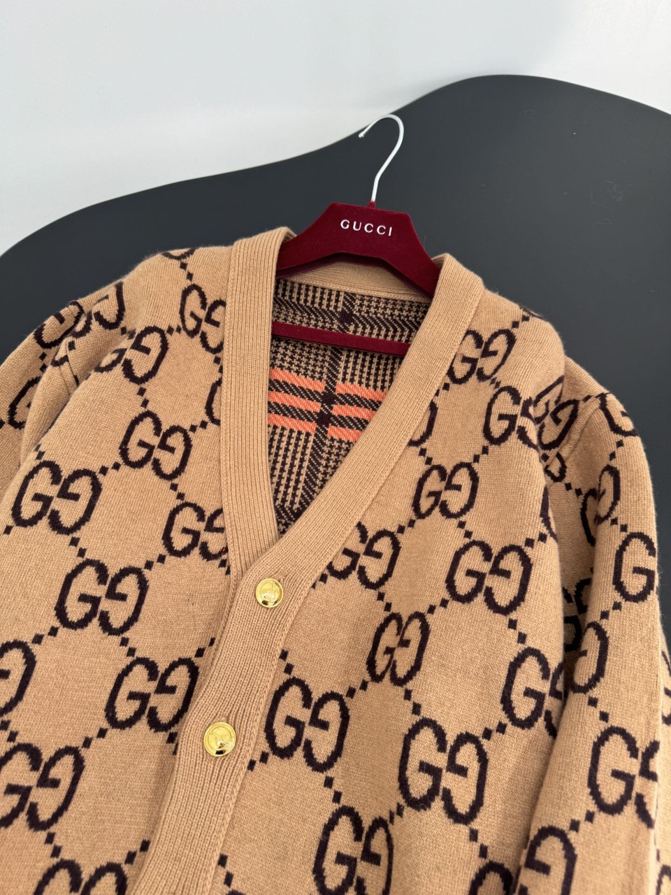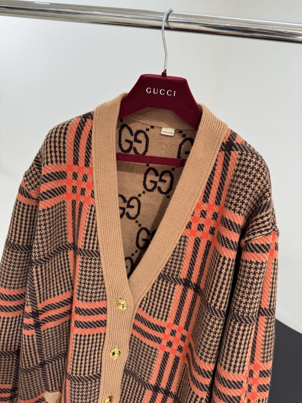구찌 GG 리버서블 체크 울 가디건