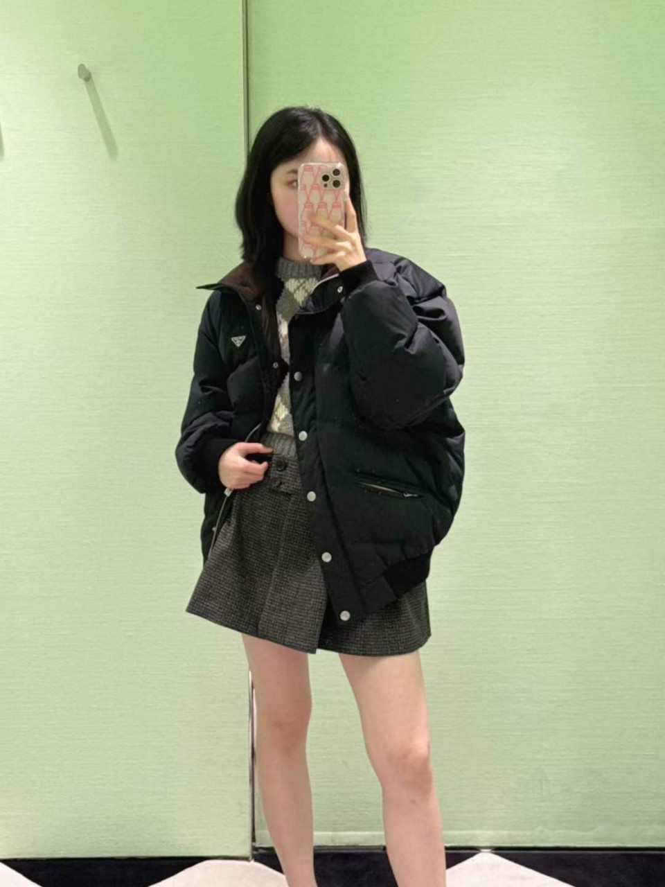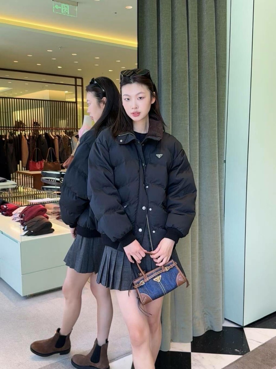 프라다 크롭 컴팩트 포플린 다운 자켓