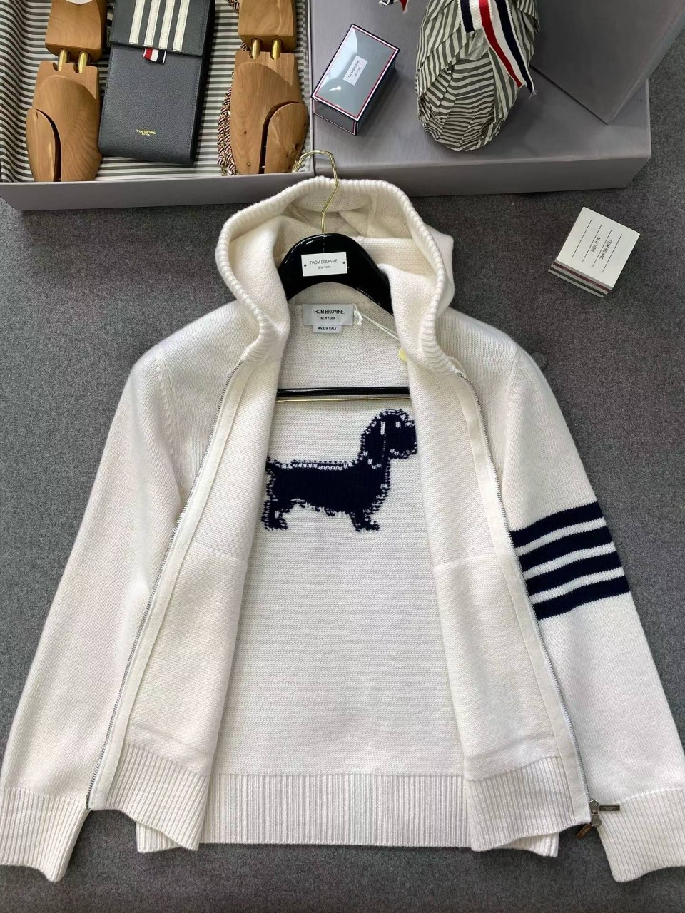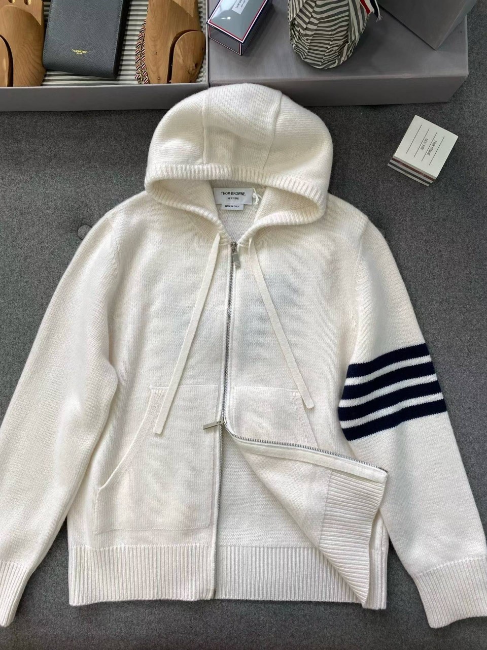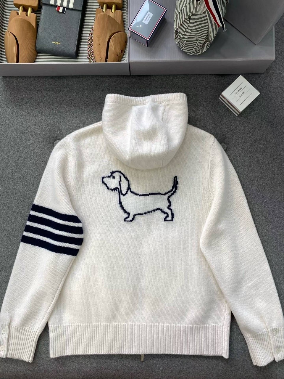 톰브라운 클래식 4바 헥터 울 니트 후드 집업