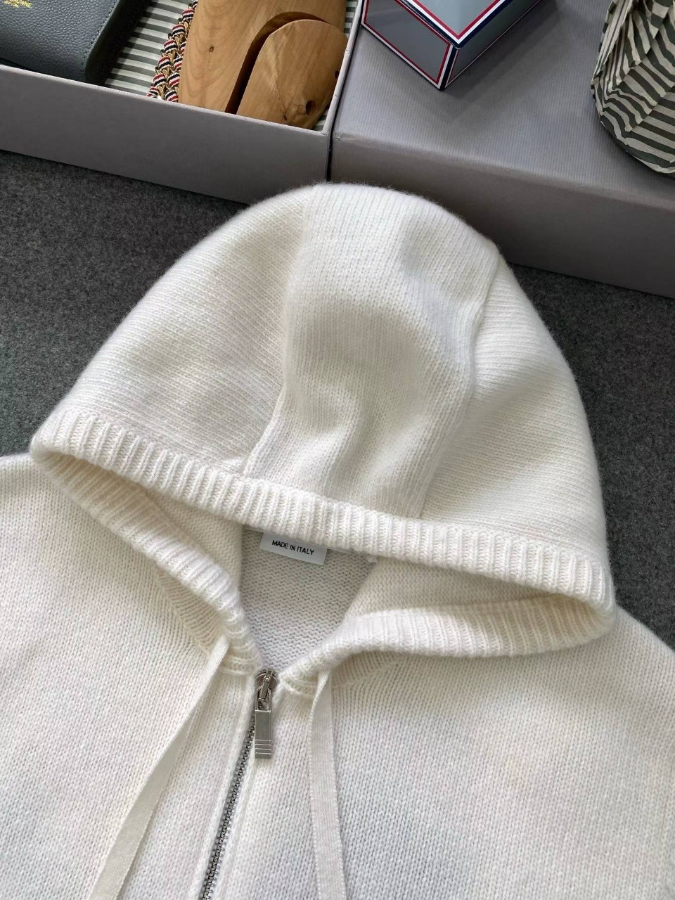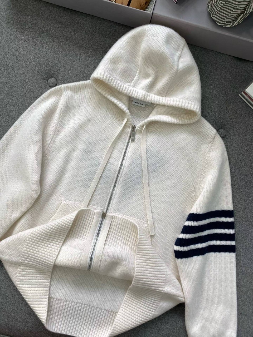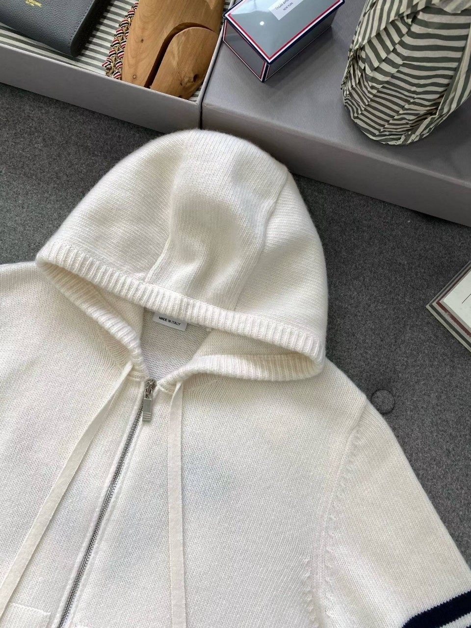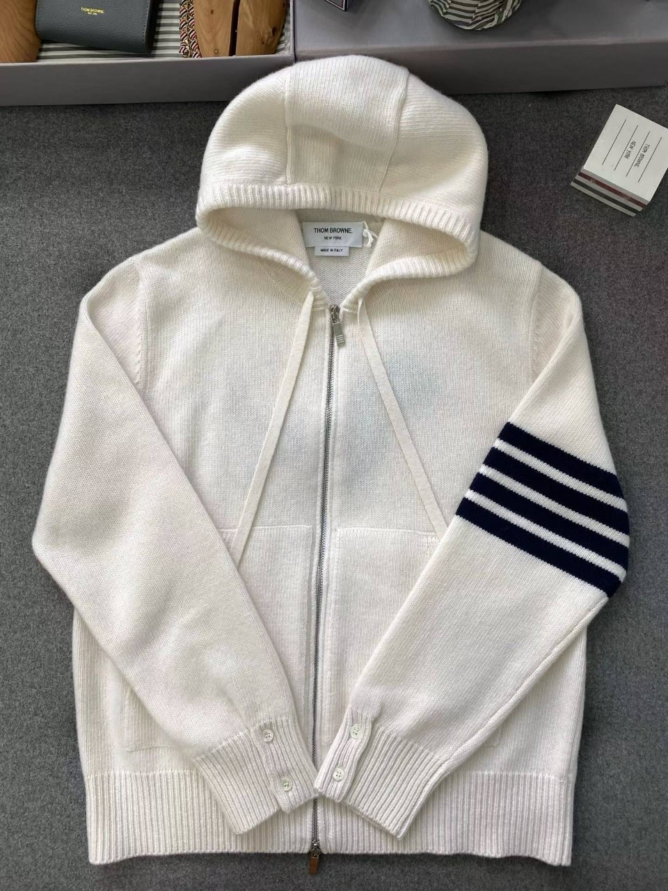 톰브라운 클래식 4바 헥터 울 니트 후드 집업