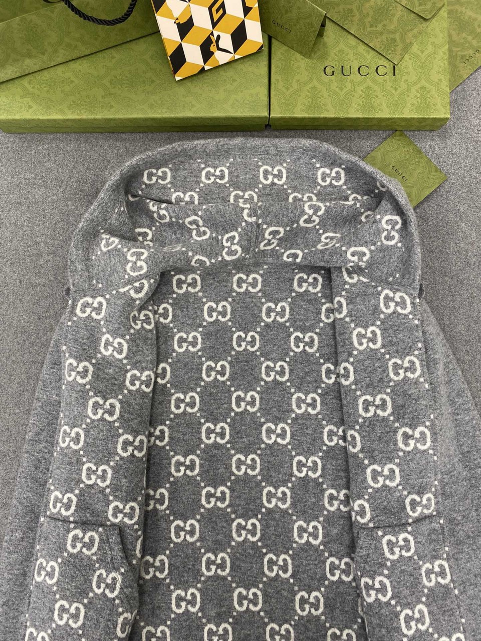 구찌 리버서블 울 니트 집업 후드