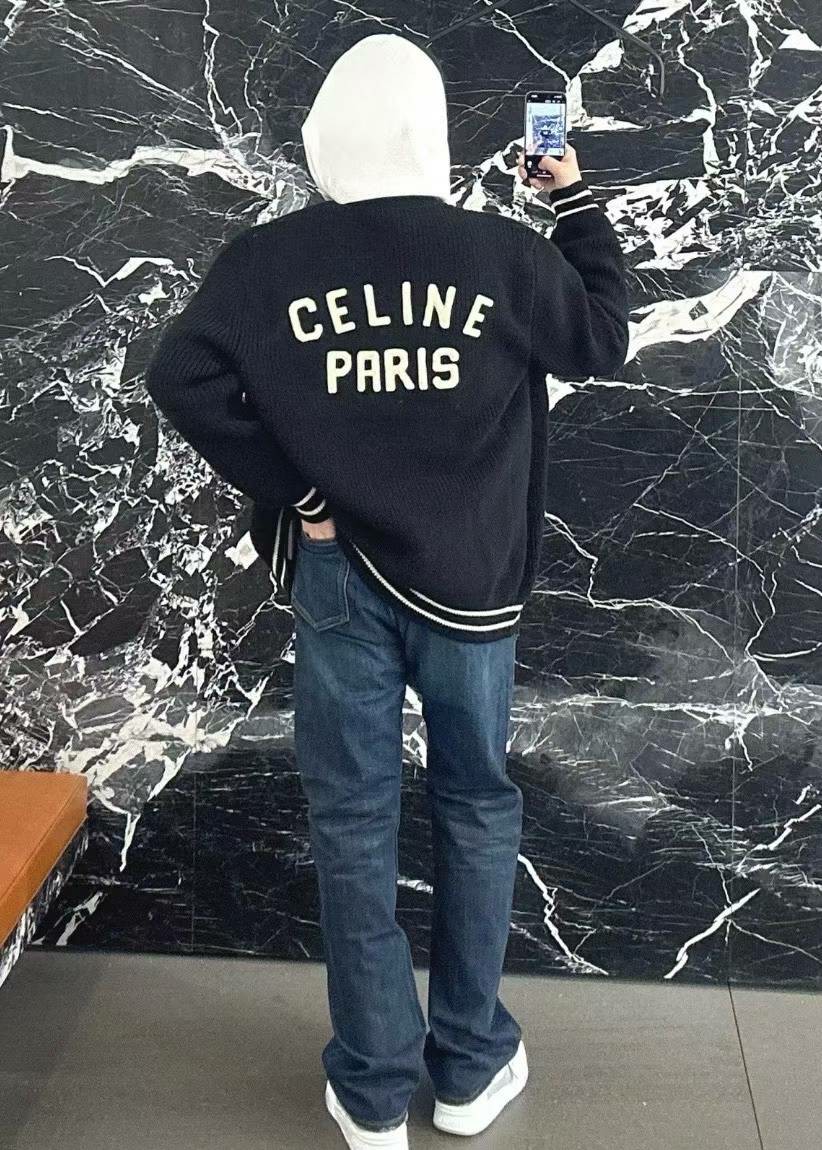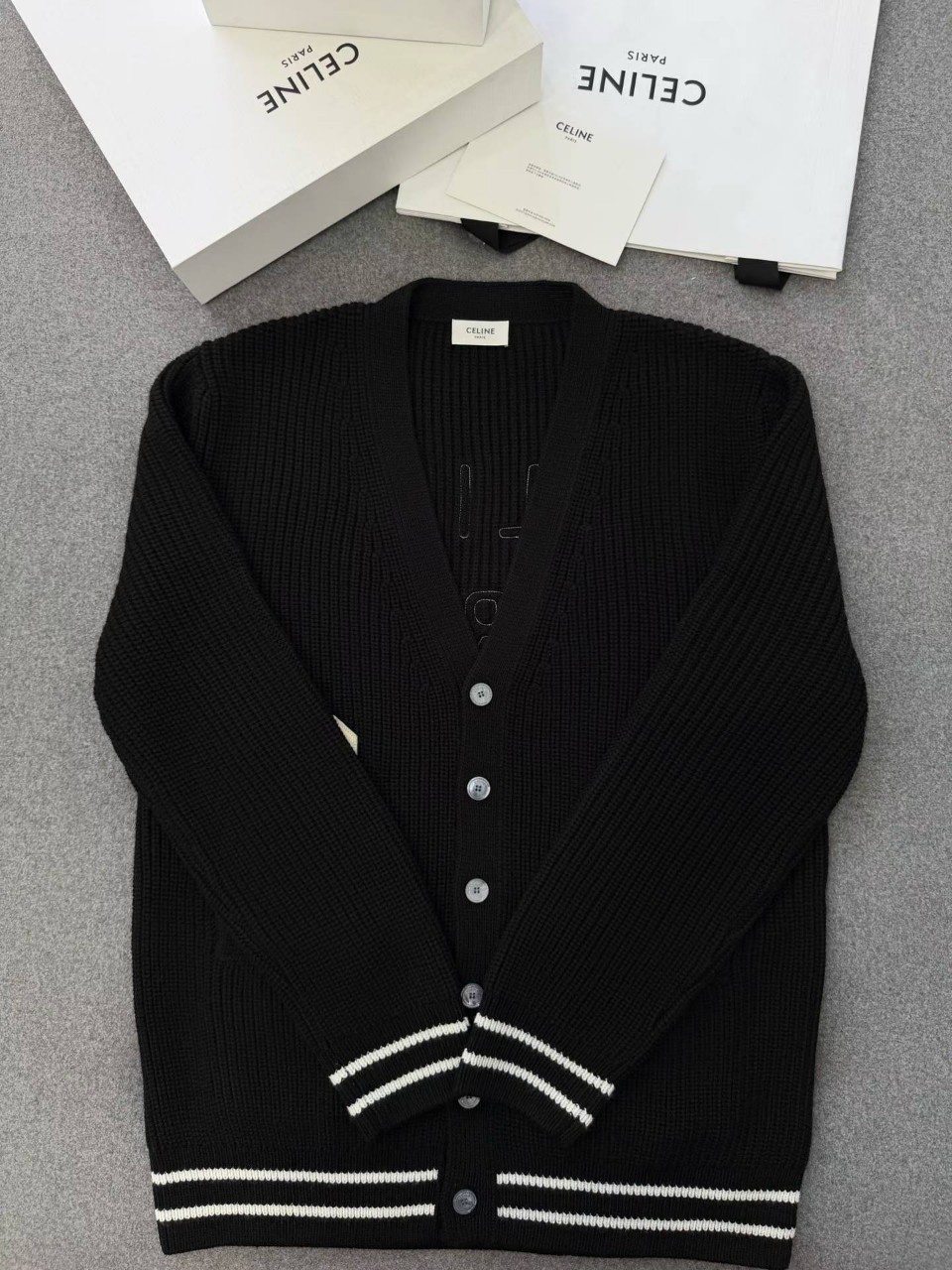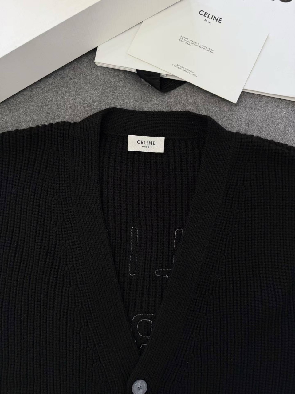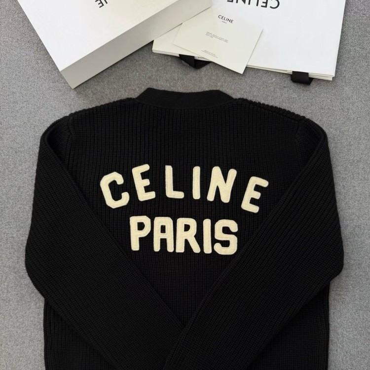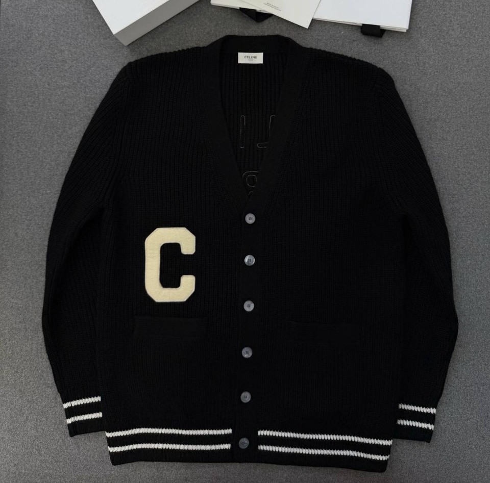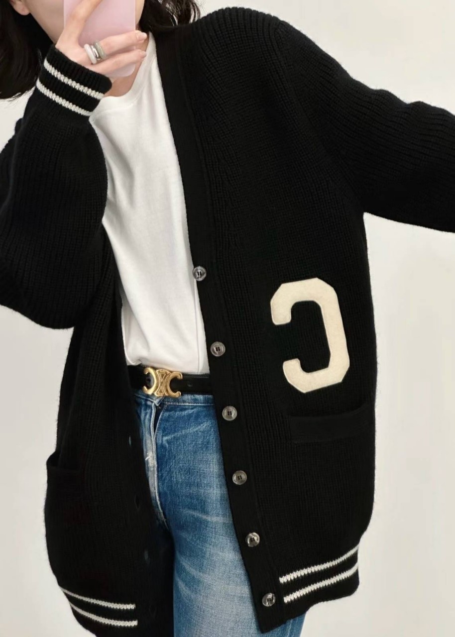 셀린느 로고 패치 울 가디건