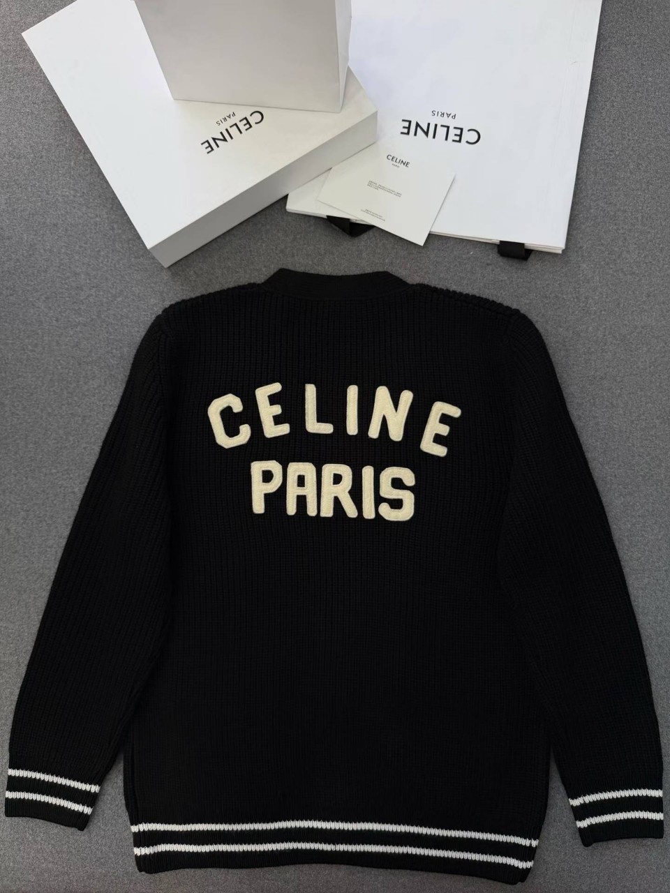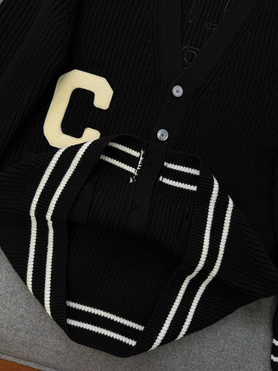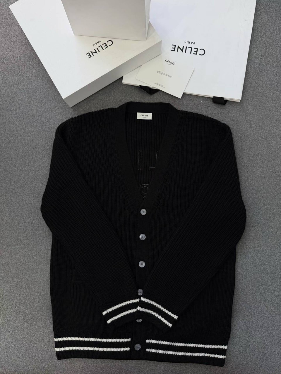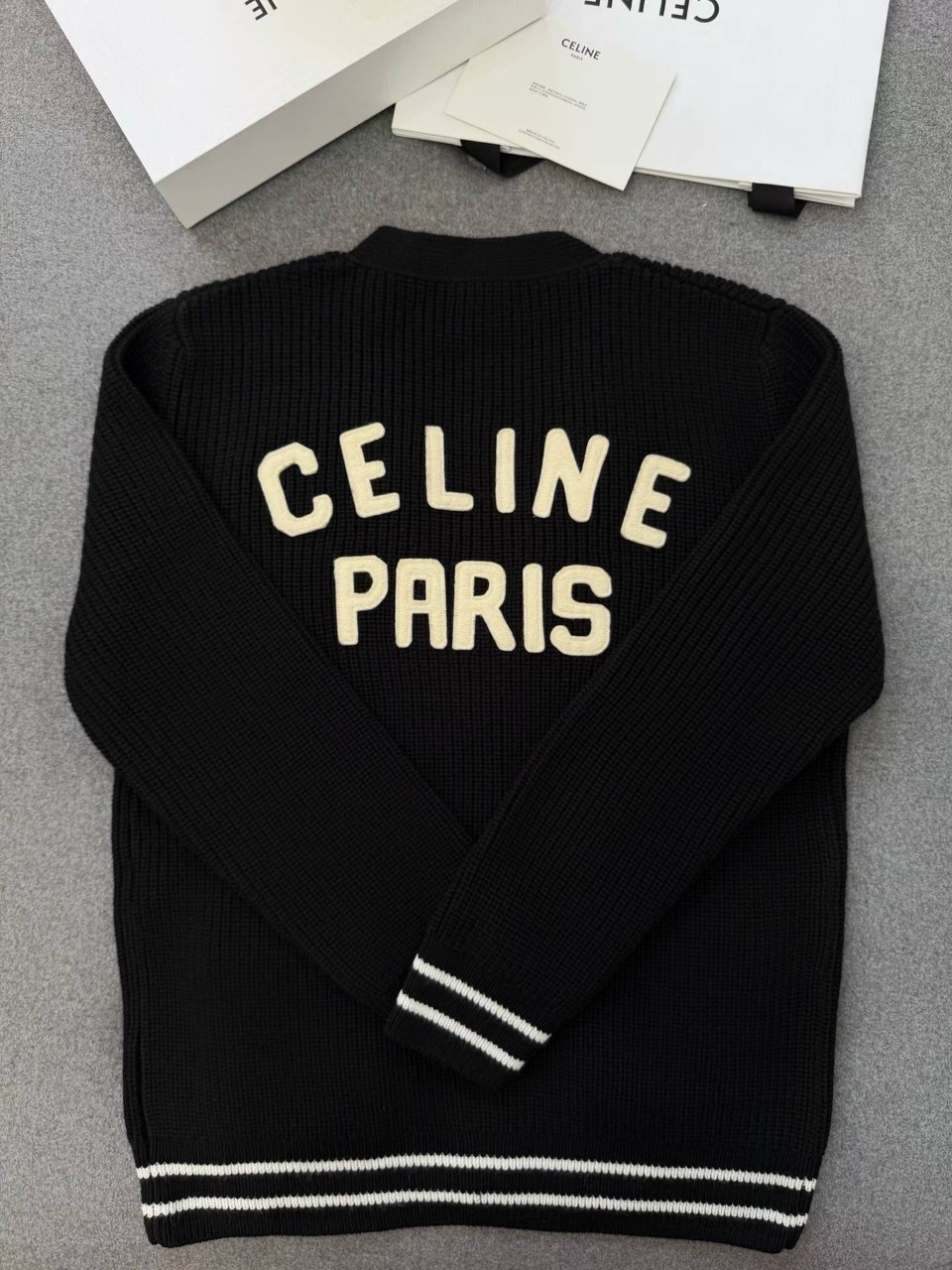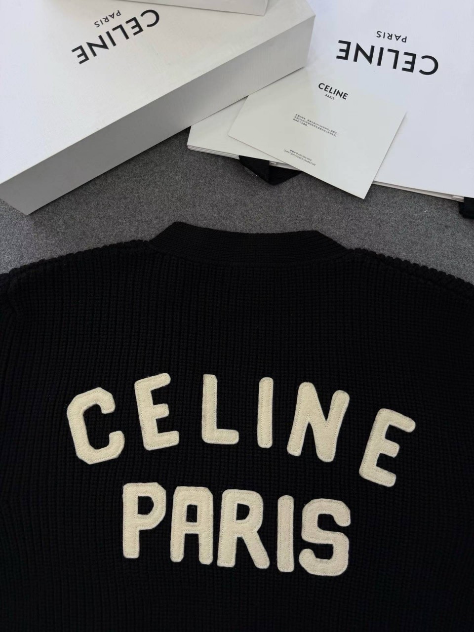 셀린느 로고 패치 울 가디건