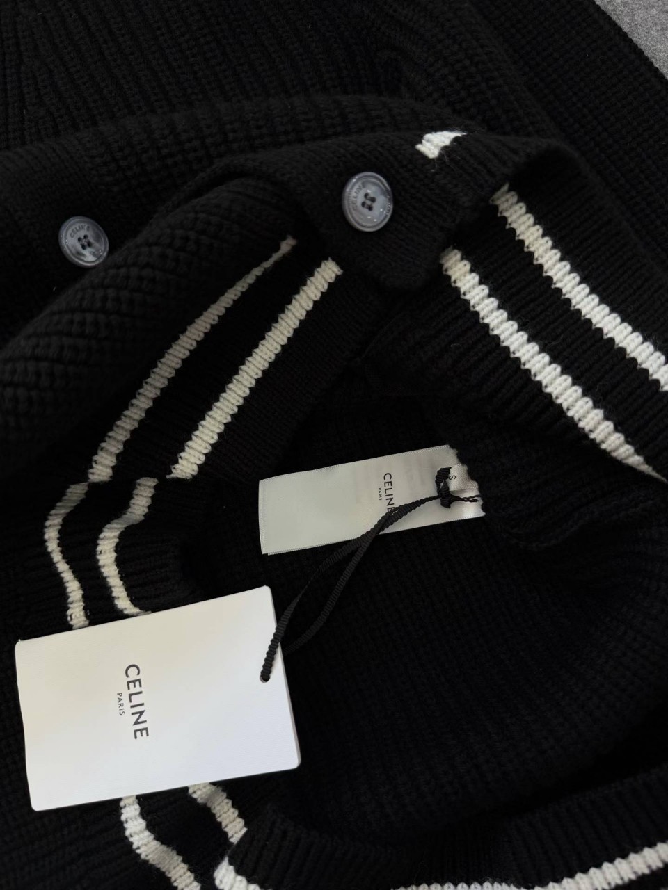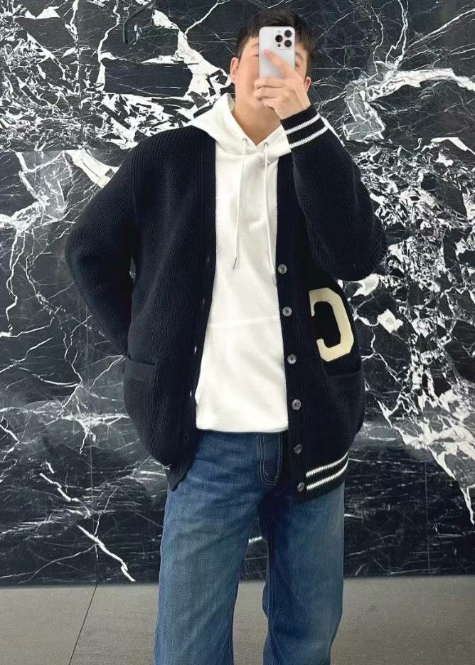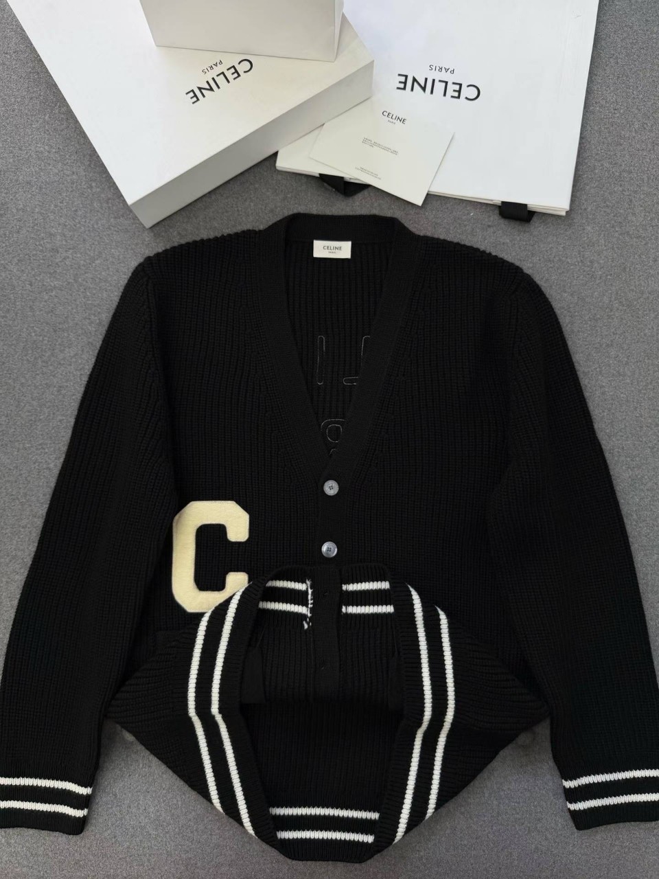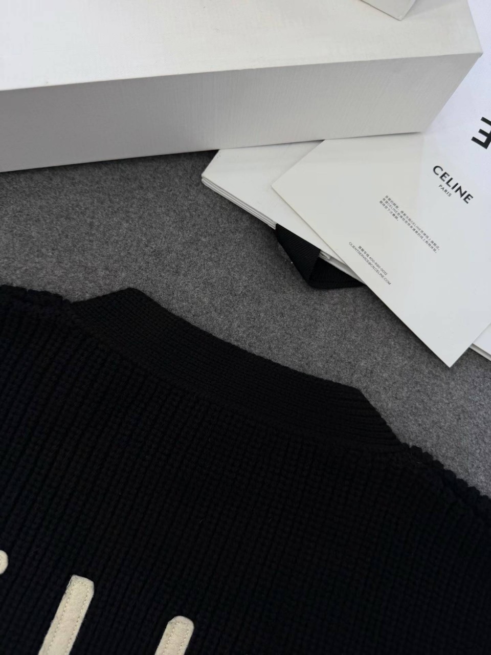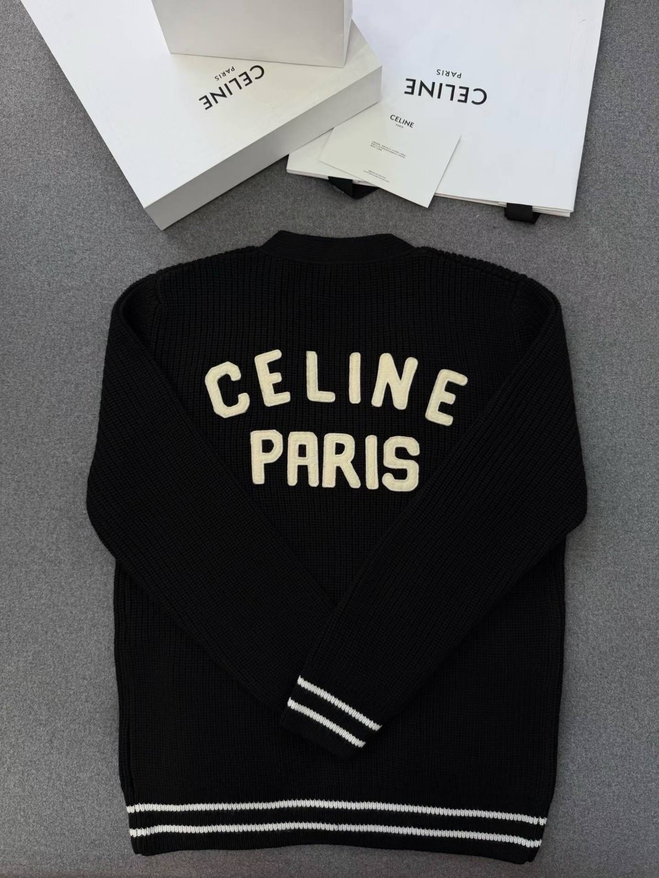 셀린느 로고 패치 울 가디건
