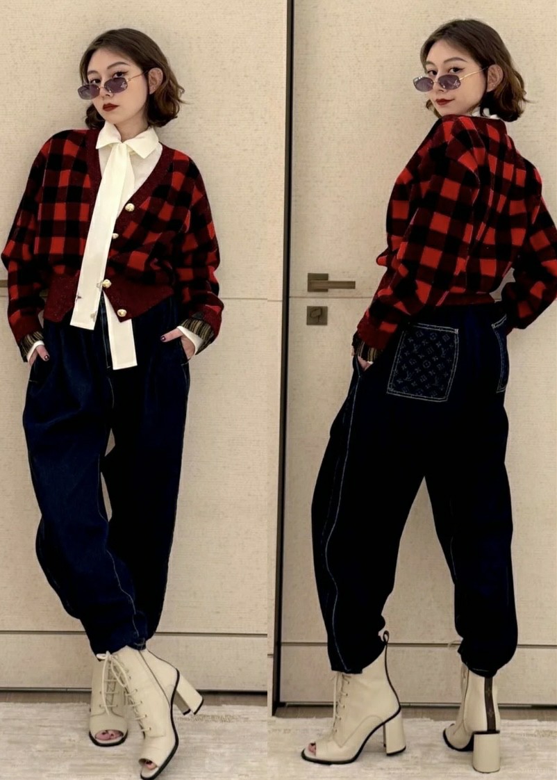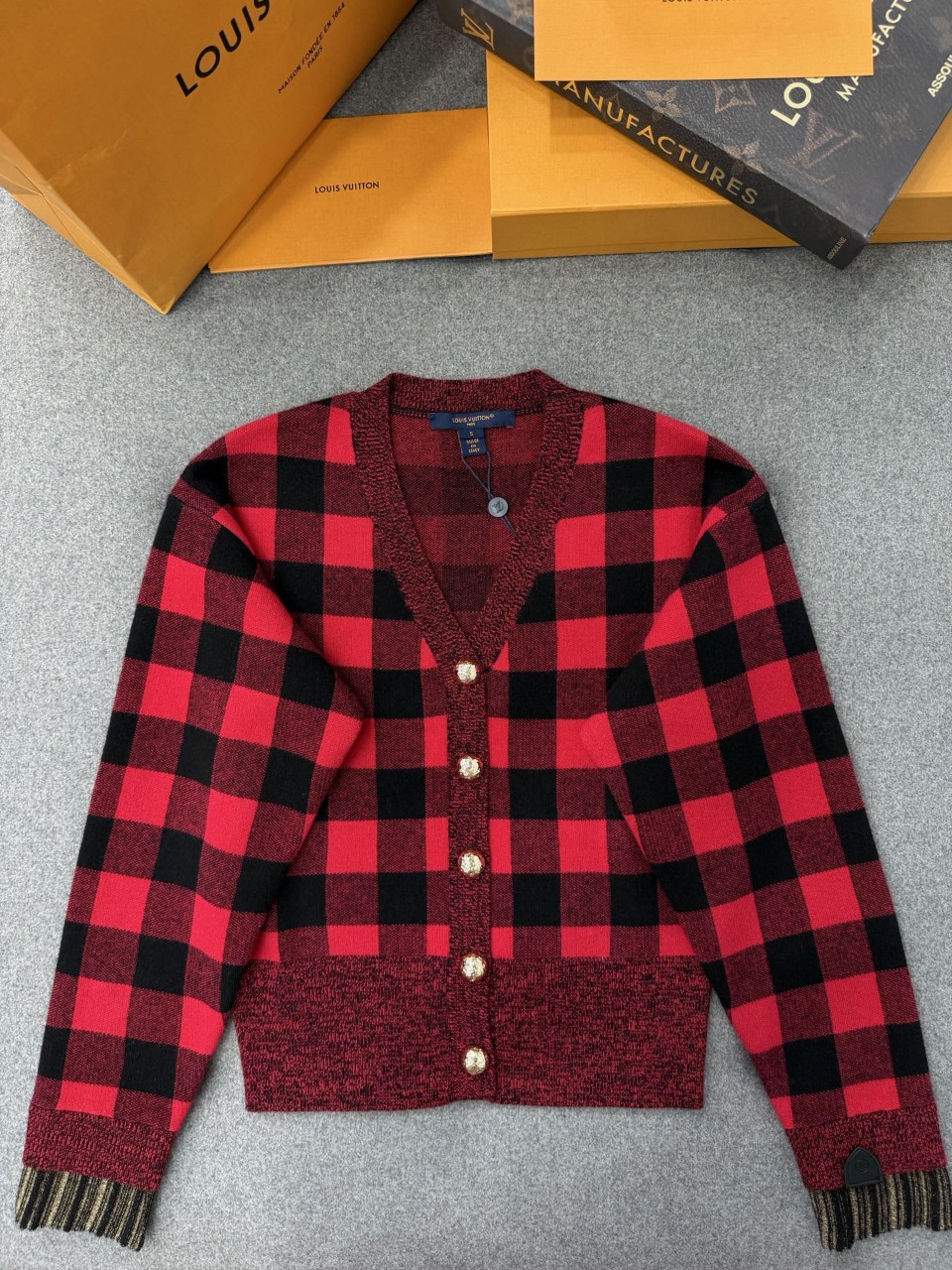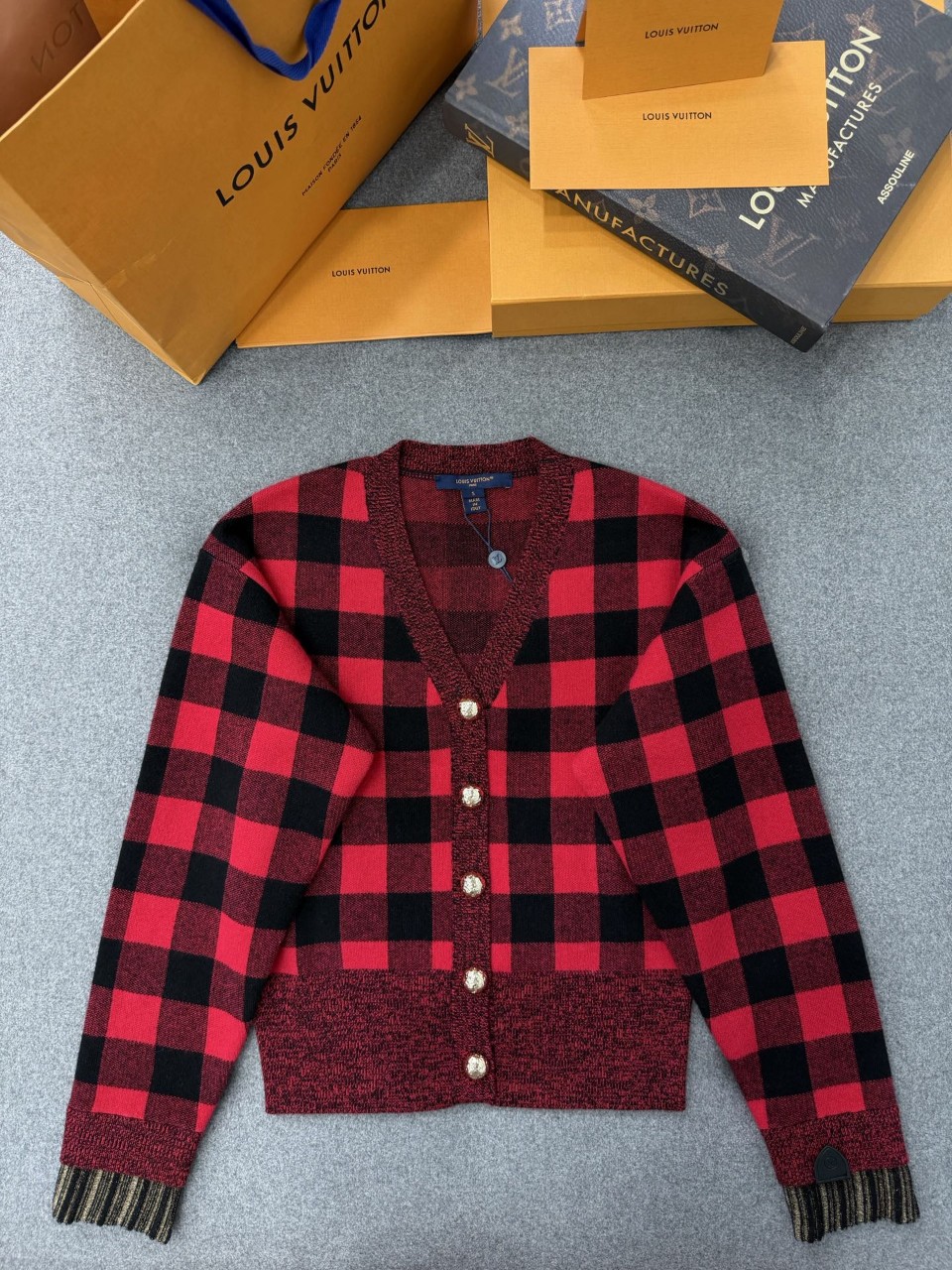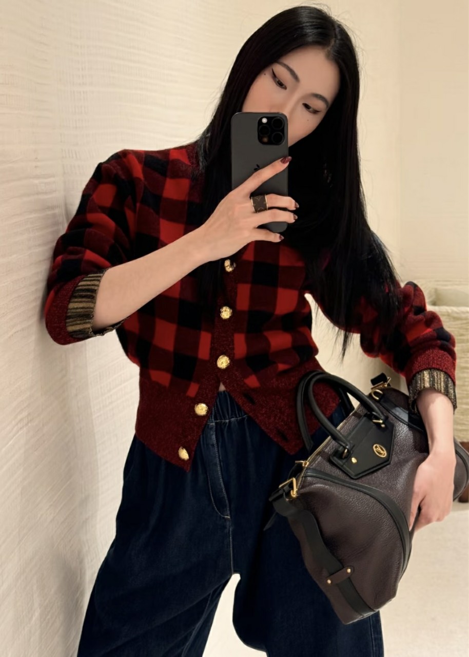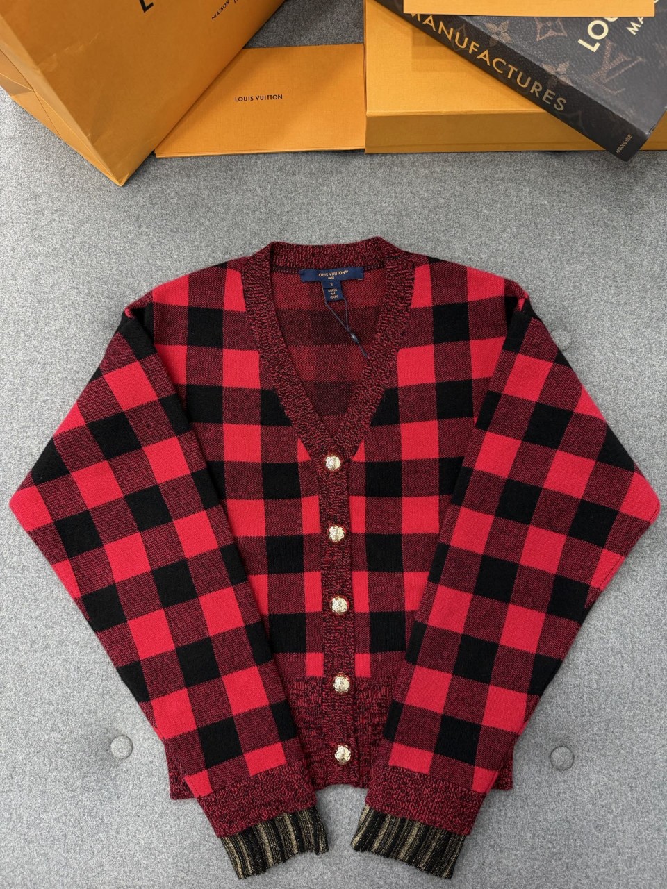 루이비통 그래픽 체크 가디건
