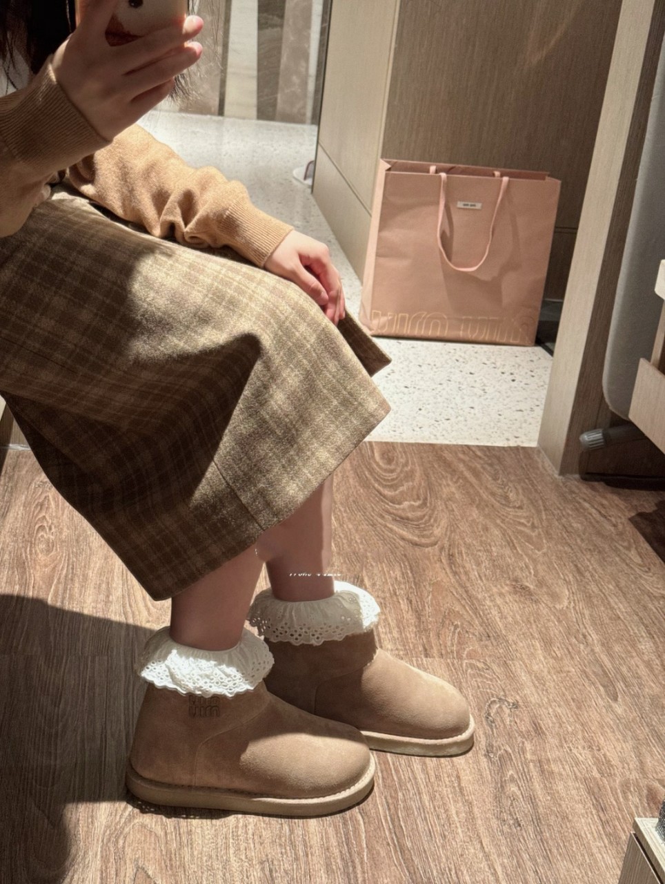 미우미우 스웨이드 시어링 부츠
