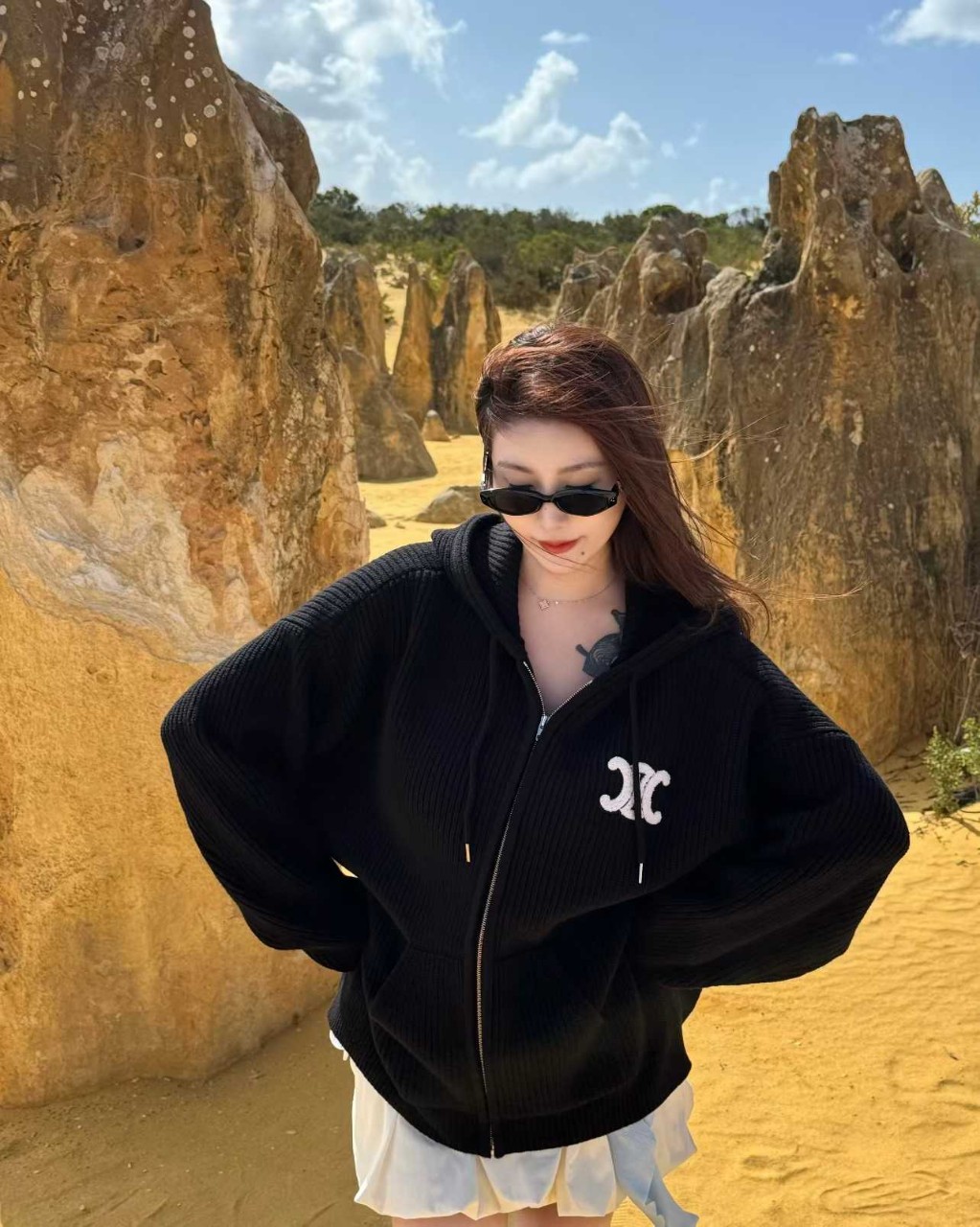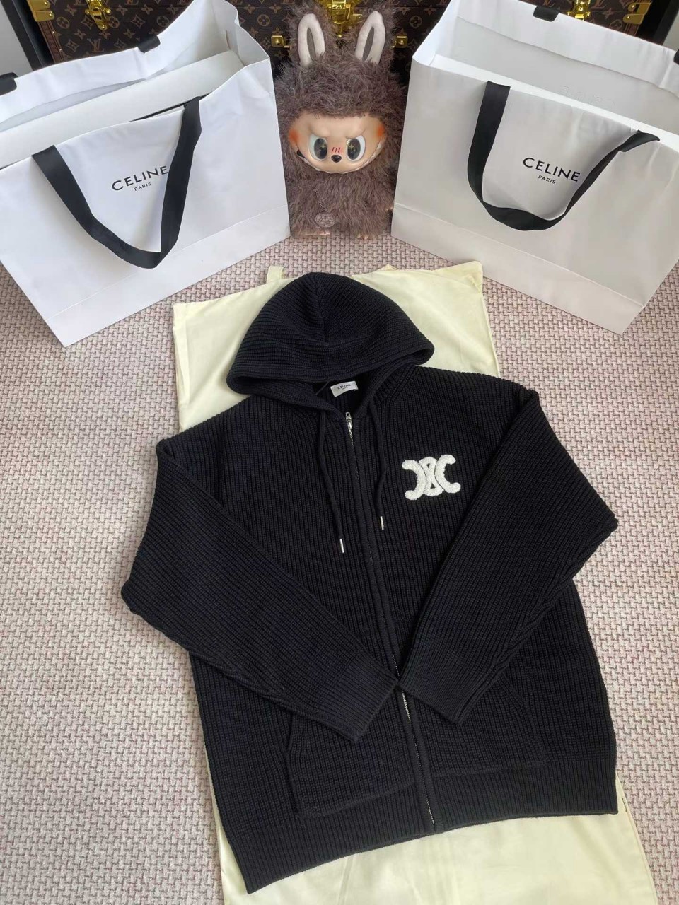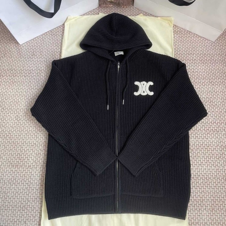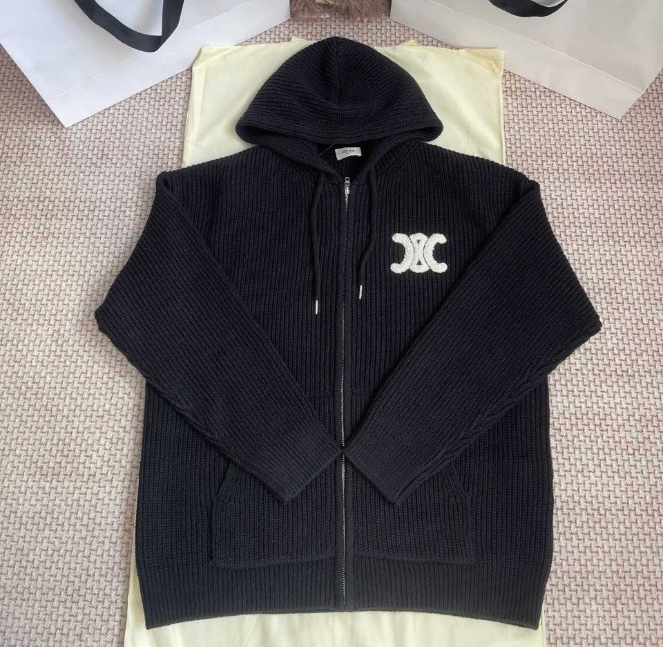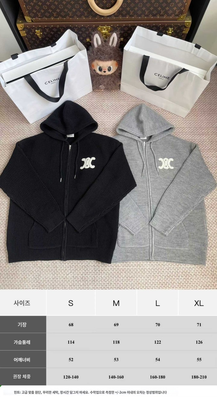 셀린느 리브드 울 후드 가디건