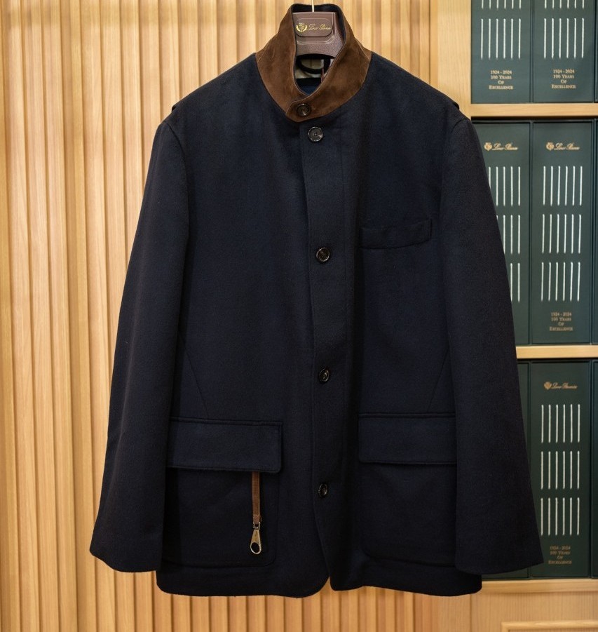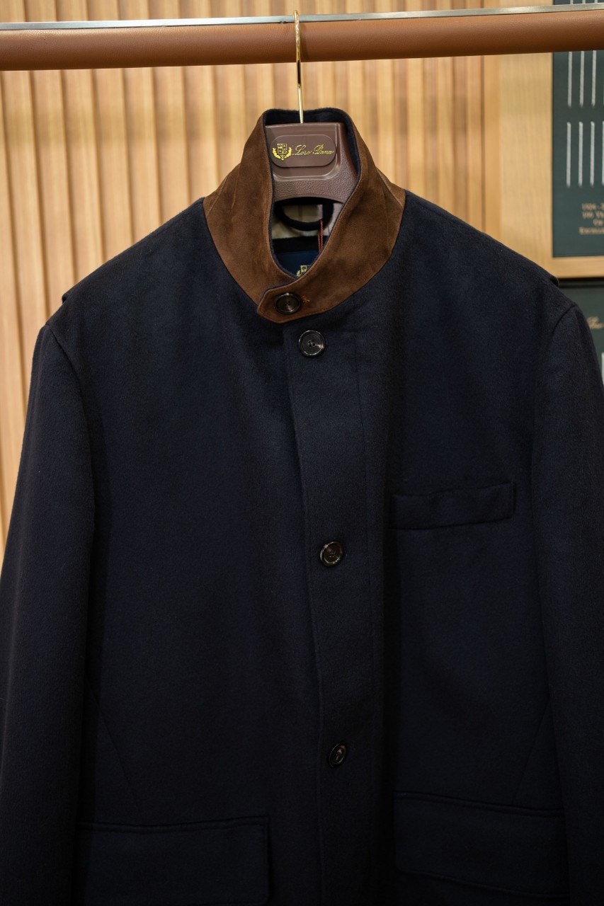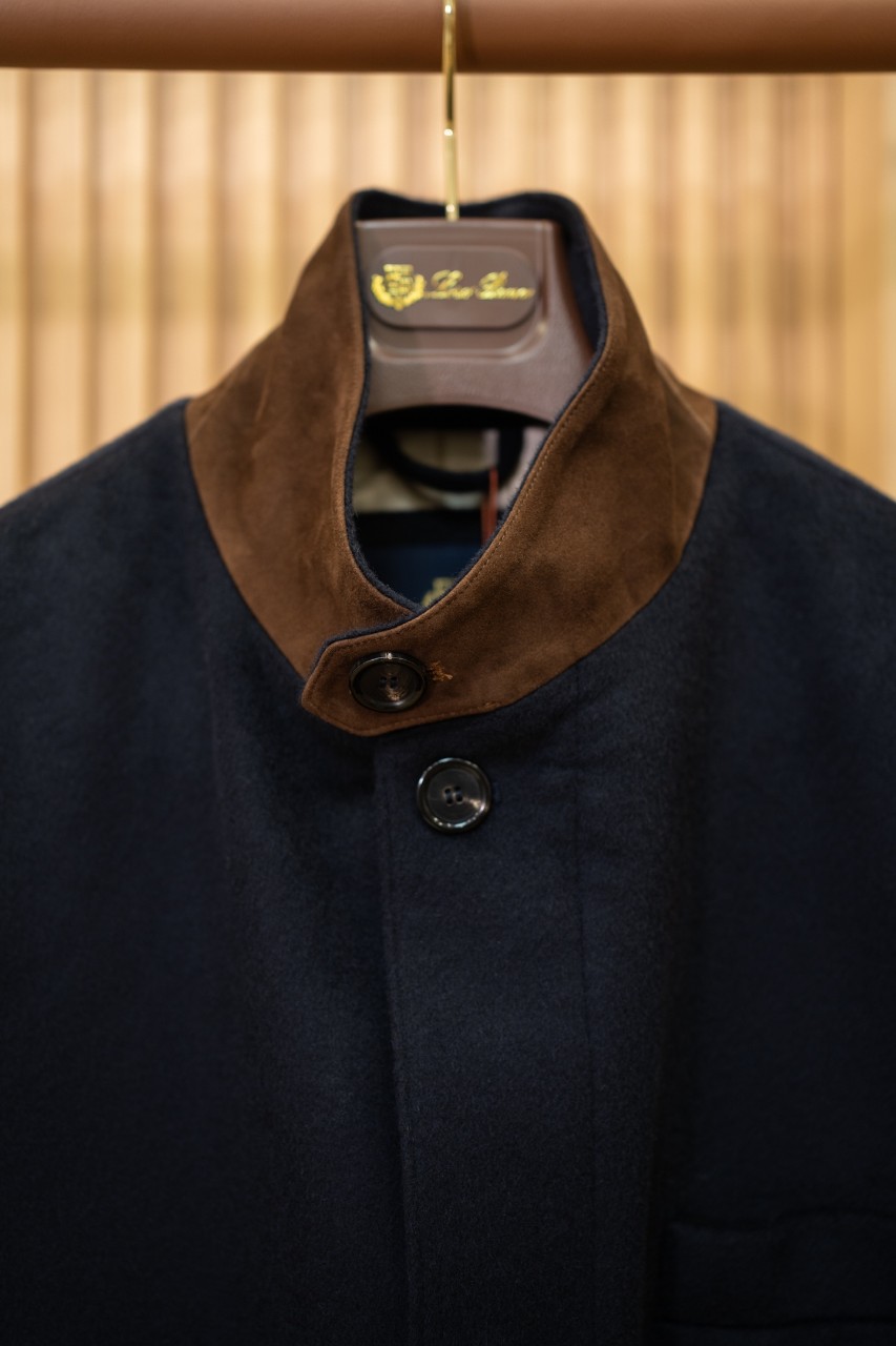 로로피아나 남성 캐시미어 스웨이드 레더 디테일 코트