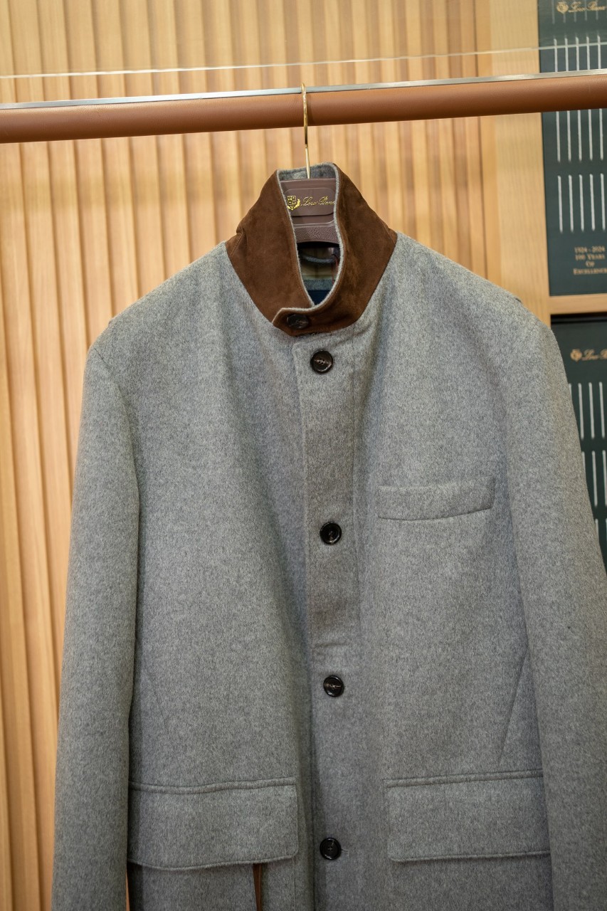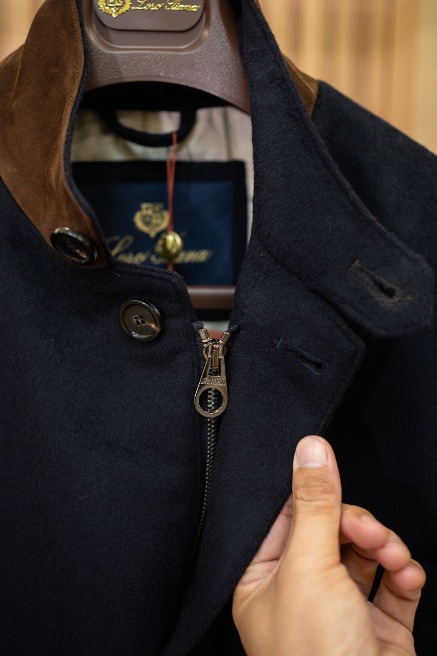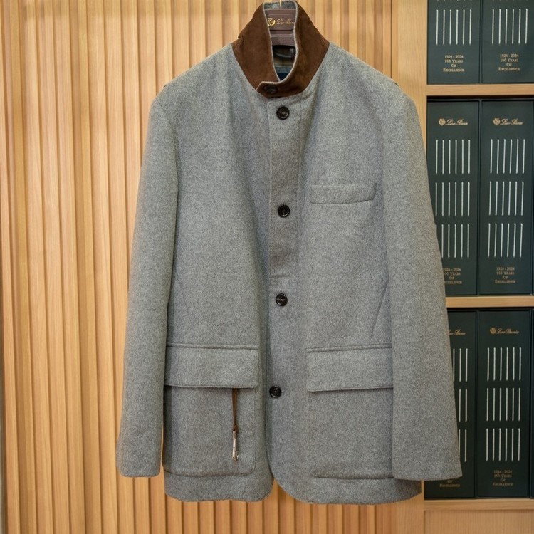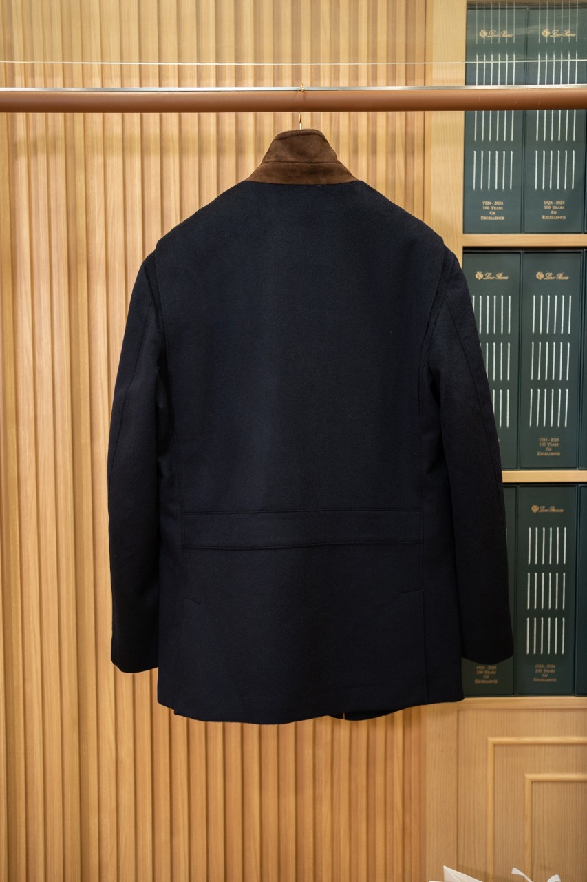 로로피아나 남성 캐시미어 스웨이드 레더 디테일 코트
