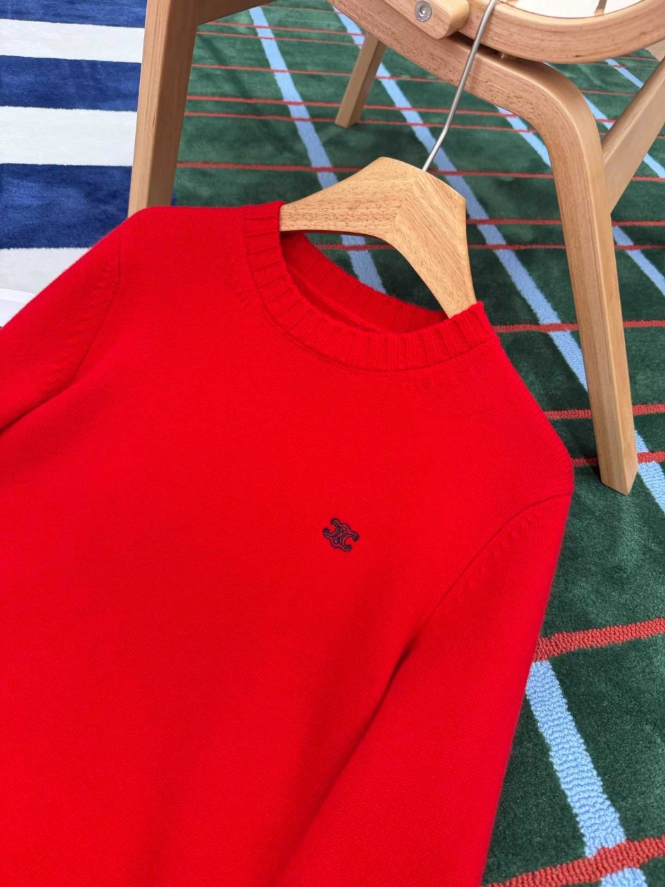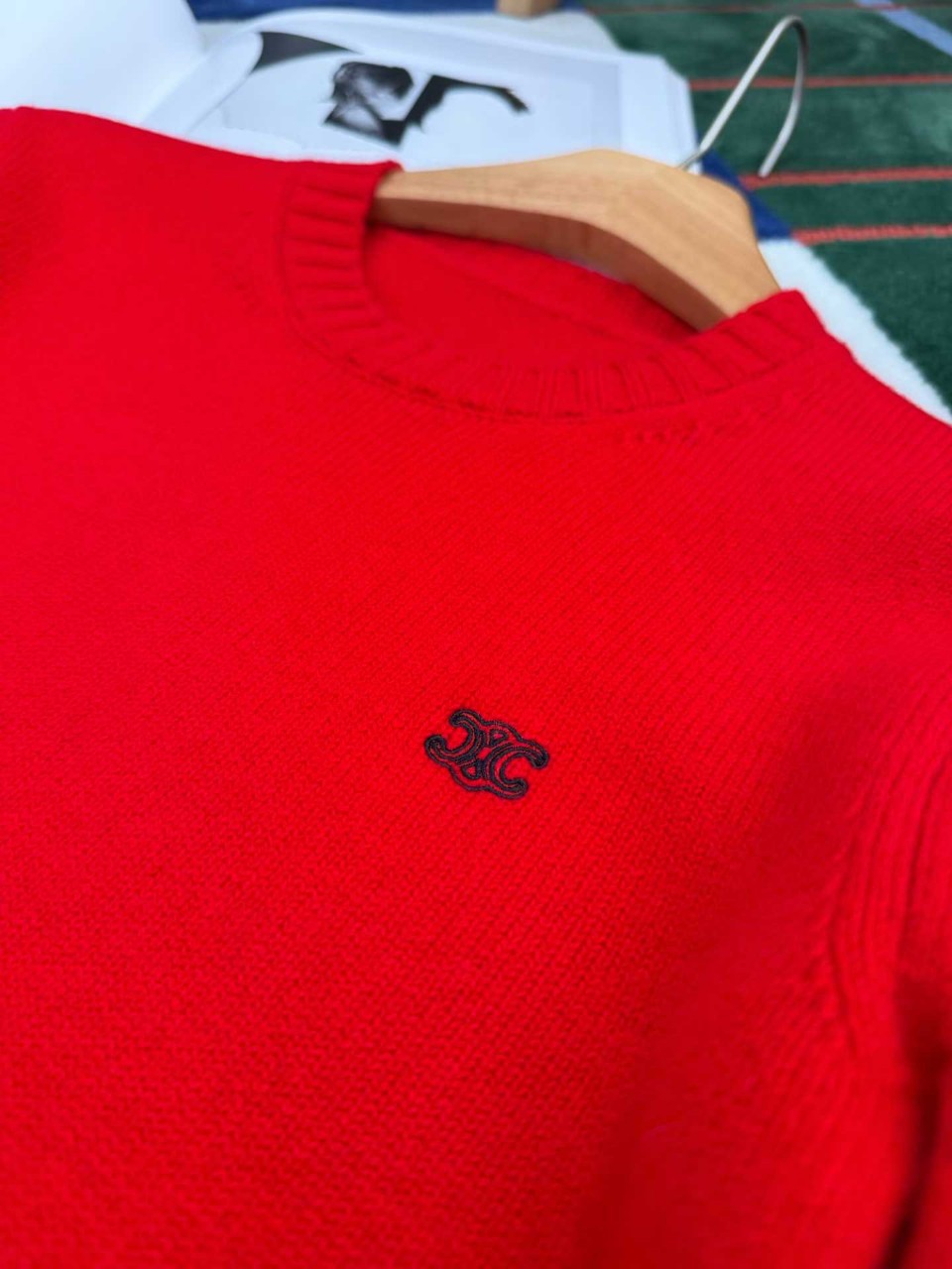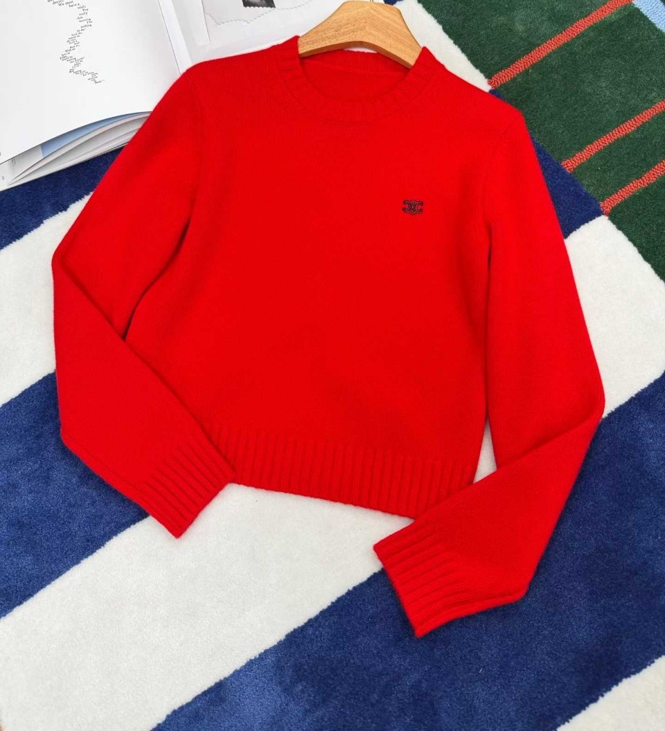 셀린느 트리옹프 자수 라운드넥 니트