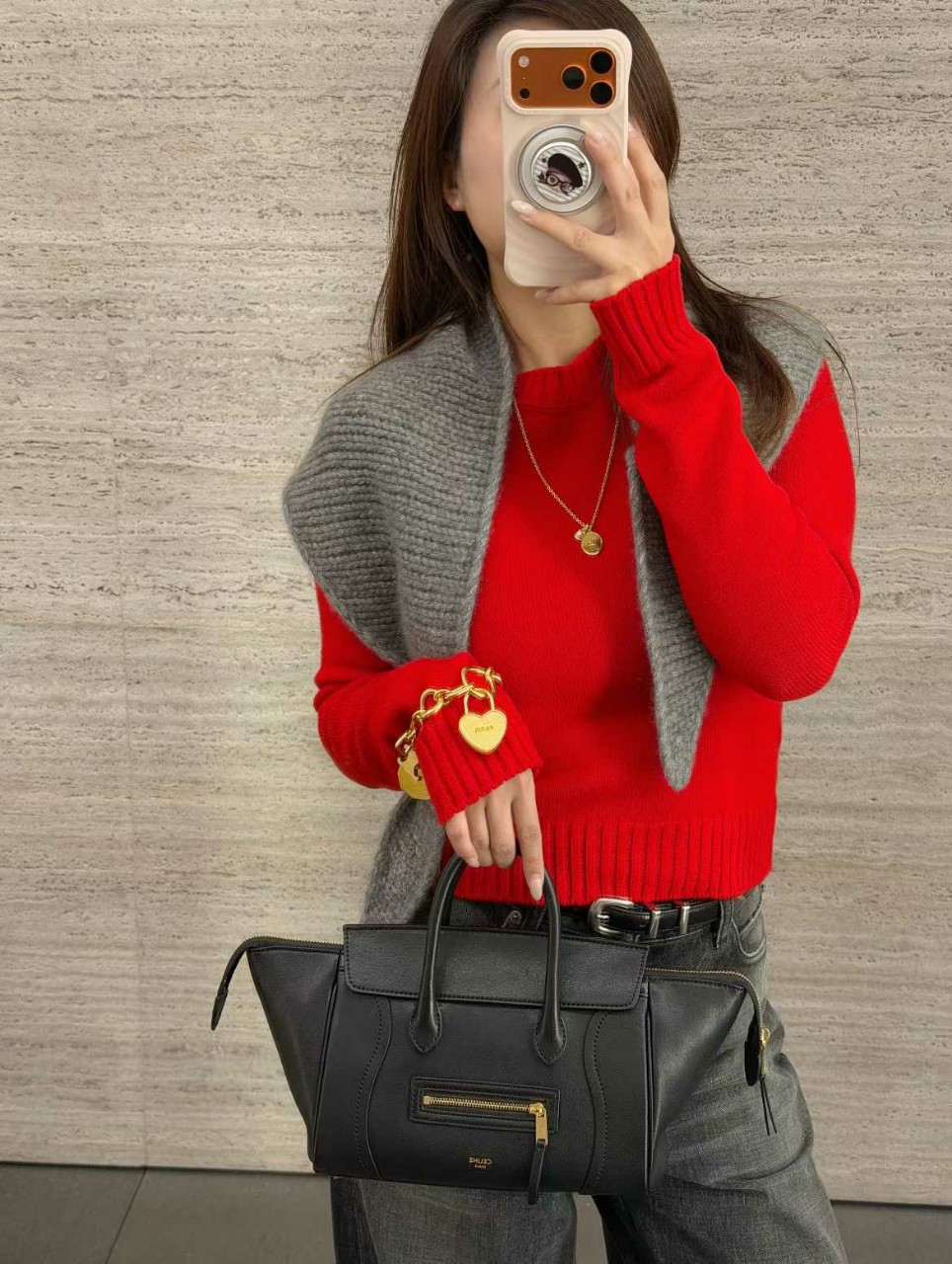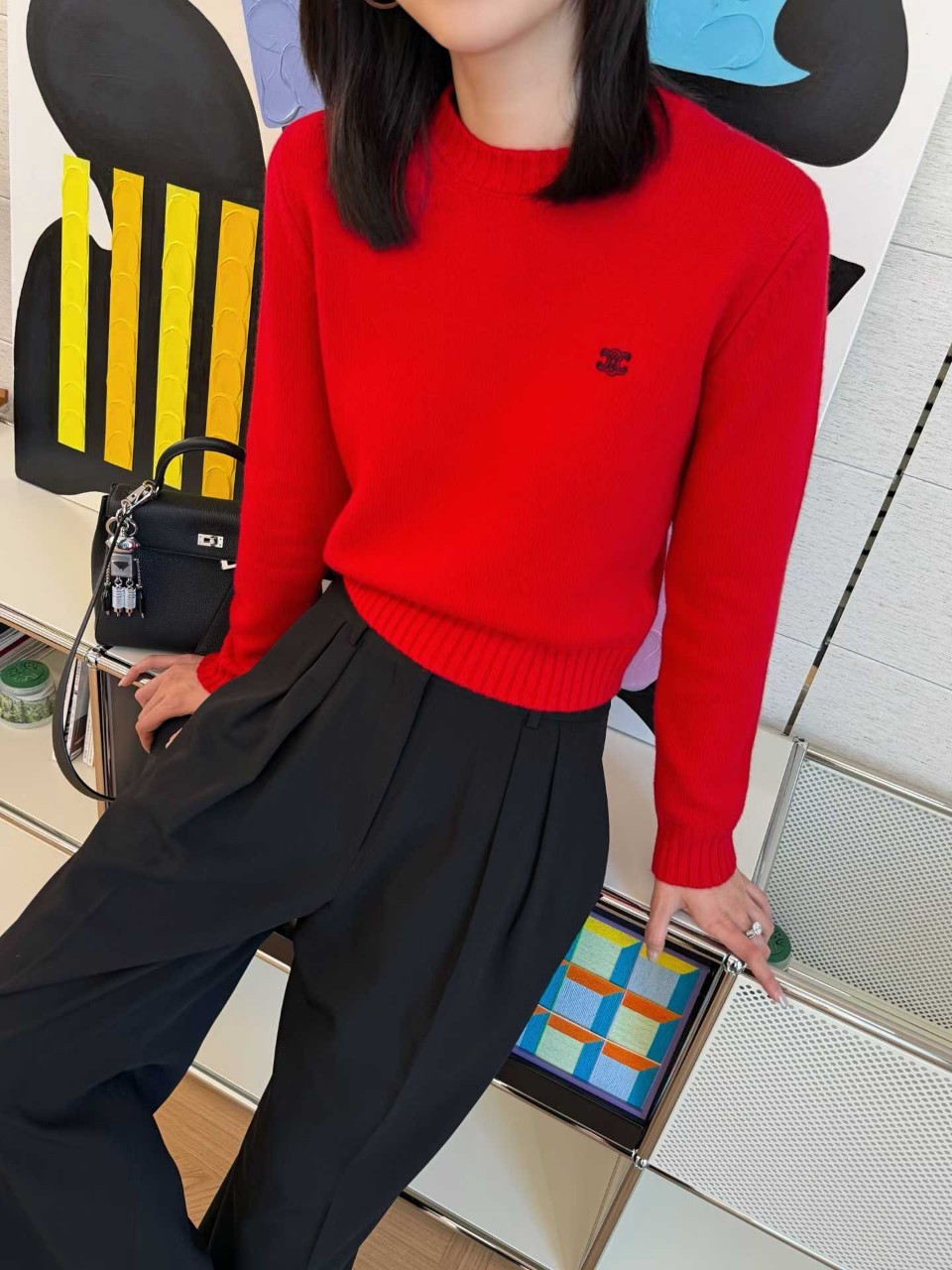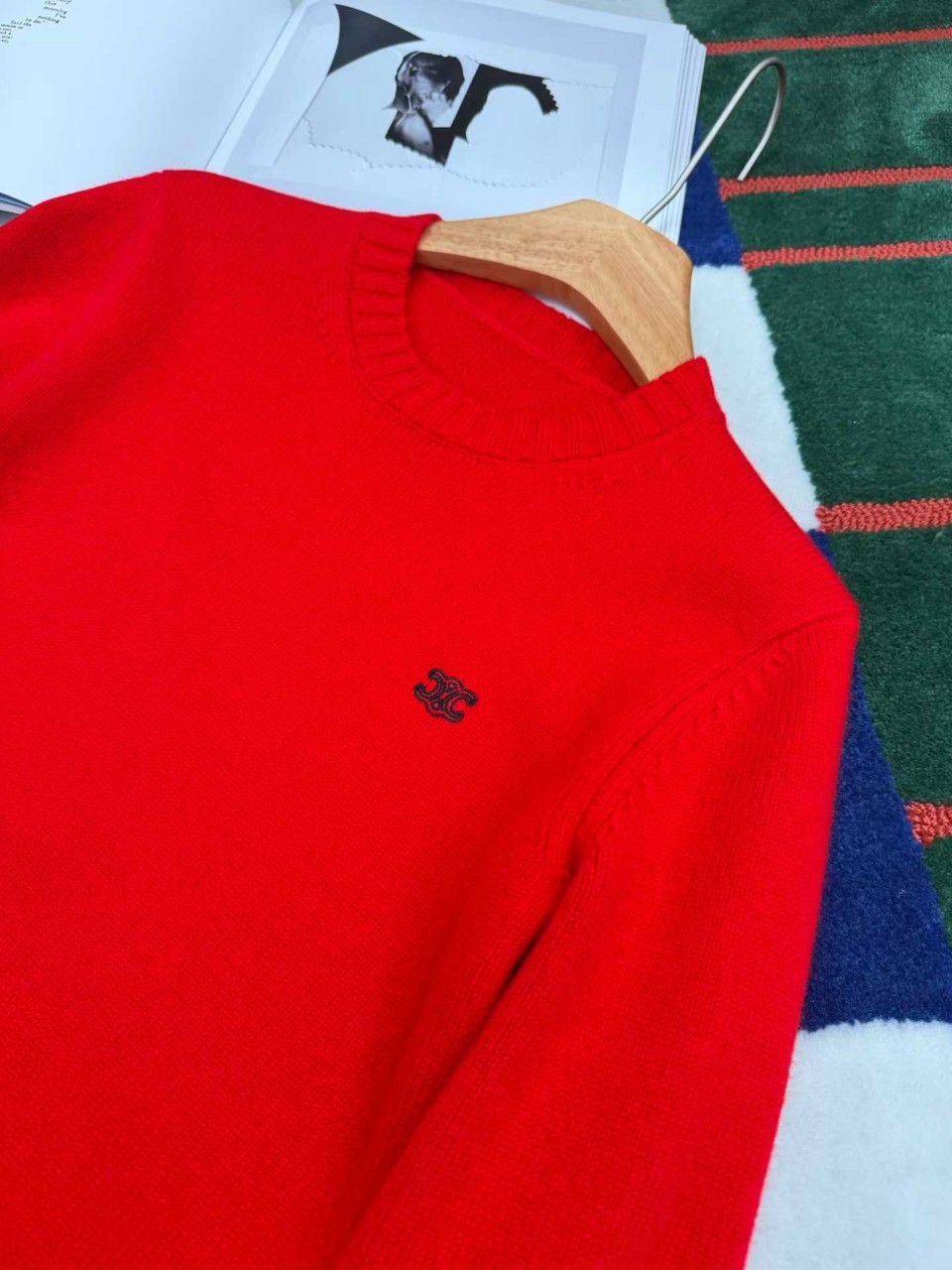 셀린느 트리옹프 자수 라운드넥 니트
