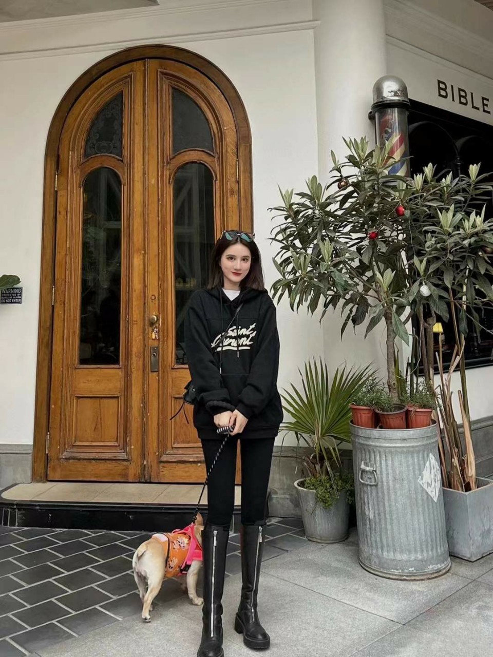 생로랑 프린트 후드