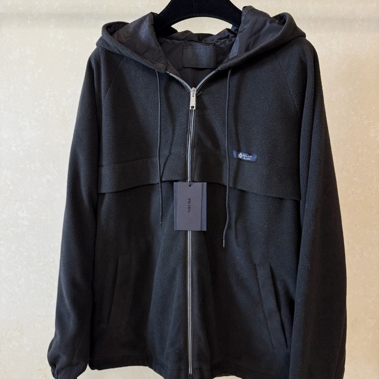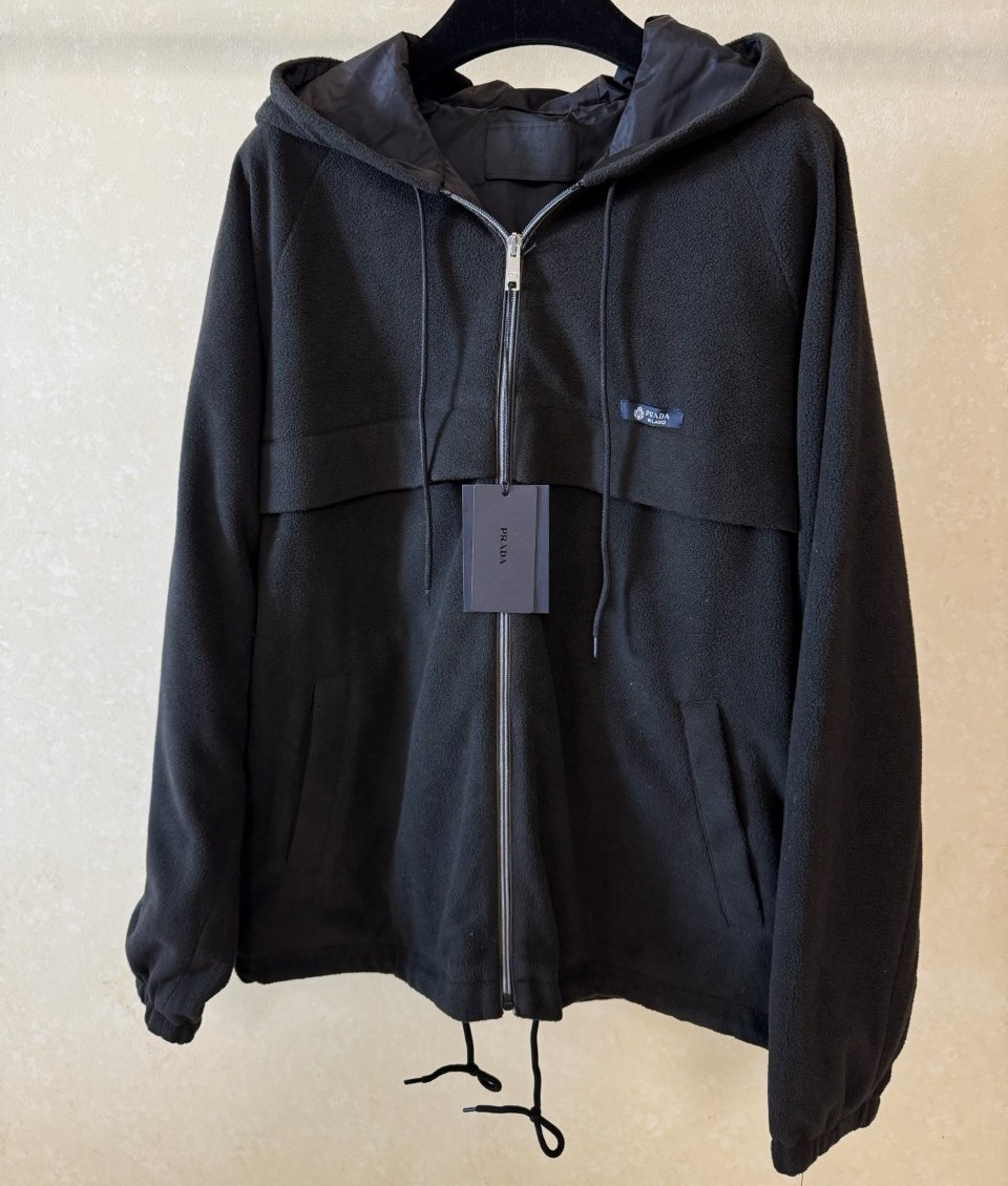 프라다 후드 테크니컬 패브릭 블루종 자켓