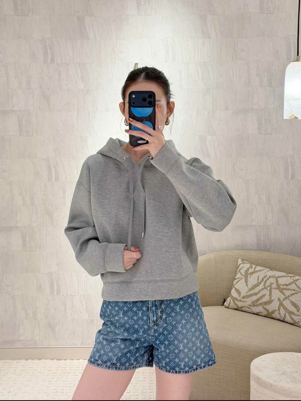 루이비통 시그니처 크롭 후디