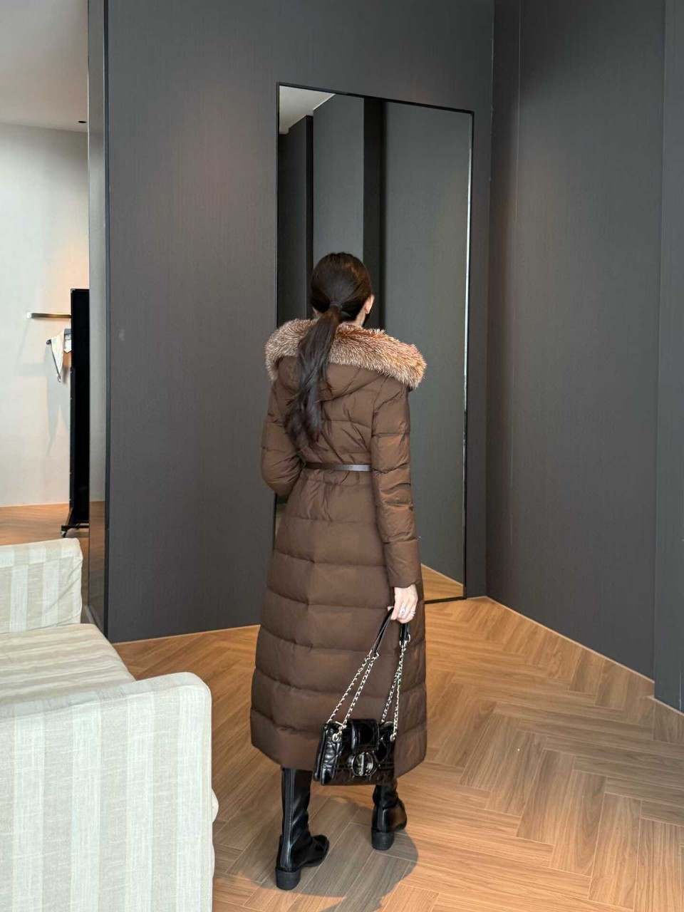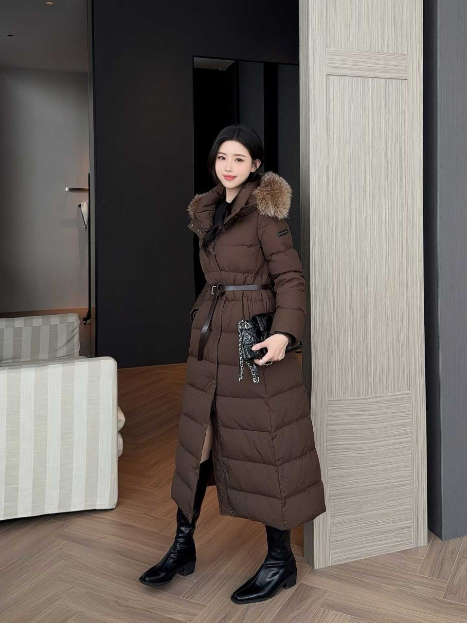 버버리 벨트 롱 다운 푸퍼 코트