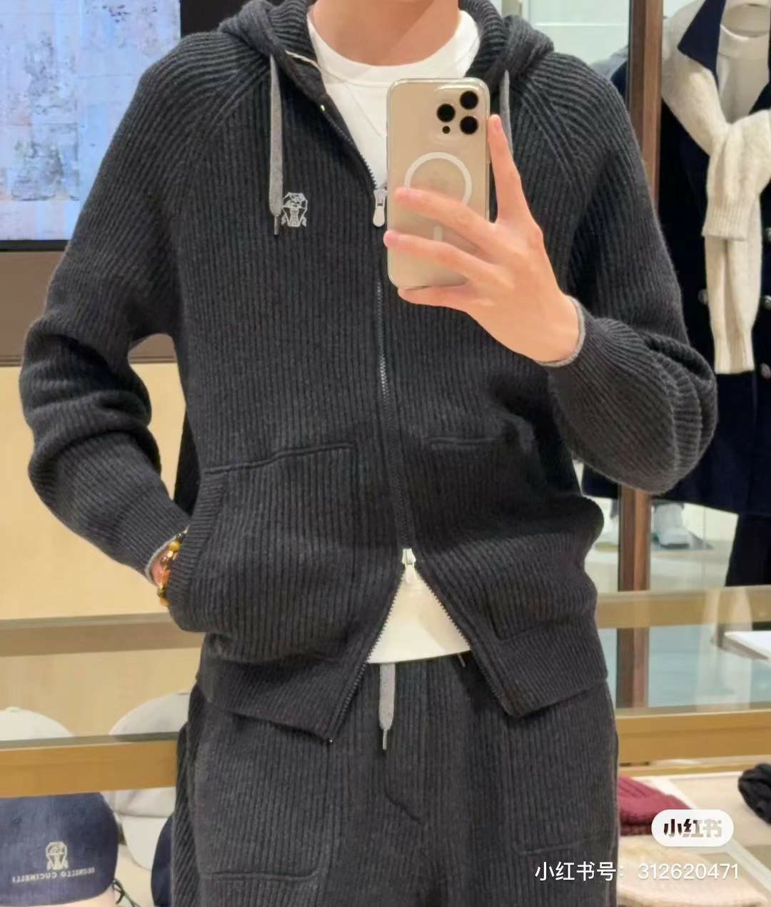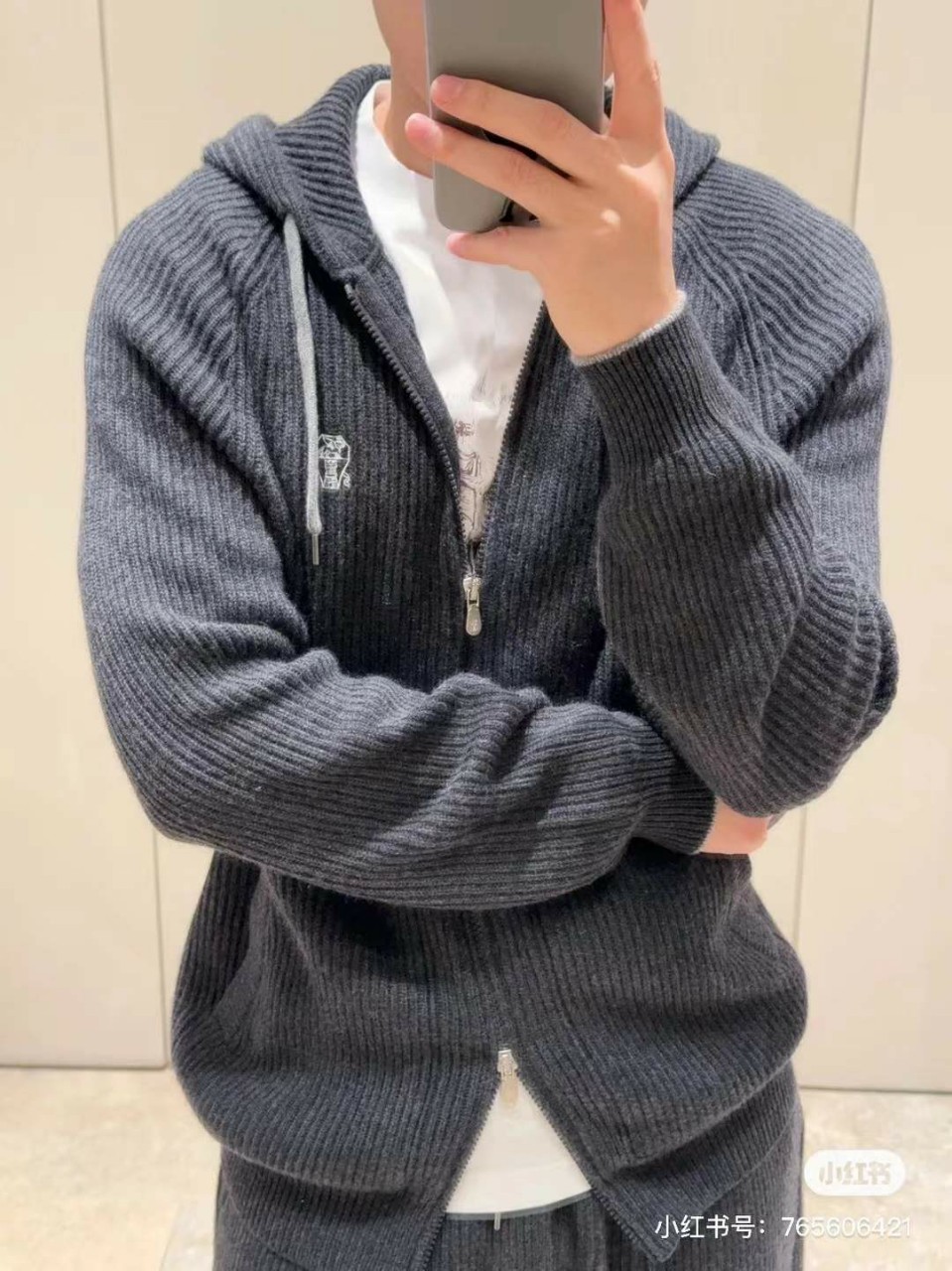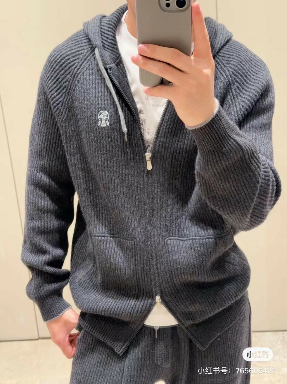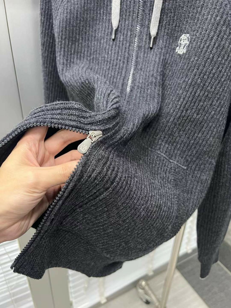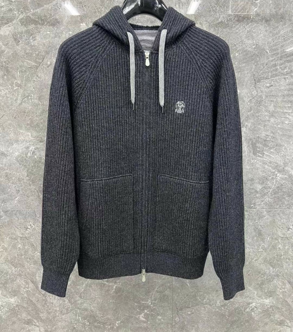 브루넬로쿠치넬리 자수 캐시미어 투웨이 후드 집업