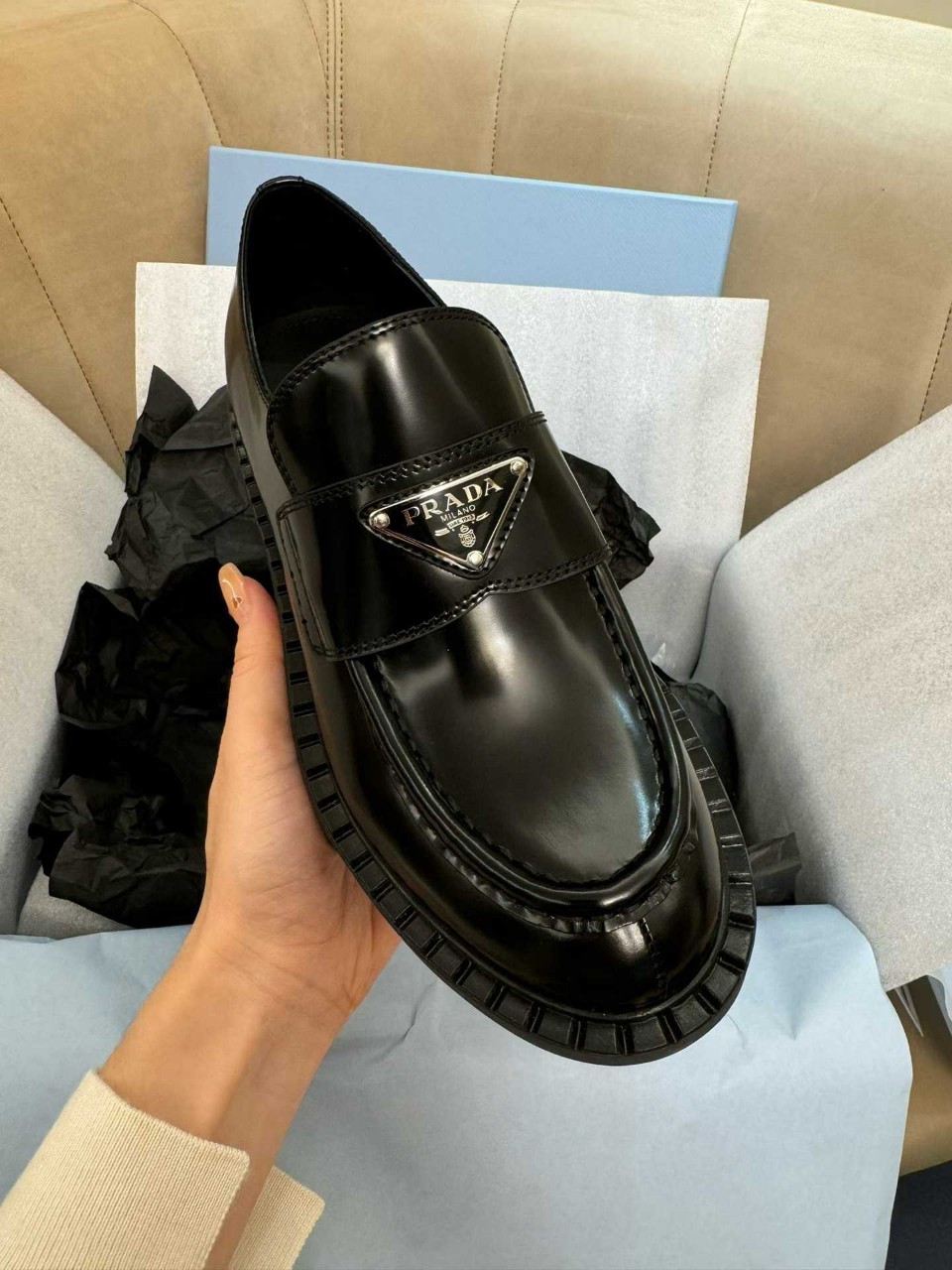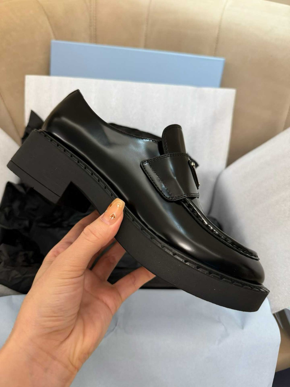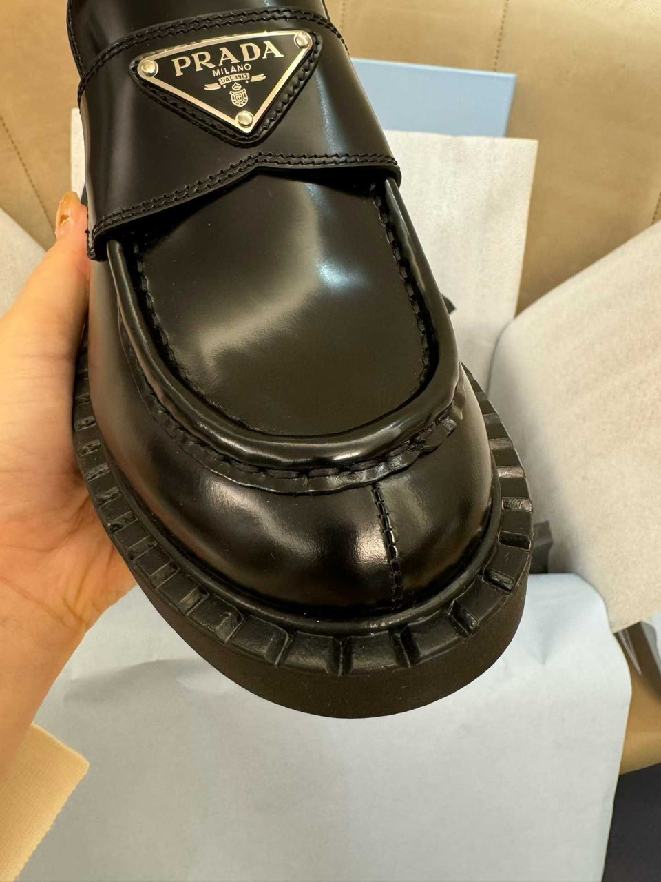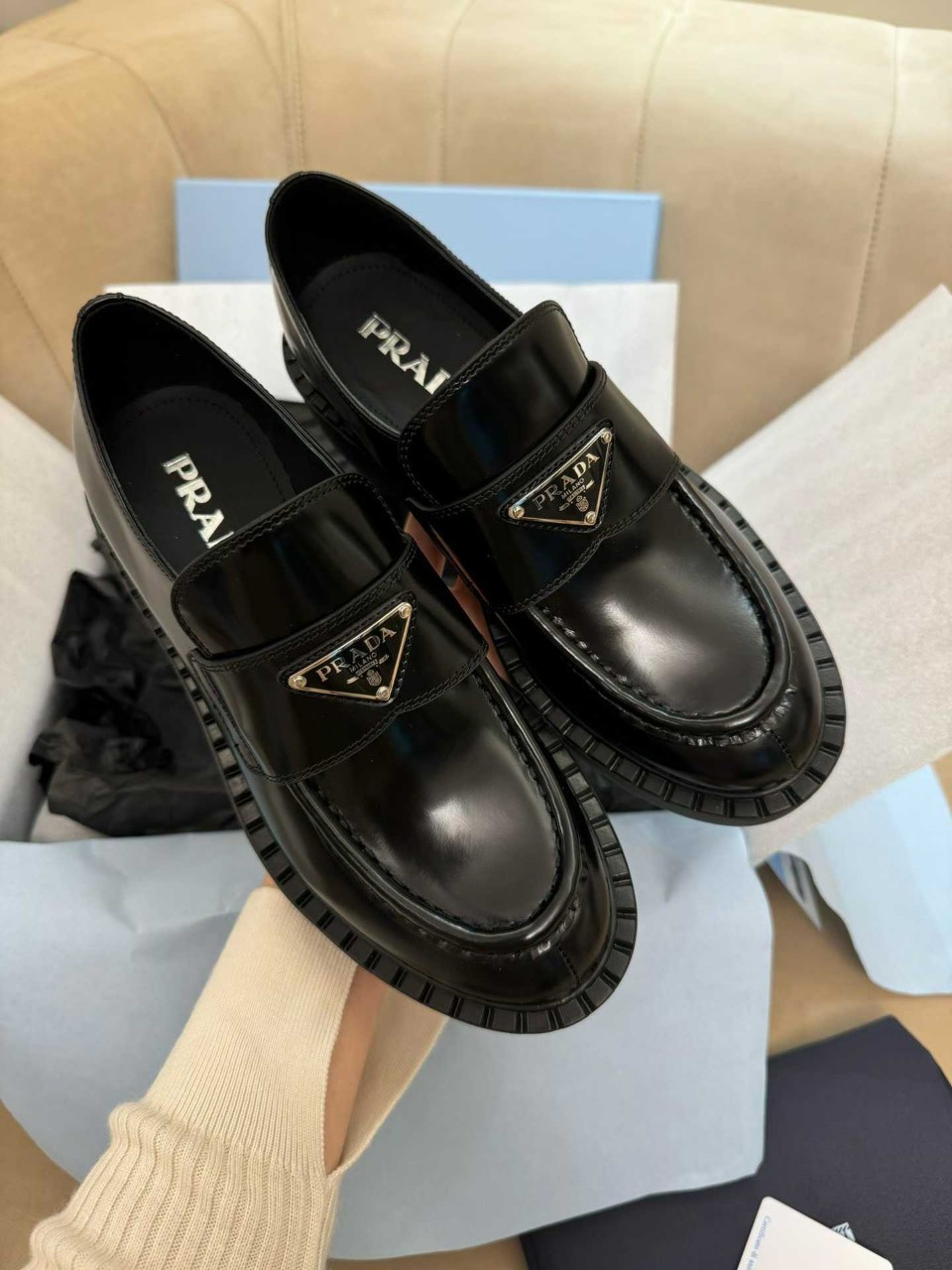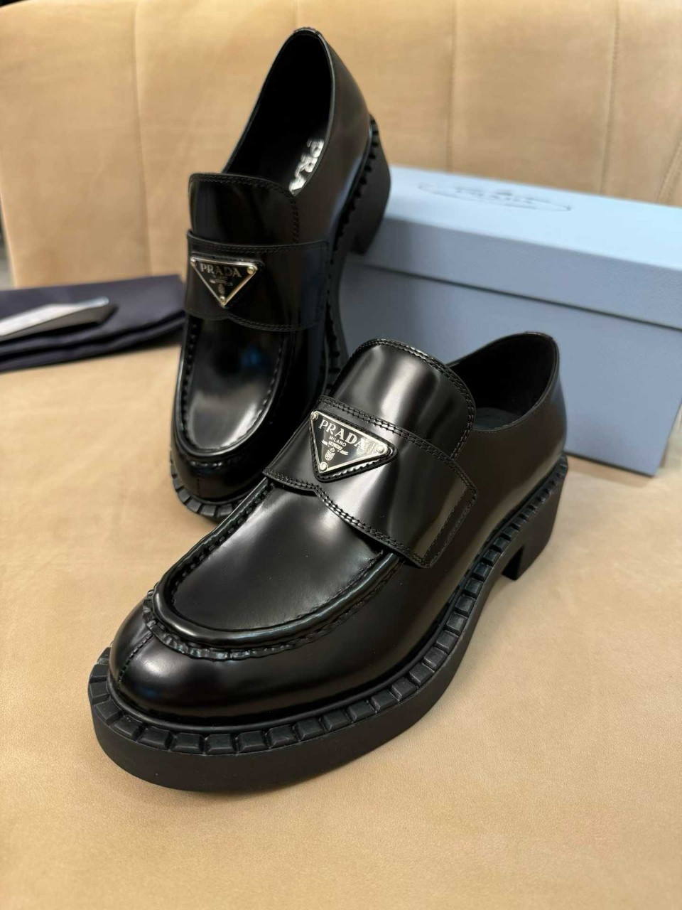 프라다 브러시드 로퍼