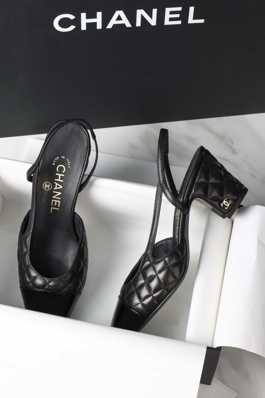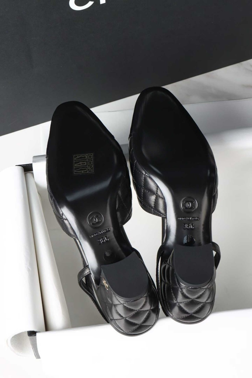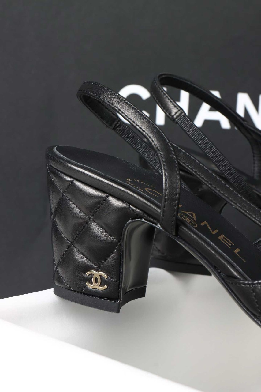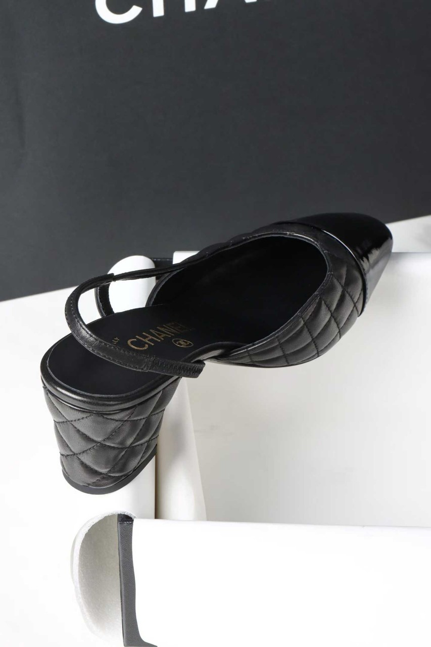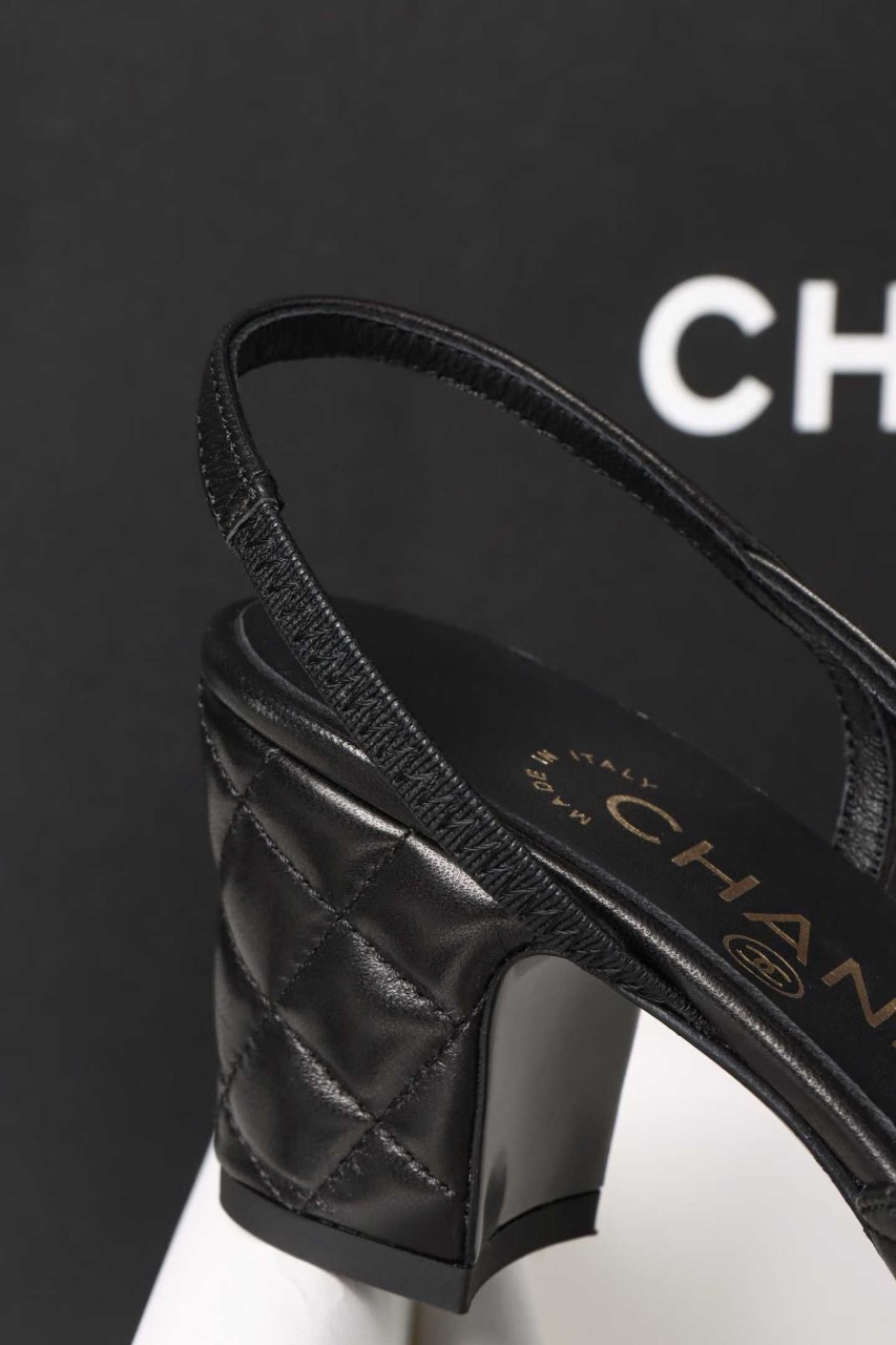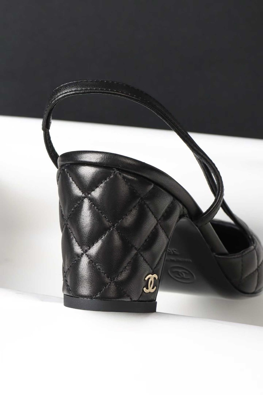 샤넬 퀼팅 미들 힐 슬링백