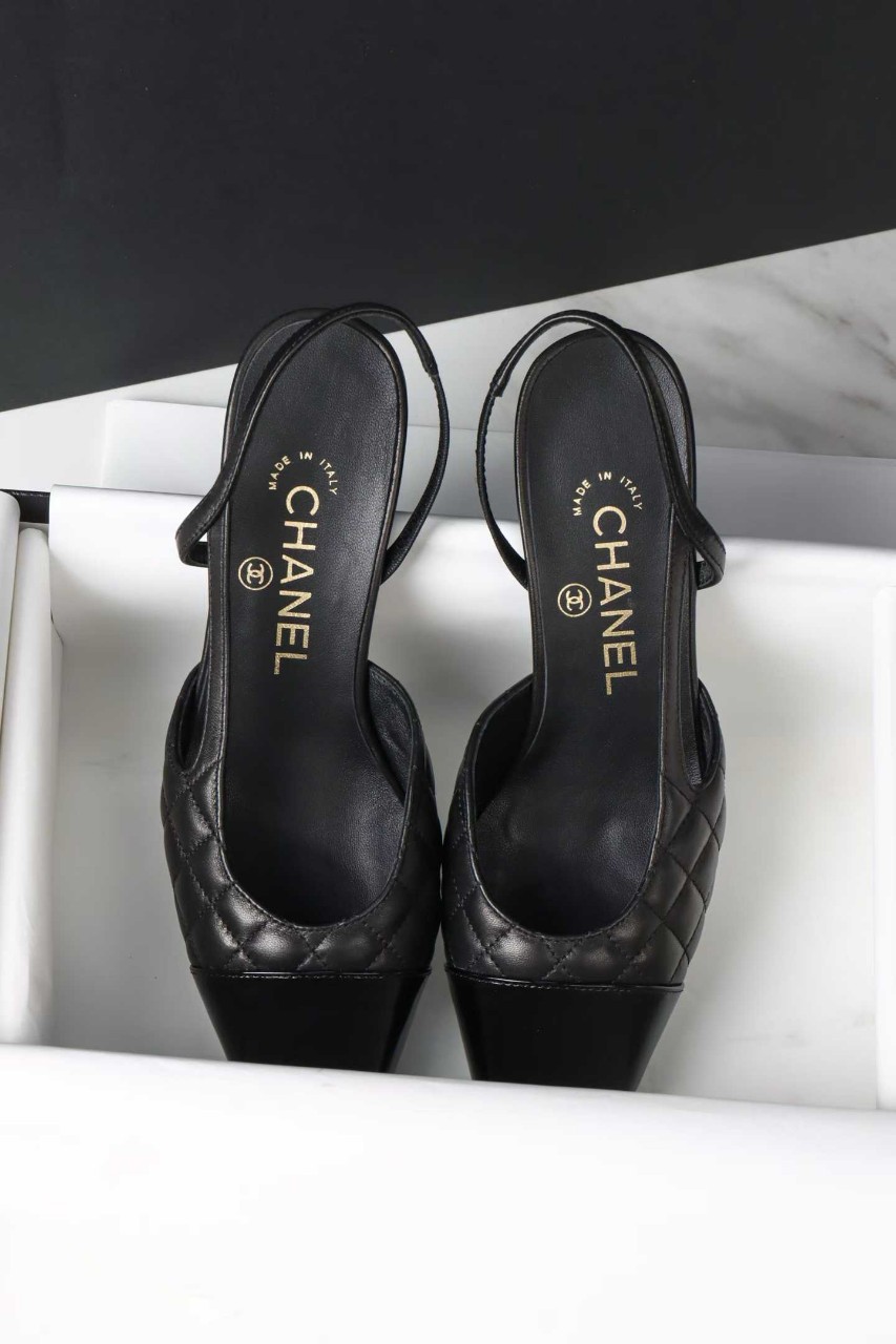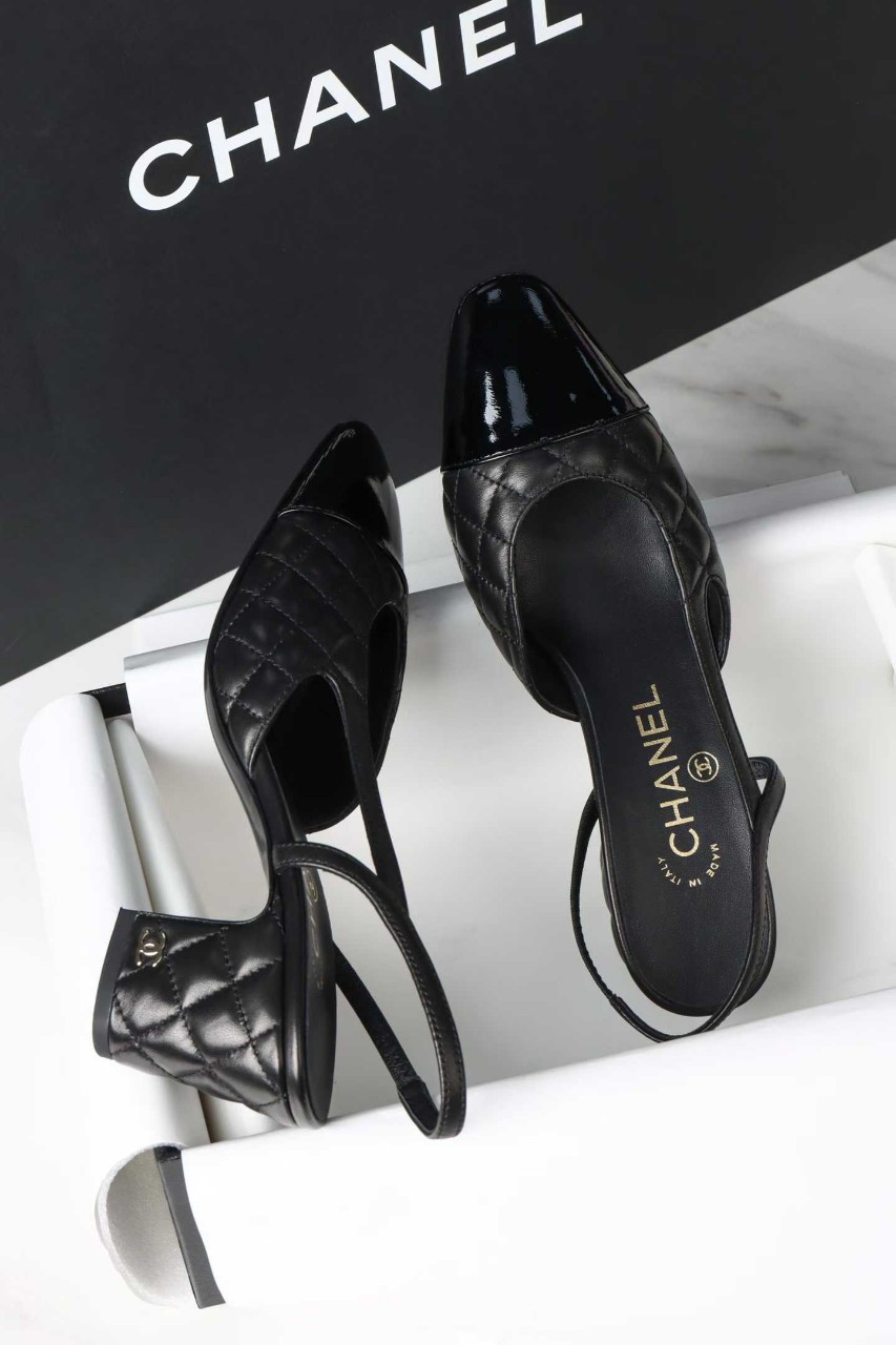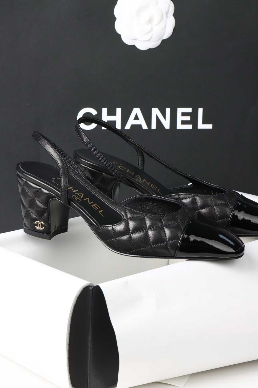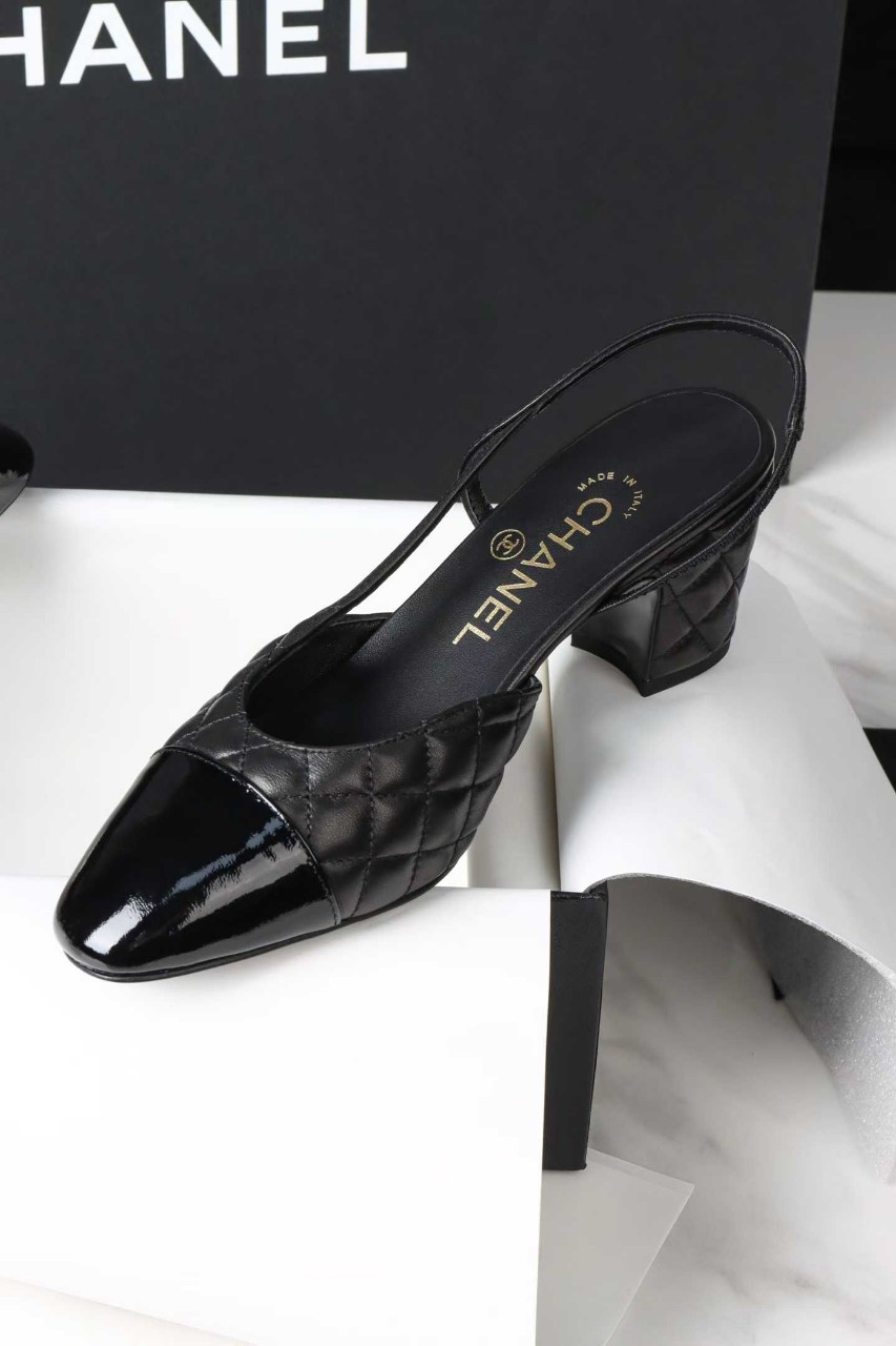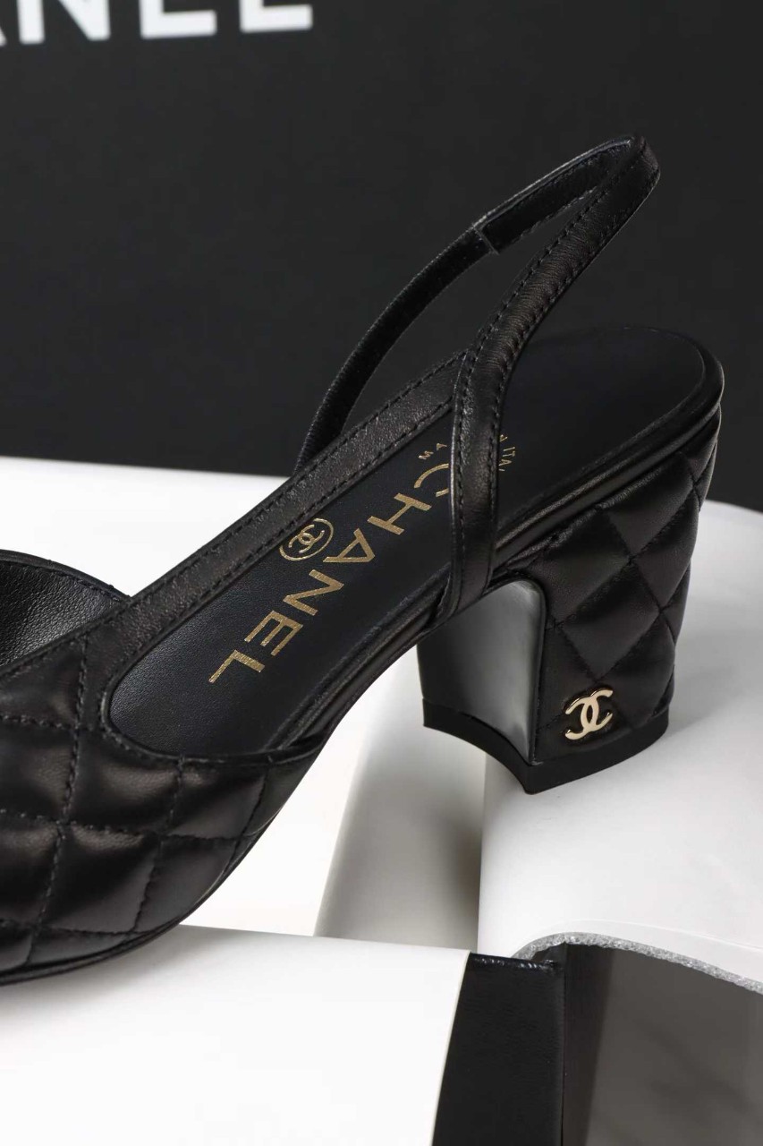 샤넬 퀼팅 미들 힐 슬링백