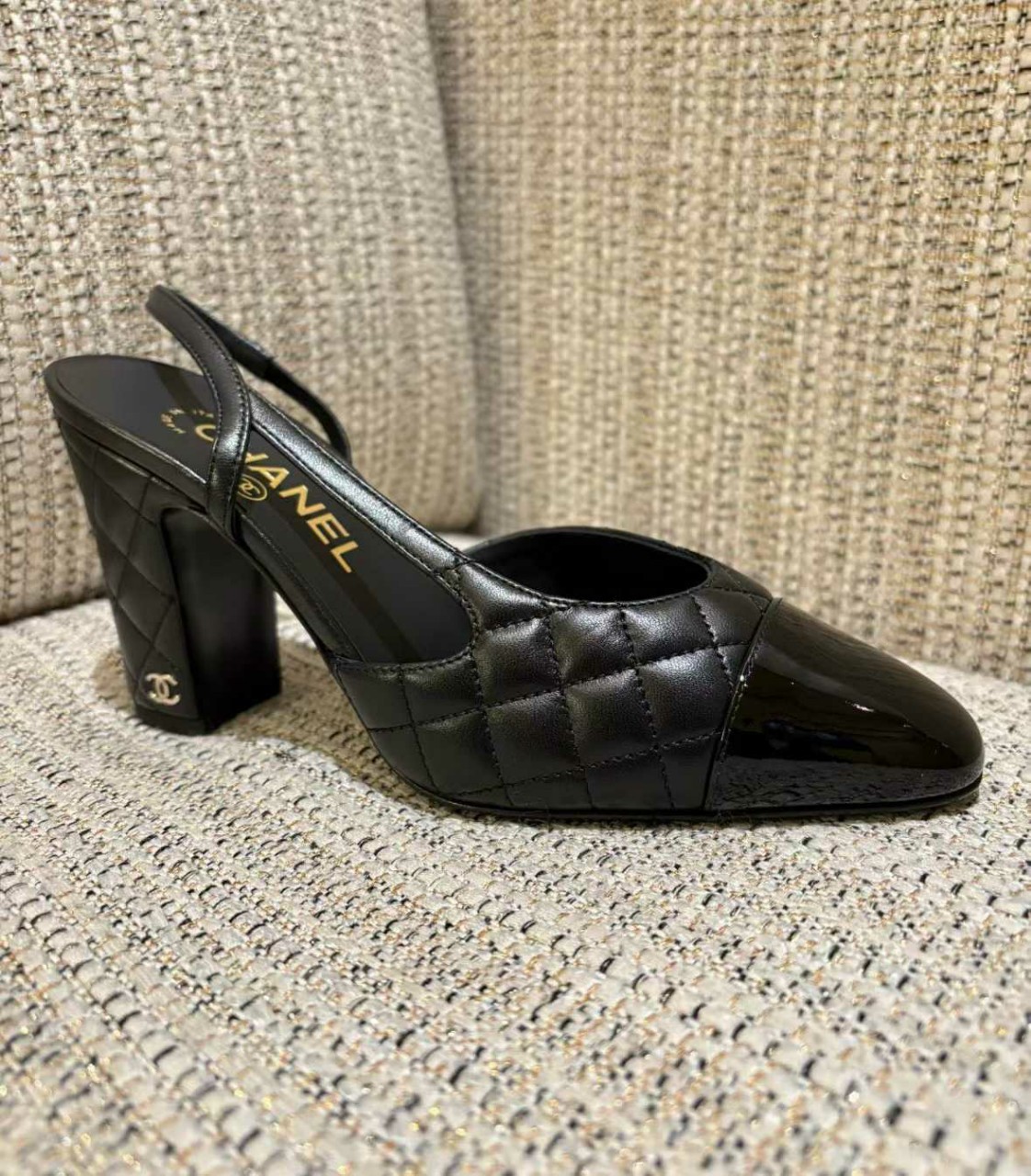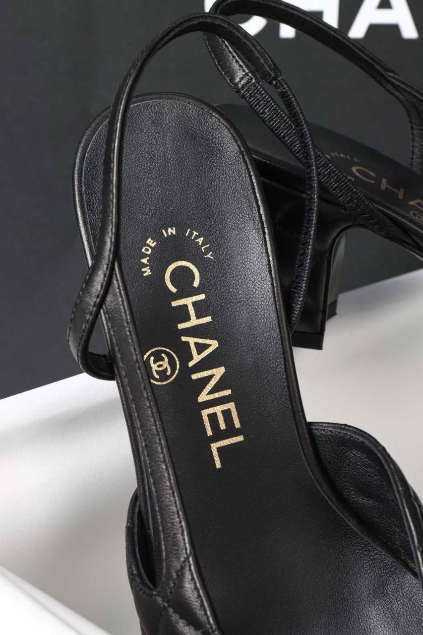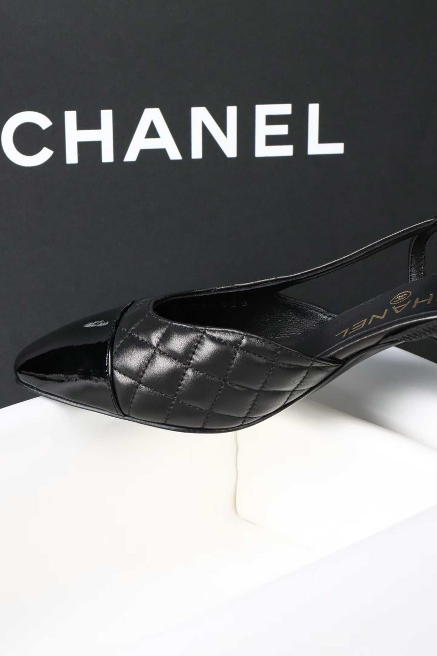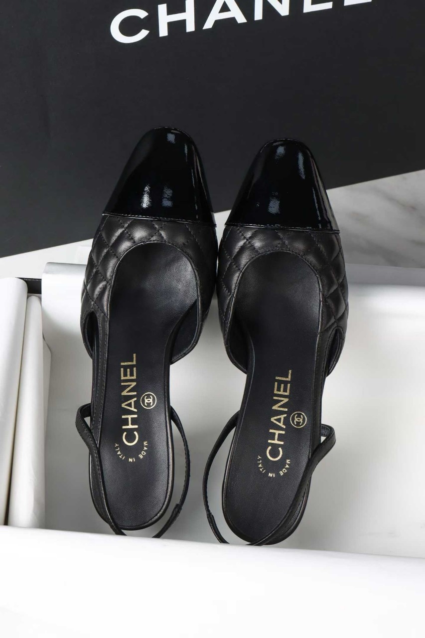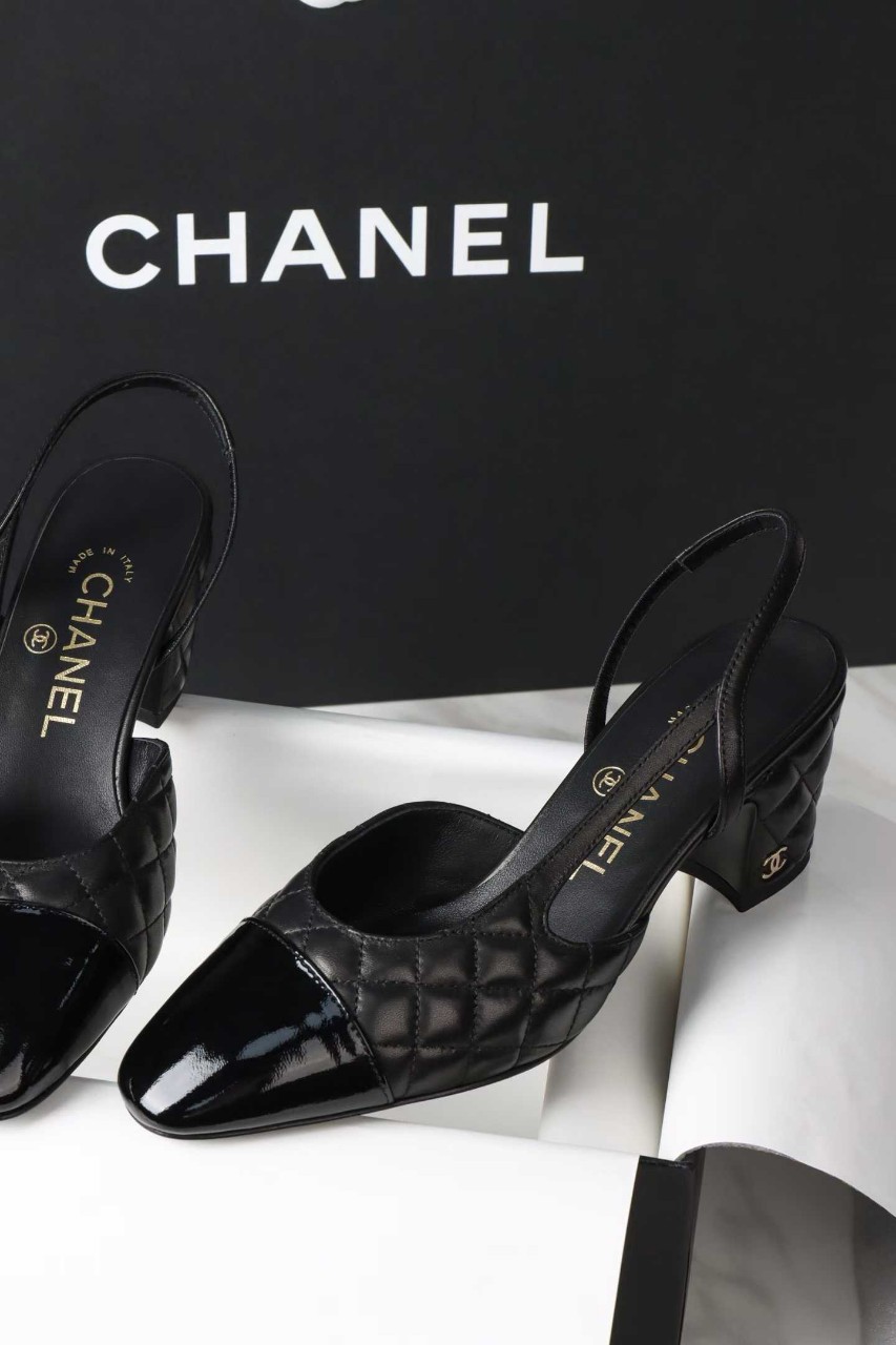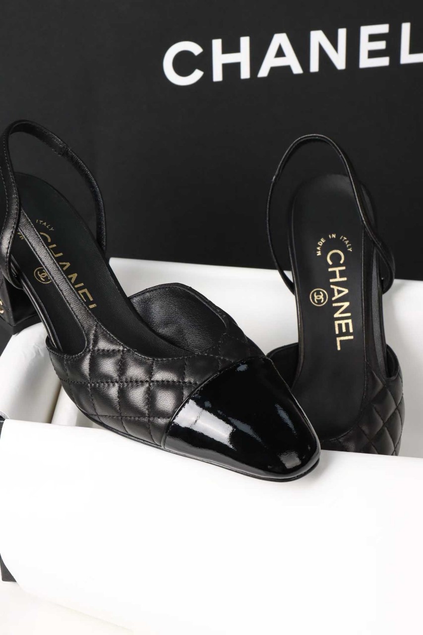 샤넬 퀼팅 미들 힐 슬링백
