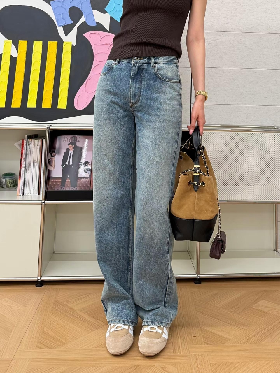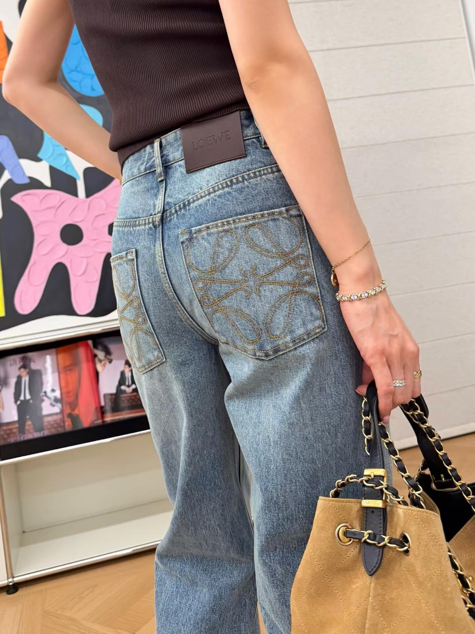 로에베 아나그램 워시드 데님 팬츠