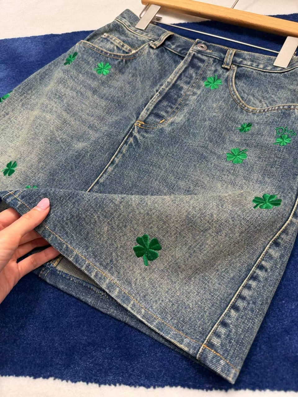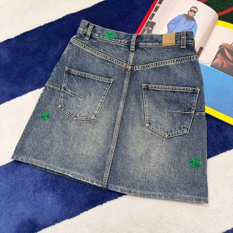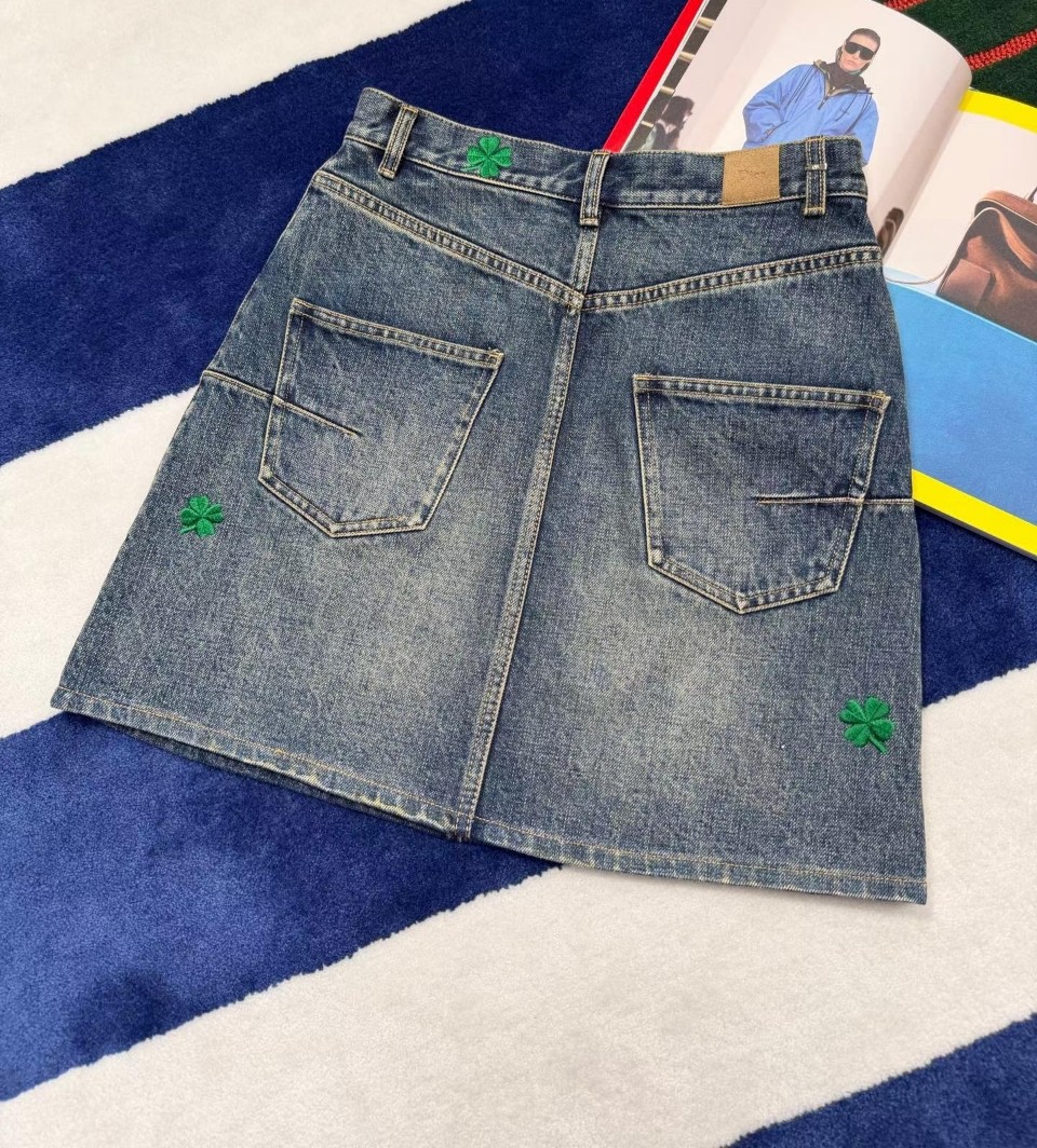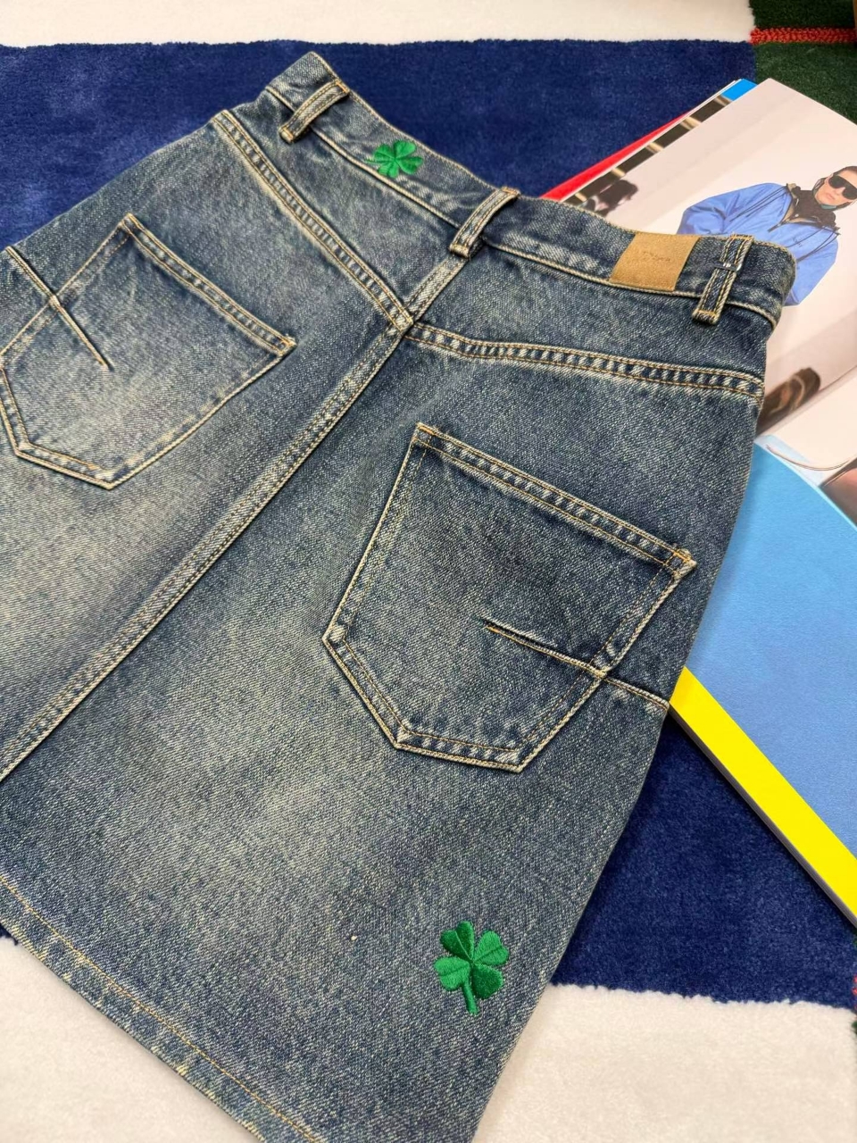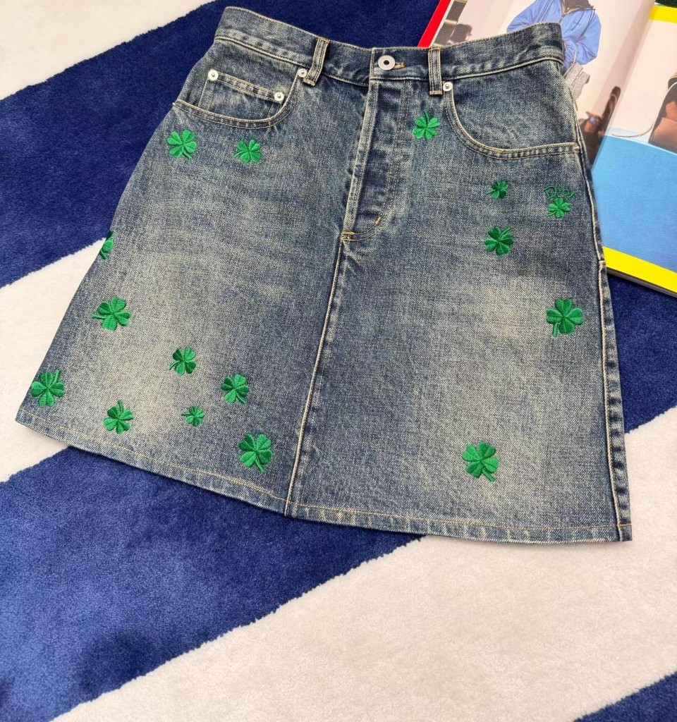 디올 클로버 모티브 데님 스커트