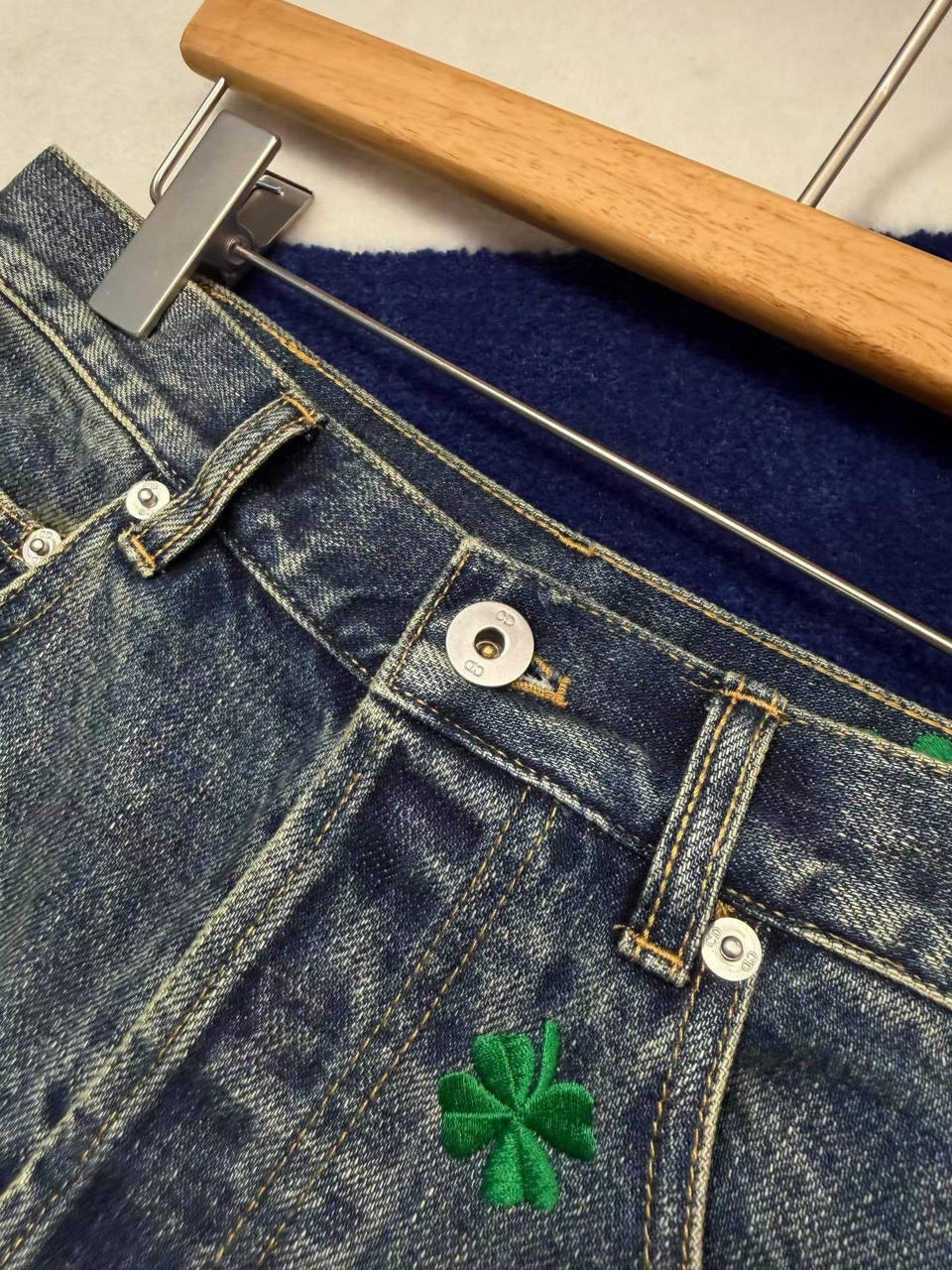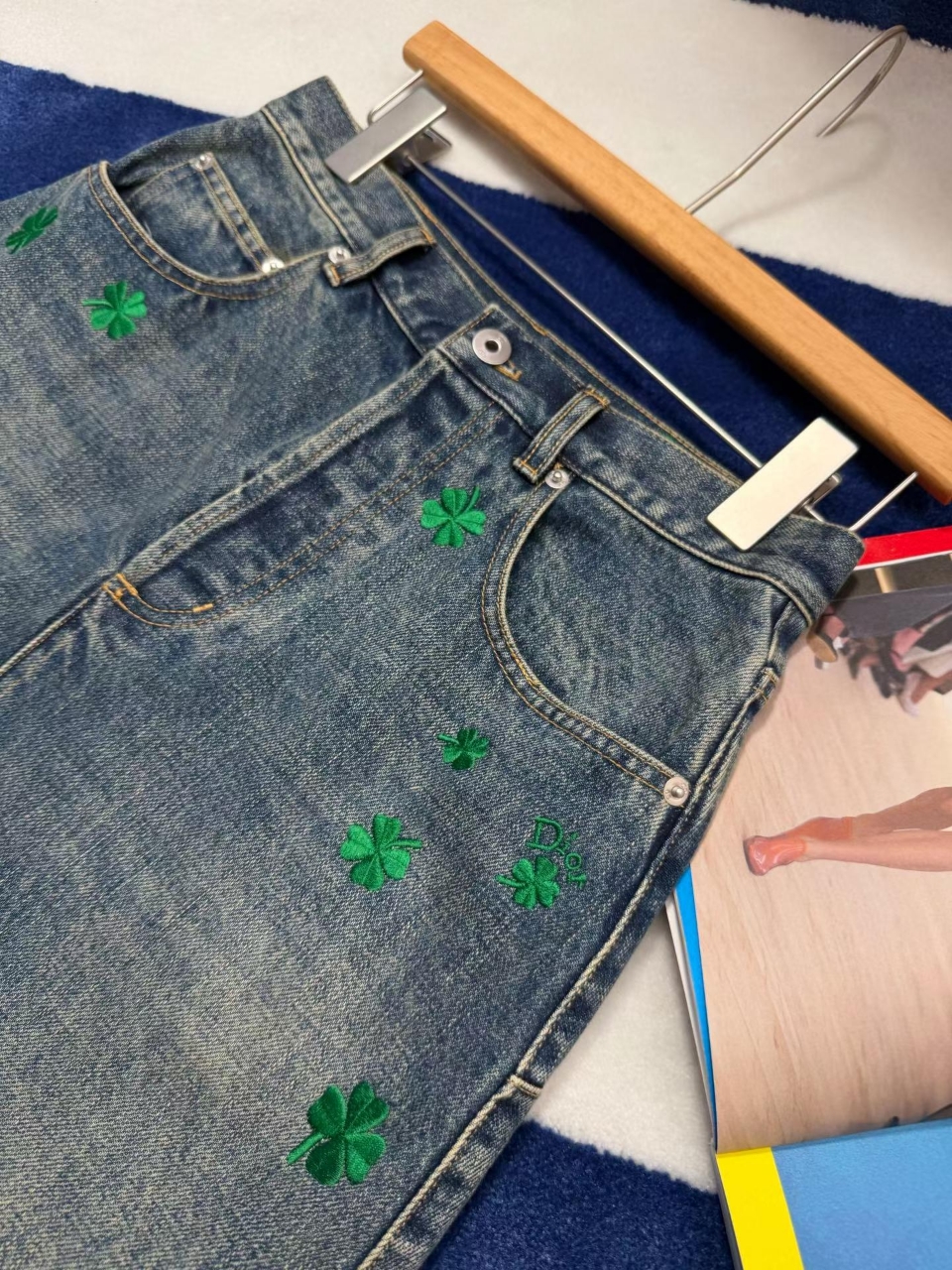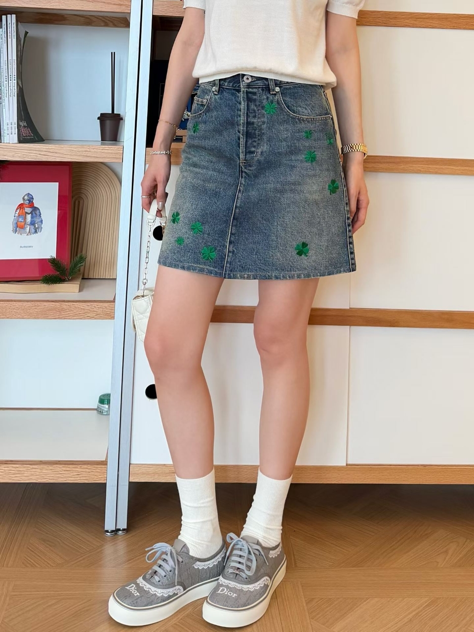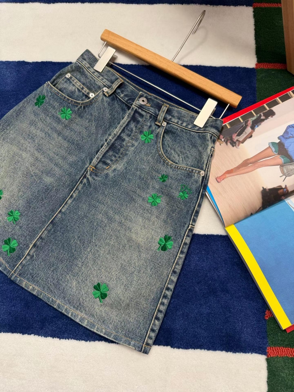 디올 클로버 모티브 데님 스커트