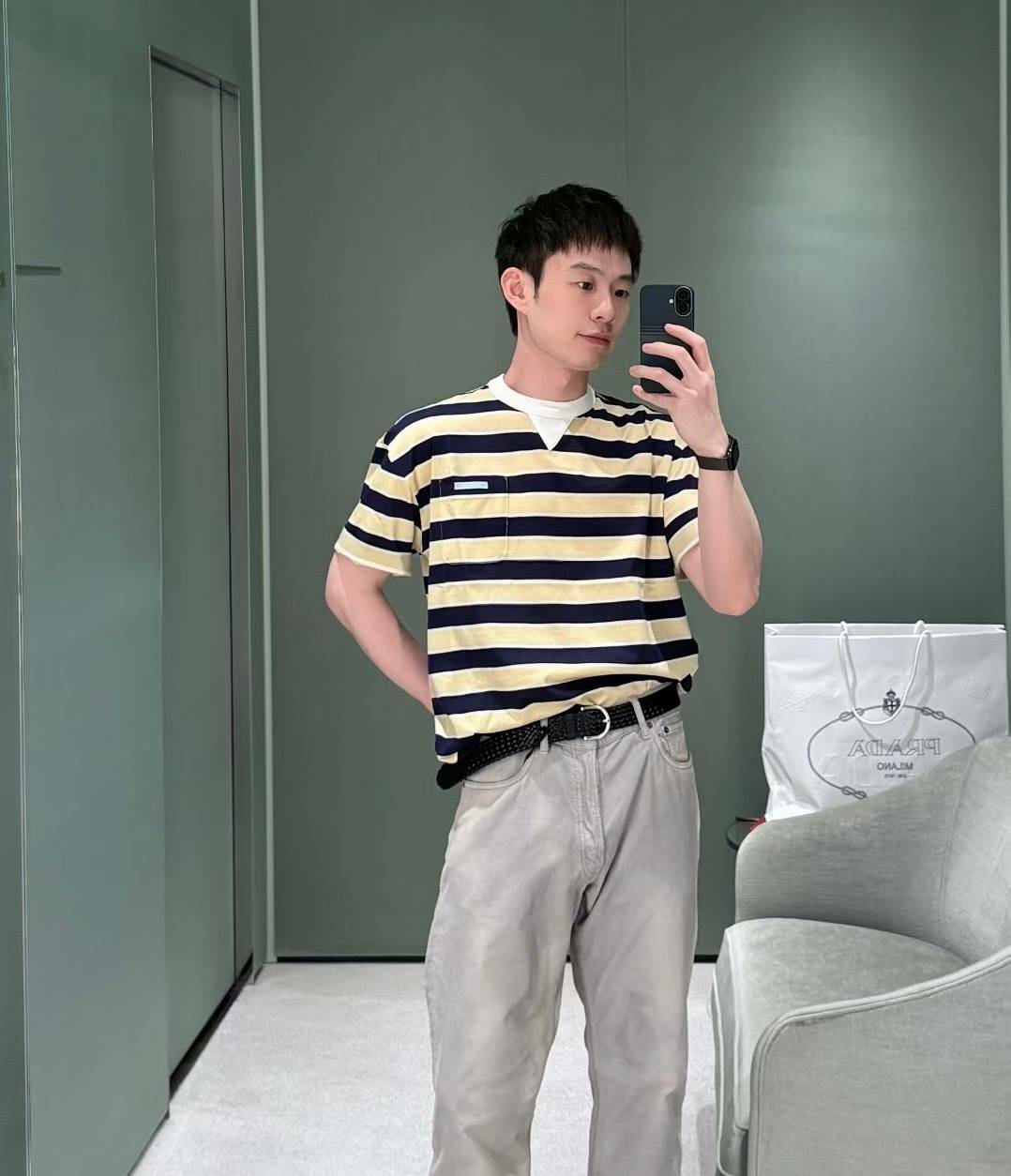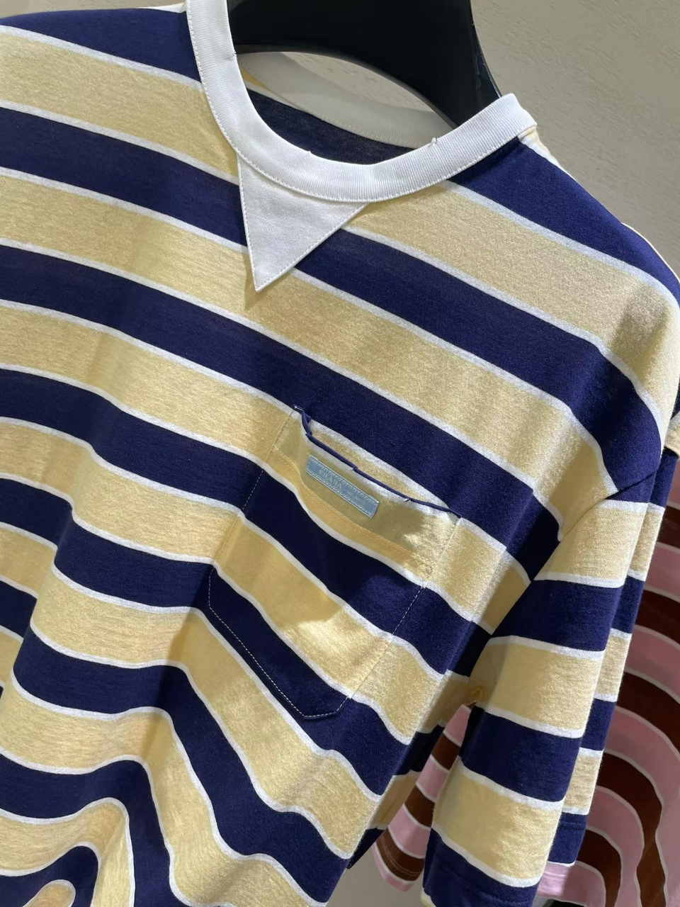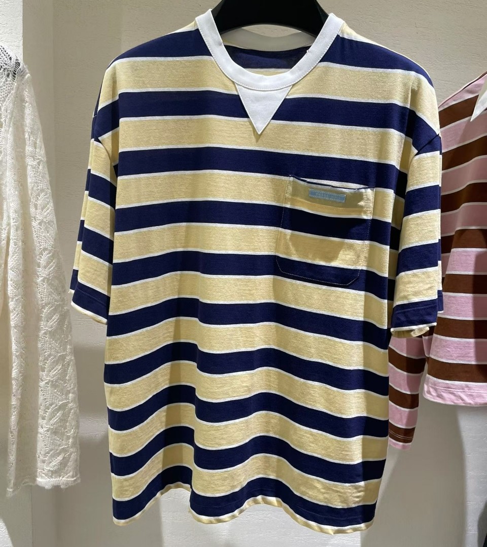 프라다 스트라이프 코튼 티셔츠