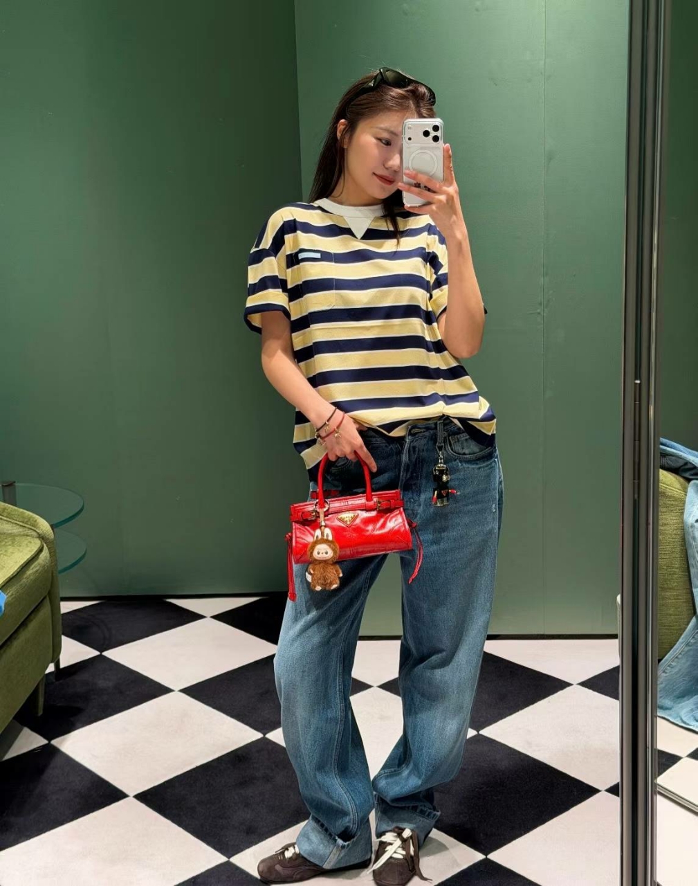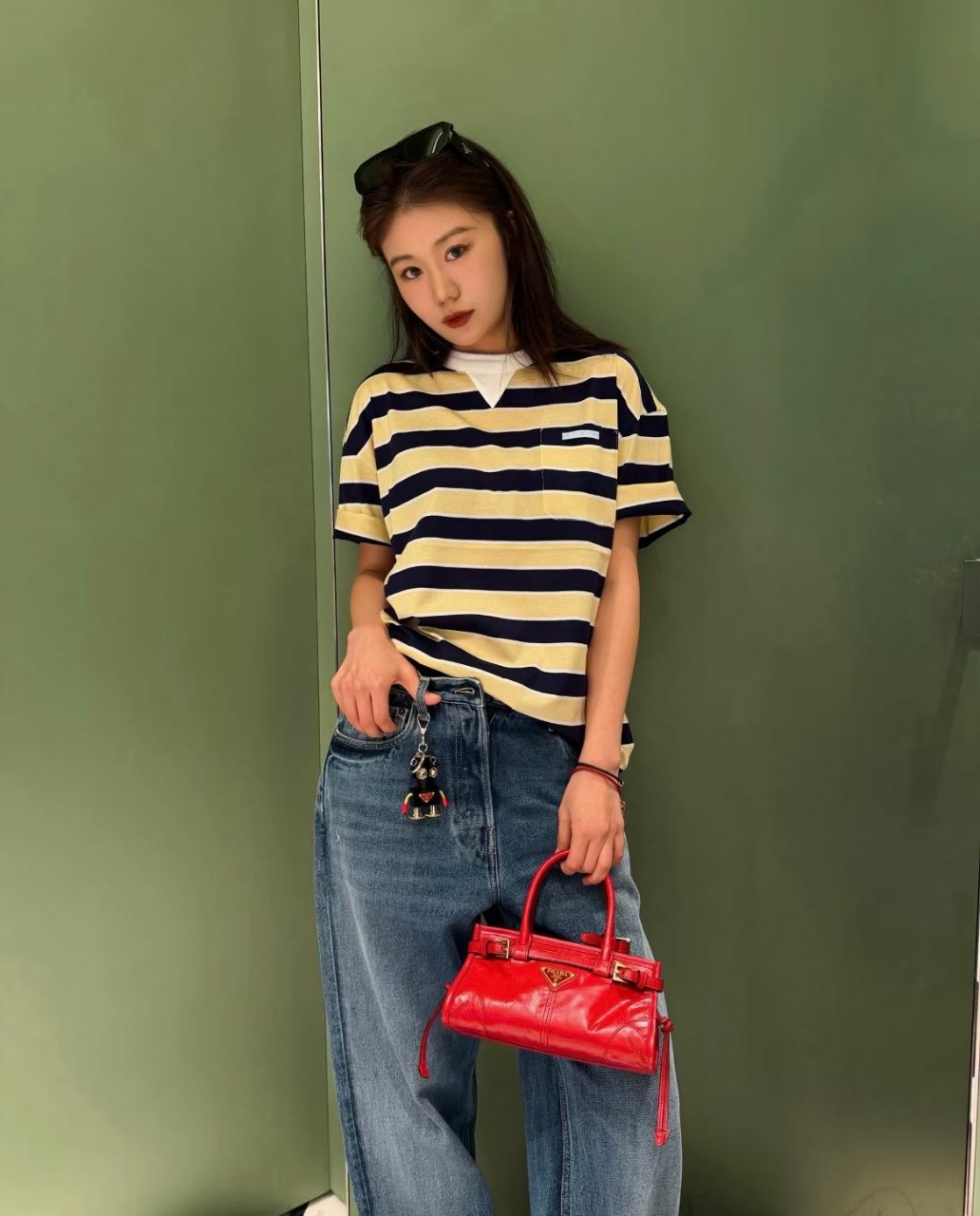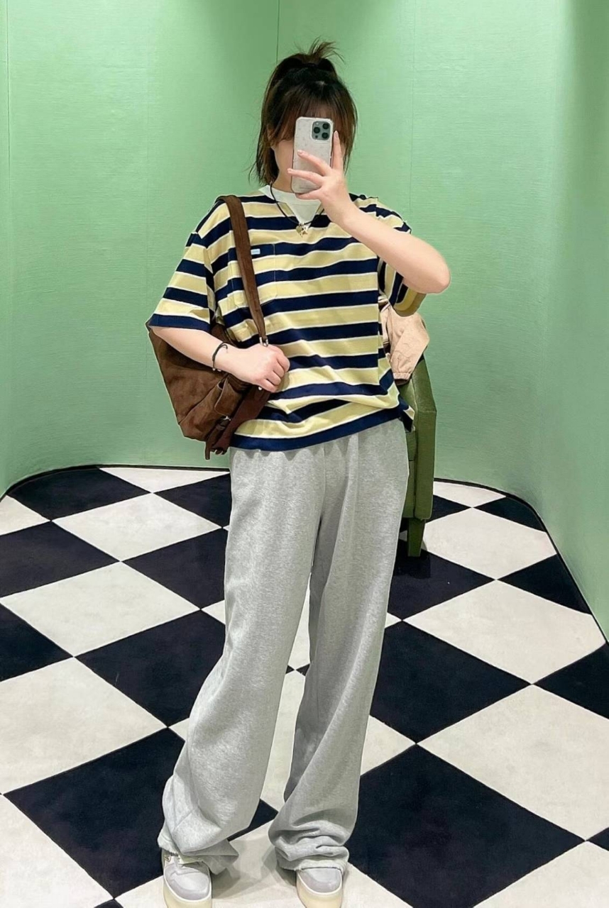 프라다 스트라이프 코튼 티셔츠