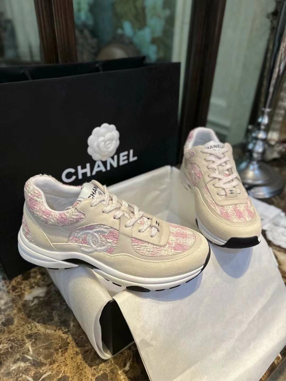 샤넬 23s CC로고 트위드 스니커즈