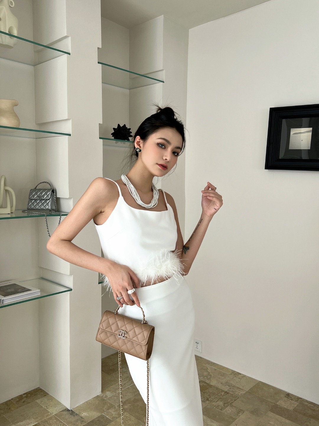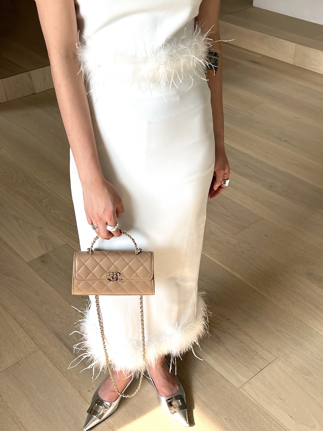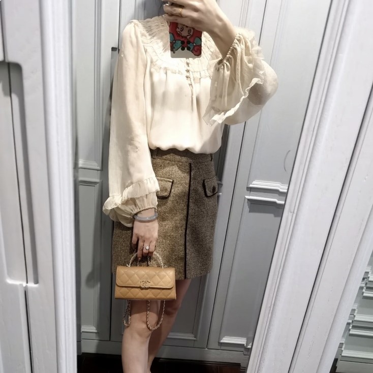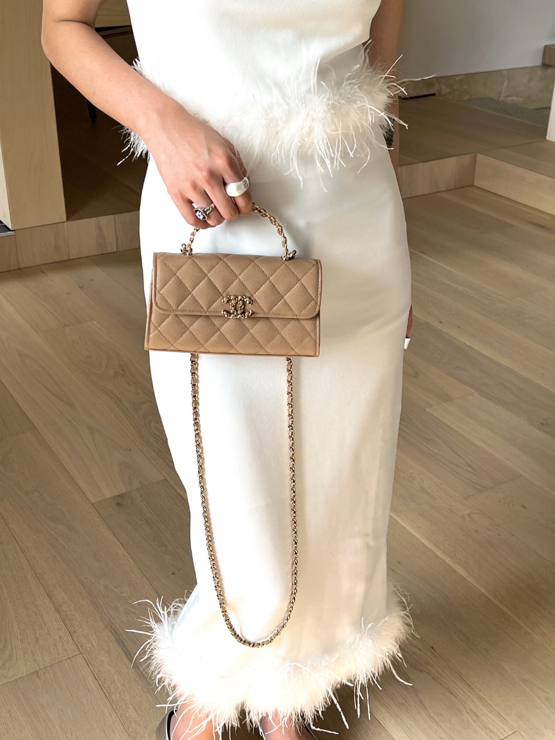 샤넬 23P 켈리 핸들 플랩백 밀크티
