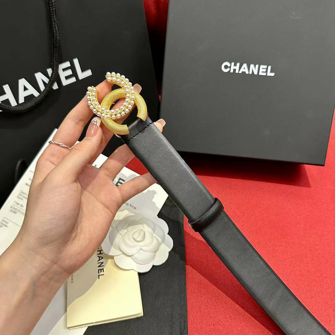 샤넬 CC로고 진주 디테일 벨트