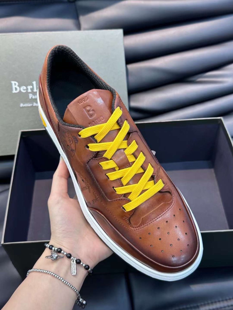 벨루티 플레이오프 스크리토 레더 스니커즈