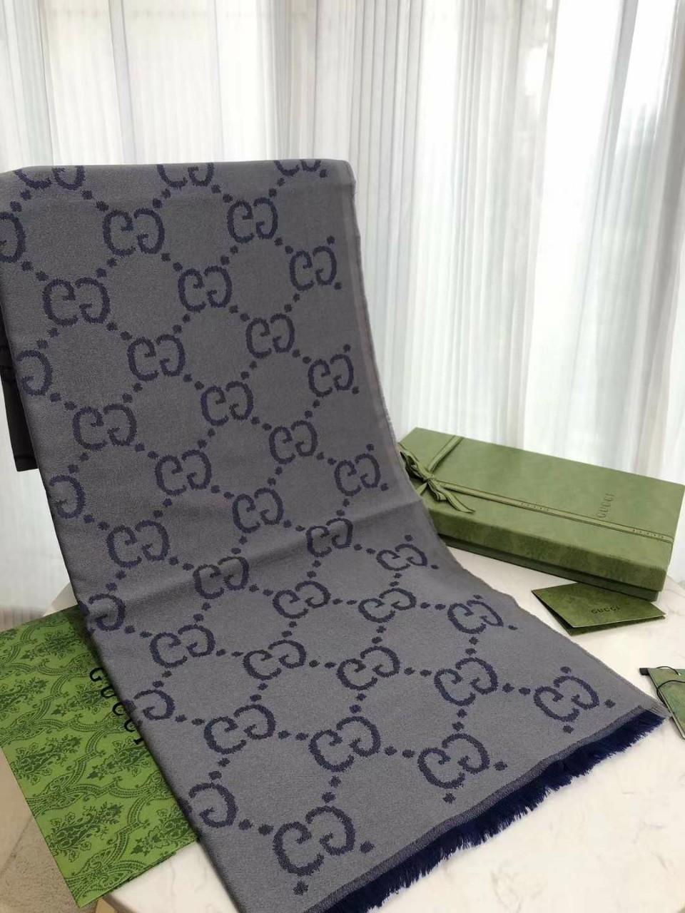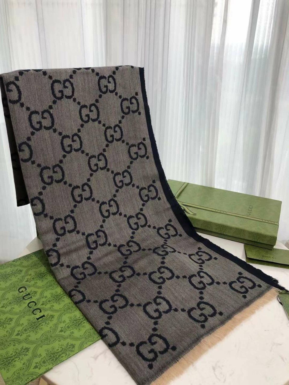 구찌 GG 울 실크 테슬 스카프